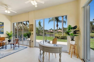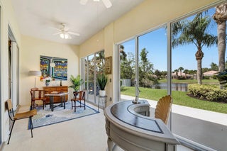 Escape to this beautifully appointed 3-bedroom, 3-bath home with a den and enclosed lanai. Ideally situated on a PREMIUM oversized lot with EXPANSIVE lake views in the highly sought-after VillageWalk of Wellington. Built by DiVosta with solid poured concrete construction, this home offers exceptional quality, style, and functionality in a resort-style, gated community.Step inside to a spacious open-concept layout that seamlessly blends the living, dining, and kitchen areas--perfect for everyday living and entertaining. The kitchen features modern appliances, ample counter space, and a convenient breakfast bar.Enjoy added flexibility with the enclosed lanai, ideal as additional indoor/outdoor living space or a serene retreat for enjoying tropical landscaping and tranquil lake views.Nearly all windows and sliders are outfitted with high-end silhouette blinds. There's also plenty of room to add a pool or simply enjoy one of the community's 2 pools: resort-style or lap pool. Additional features include: -Den ideal for a home office or guest space -Enclosed lanai - perfect for indoor/outdoor living adding extra living square footage -Accordion shutters for storm protection -New hot water heater (2023) -Oversized lot with extended yard VillageWalk amenities include: 24/7 manned gate, miles of scenic walking paths, resort-style pool, lap pool, fitness center, lighted clay tennis & pickleball courts, basketball courts, bocce ball, library, playground, hair salon, pet spa, and more. COMING SOON - VillageWalk will have a new fully renovated Restaurant presented by the Fashion Group. The Fashion Group is the parent company for Wellington restaurant staples: Oli's Fashion Cuisine, Emiliano's and Stallion Steakhouse. The community also offers a vibrant social calendar with organized events such as BBQs, food truck nights, holiday parties, fitness classes, and group outings -bringing neighbors together and creating a true sense of community. HOA dues cover: Premium cable, high-speed internet, complete lawn care, alarm monitoring, access to all amenities, periodic exterior house painting, and roof cleaning. Zoned for TOP-RATED Wellington schools and conveniently located near equestrian venues, shopping, dining, and entertainment.