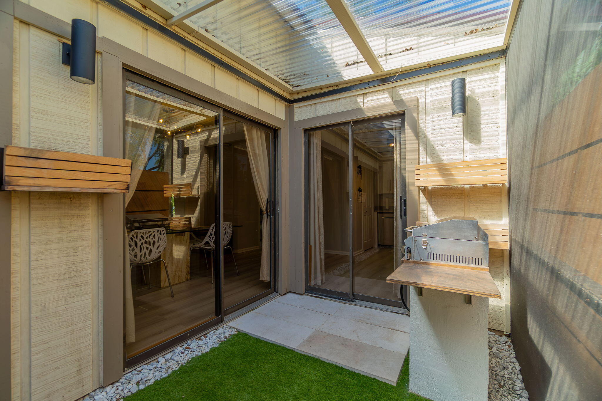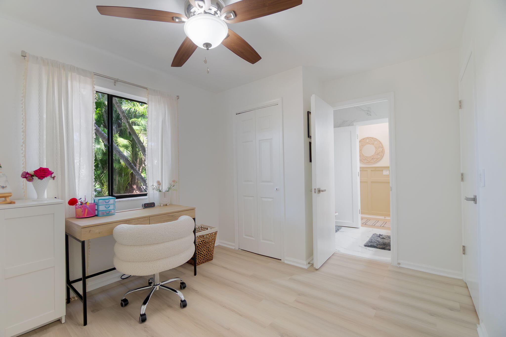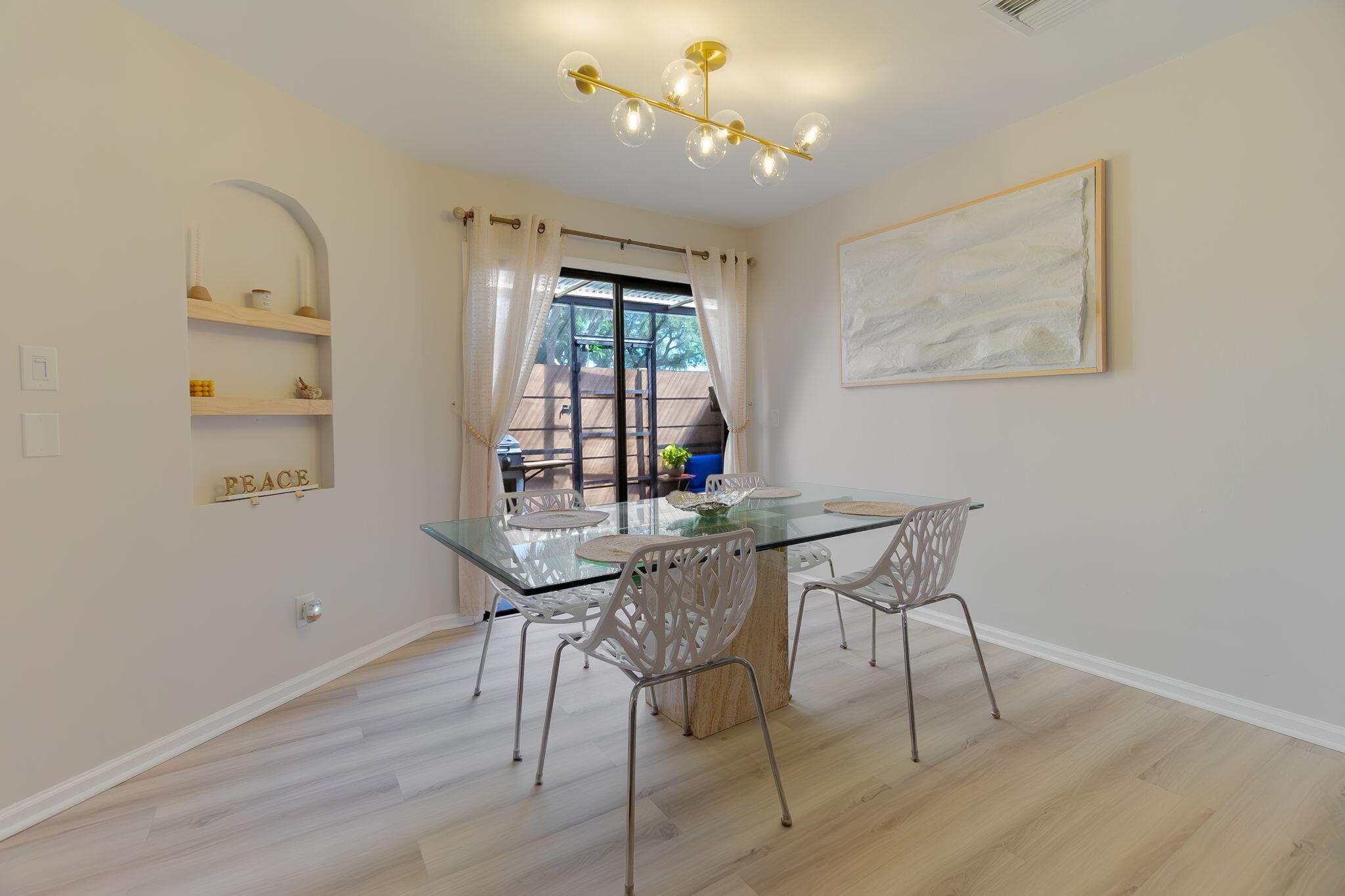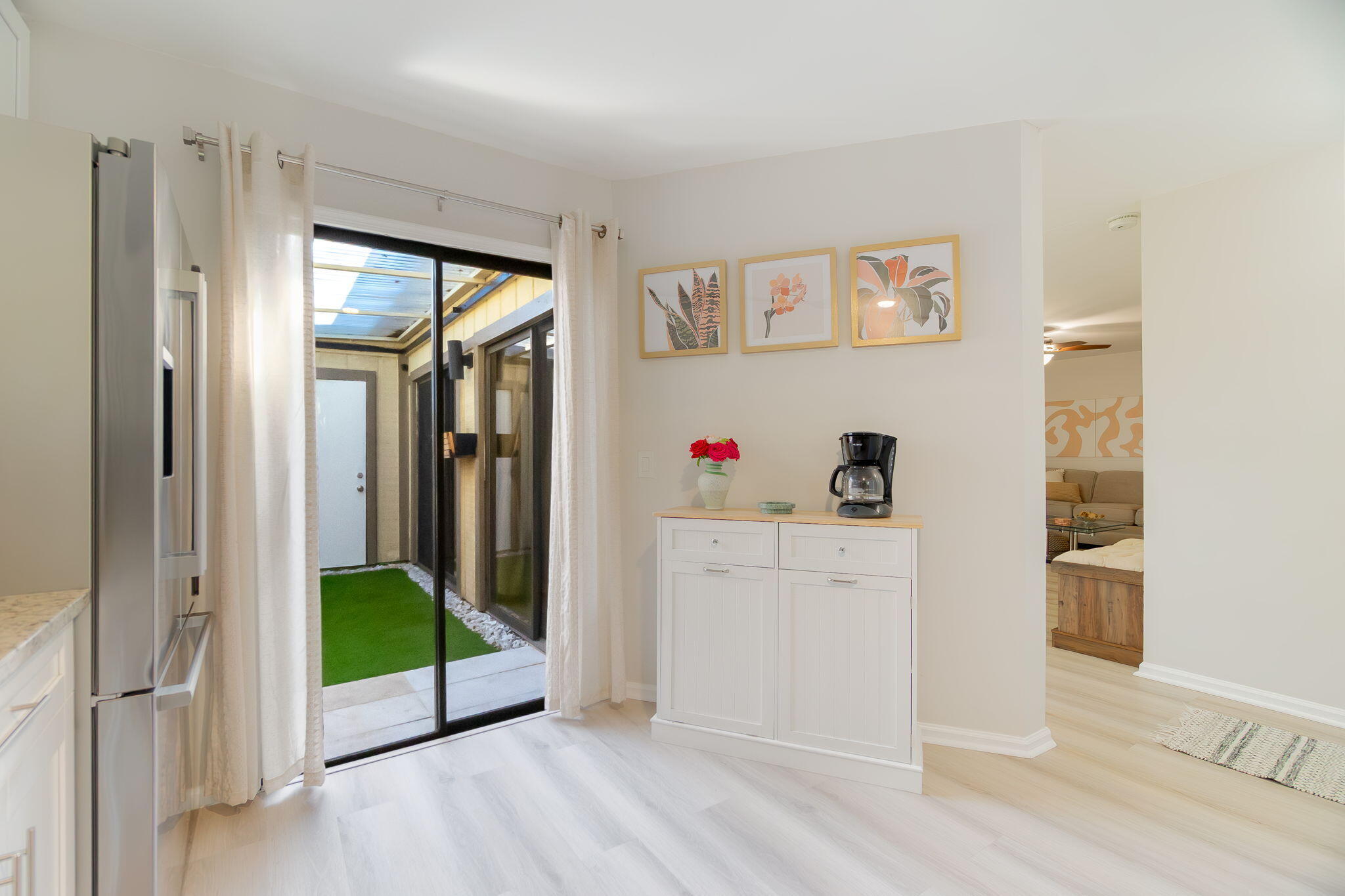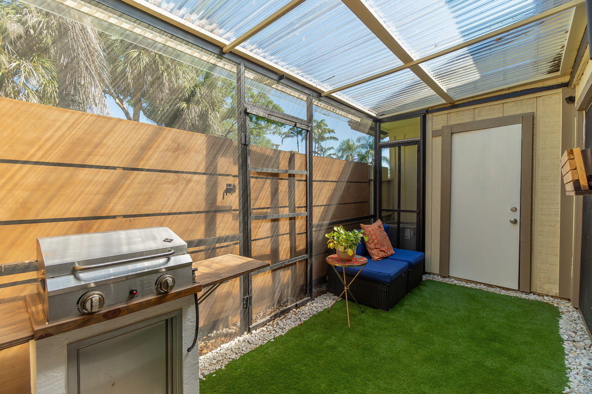 Like new! This beautifully updated 2BR/2BA villa in the heart of Wellington offers exceptional privacy and a modern, move-in-ready feel. It features a brand-new roof, remodeled bathrooms, and wood-like flooring throughout. The open, bright layout includes a nicely upgraded kitchen with stainless steel appliances and a spacious primary suite. The primary bath showcases Italian porcelain tile in the shower and elegant wood accents. A well-sized guest bath brings in natural light and offers convenient hallway access. The private, covered patio, with built-in grill and three-way access, is perfect for outdoor entertaining. Located within minutes of shopping, dining, Wellington Mall, equestrian activities and A-rated schools, all with low HOA fees.