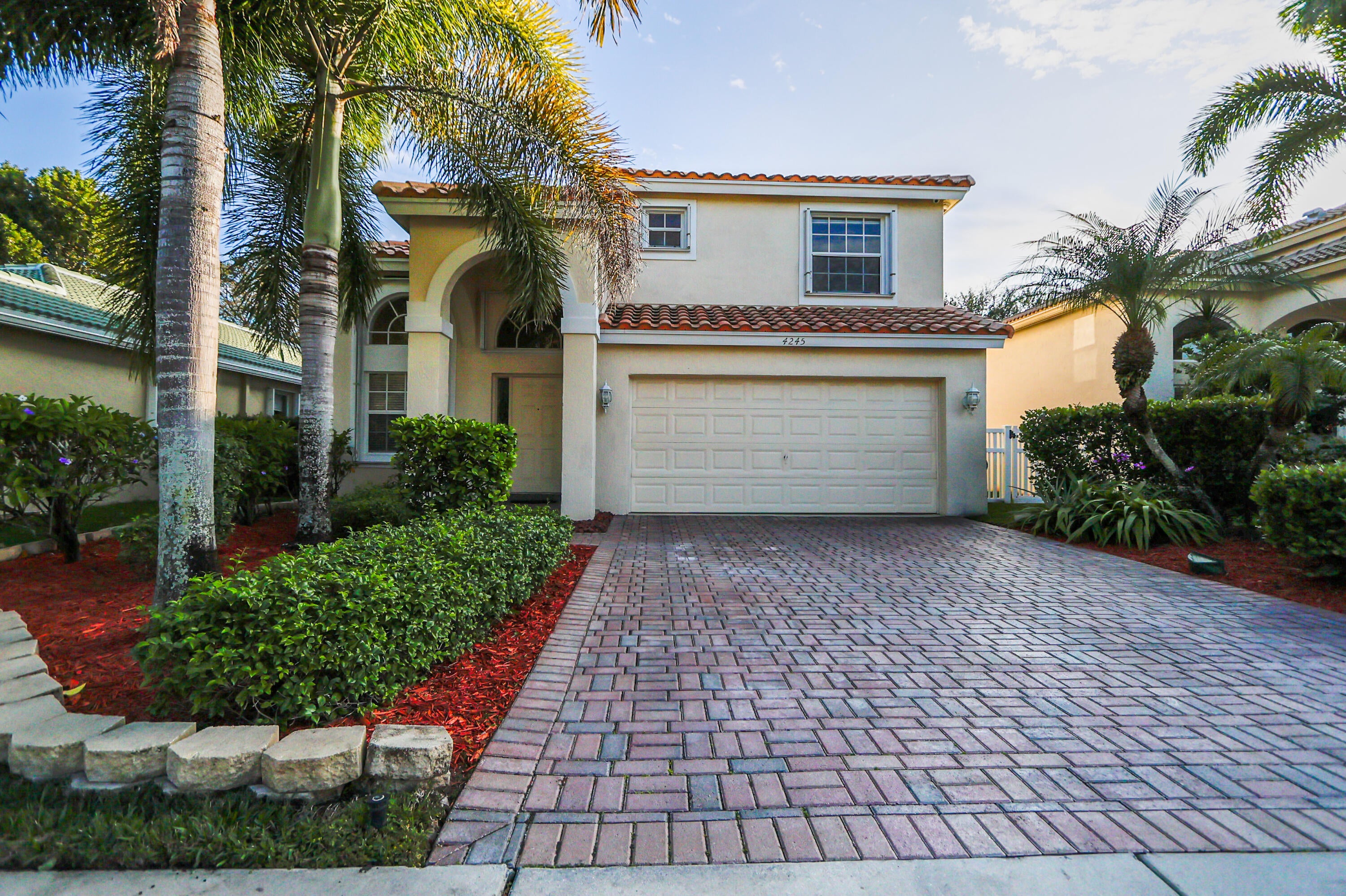 Beautiful 2-story home in the prestigious guard-gated Isles at Wellington. Built in 2000, this 4-bed, 2.5-bath home offers 2,152 sq ft of living space and is tucked at the end of a quiet street. Features include a 2-car garage, fully fenced yard, screened terrace, and outdoor space ideal for entertaining or relaxing. New roof in 2018 and shutters throughout. Lovingly maintained and move-in ready. Enjoy resort-style amenities: clubhouse, fitness center, heated pool/spa, wading pool, pickleball, tennis, basketball, playgrounds, game and media rooms. Schedule your private tour today!this outstanding community of lovely and beautiful homes is within walking distance to A-rated schools, very close to shopping, restaurants, world class polo grounds, equestrian venues, the Florida Turnpike and hospitals. Furthermore, outside this beautiful home, you will find a nice private yard, which offers endless possibilities for creating your dream outdoor oasis. Also, the screened-in patio provides the perfect spot to enjoy the Florida weather year-round. You will be shocked at the low cost HOA fees which include: gated manned entry, fiber optic high-speed internet, cable, and ADT security service for your peace of mind. This is more than just a house - it is a place to relax, create lasting memories and call home! This property also features a newer tile roof, new water heater, hurricane protection, upgraded copper piping to enhance durability and reducing corrosion and the risk of leaks, sediment and water contamination, a 4-ton HVAC system, new LG appliances, as well as an underground well hookup for irrigation. You will create lasting memories and call this home!