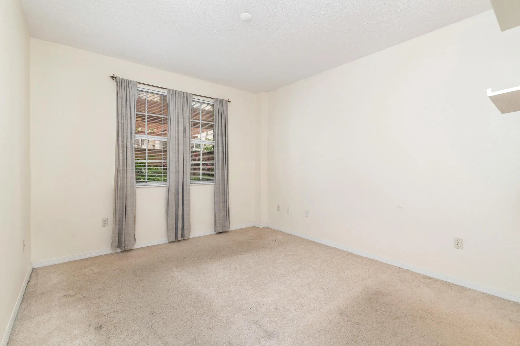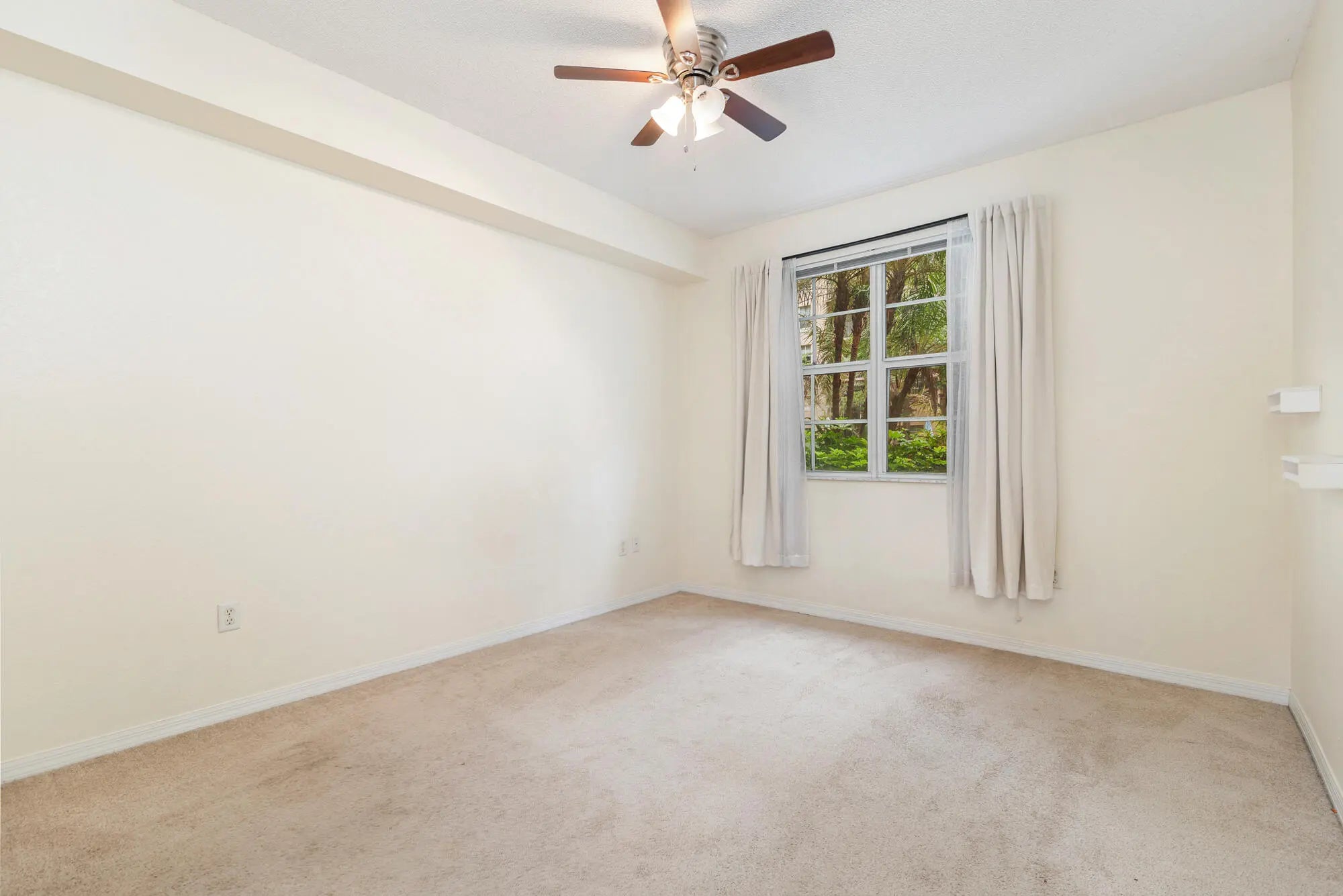 Fabulous Flagler Drive living at this 2 bedroom, 2 bath condominium in an ultra-convenient first floor location - convenient to the lobby, the parking garage and all of the building's resort-style amenities. The split plan layout is convenient for each bedroom to have privacy and its own full bathroom. Main living areas are upgraded to wood floors. The kitchen has granite countertops and stainless-steel appliances. Full-sized washer and dryer in utility closet with extra room for storage.This unit opens up to your own private patio surrounded by lush tropical landscaping and a peek of the courtyard fountain and the large swimming pool that overlooks the Intracoastal Waterway.