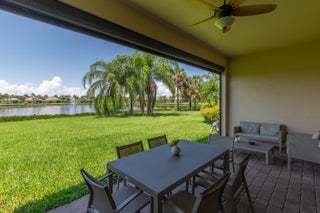 This lovely 3 bedroom, 2 bath and 1 Den single family home has never been on the market for sale! Boasting almost 2,500 square feet of living space, a 2-car garage, and a great backyard with waterfront views. Situated on a spacious, immaculately landscaped lot in the gated community of Castellina. This gorgeous home has a modern open floor plan with a large kitchen island with plenty of bar seating, plantation shutters, large master with dual sinks , a walk-in shower, and a fantastic covered patio overlooking the lake. The private community of Castellina includes a resort-style clubhouse, pool and spa plus tennis courts.