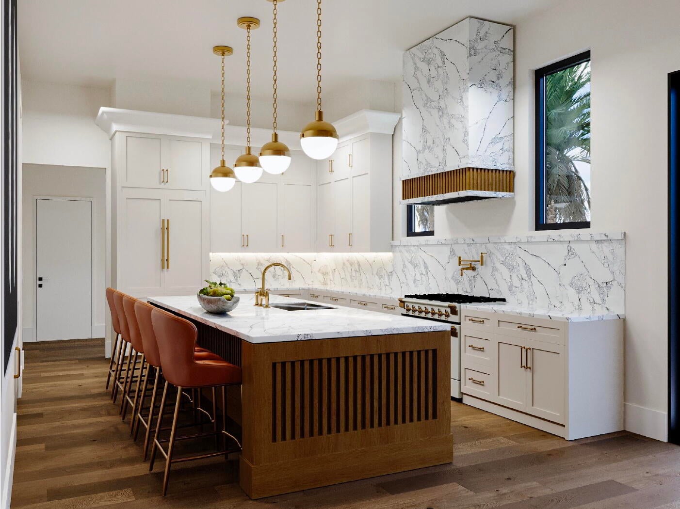 Experience effortless elegance in this brand-new construction 4-bedroom, 3-bathroom home in the coveted Eagles Landing of Palm Beach Polo. Designed with a modern aesthetic and warm natural tones, this single-story residence offers a bright, open layout with high-end finishes throughout. The gourmet kitchen features marble countertops, custom cabinetry, and brass fixtures, opening to a spacious living area ideal for entertaining. The primary suite includes a coffered ceiling, spa-inspired bath with soaking tub, and custom closets. The fourth bedroom is currently styled as a home office, providing versatility for any lifestyle. Outside, enjoy a covered patio, lush landscaping, and a private plunge pool--perfect for relaxing in the Florida sun.A rare opportunity to own new construction in one of Wellington's most desirable gated communities.