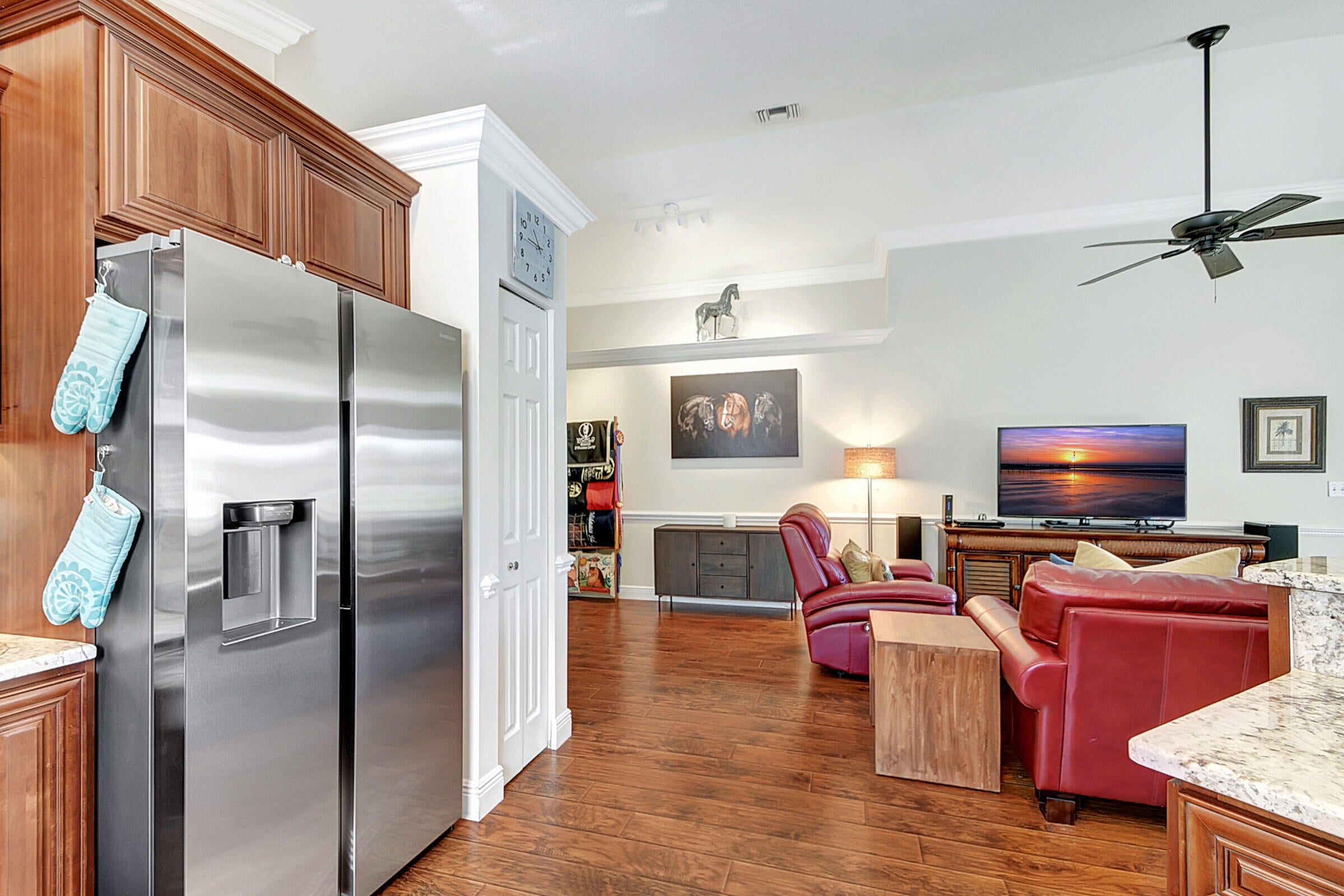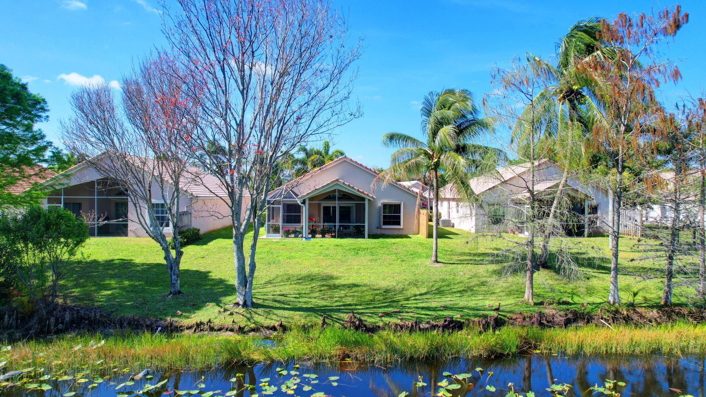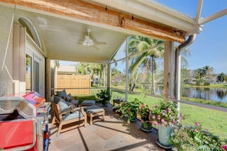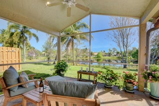 :IMPECCABLE SINGLE FAMILY HOME SITUATED ON SPECTACULAR WATERFRONT LOT! ACCORDION HURRICANE SHUTTERS ON WINDOWS & COLONIAL HURRICANE SHUTTERS ON FRONT WINDOWS IMPACT RESISTANT GLASS ON SLIDERS. WOOD FLOORING THRU-OUT ENTIRE HOME. UPGRADED KITCHEN WITH CHERRY WOOD CABINETS, PULL OUT SHELVES AND SOFT CLOSE DRAWERS. GRANITE COUNTER TOPS WITH FULL BACK SPLASH, UNDER CABINET LIGHTING AND STAINLESS STEEL GE PROFILE APPLIANCES (Brand New Samsung Fridge). CROWN MOLDING THRU-OUT. LARGE MASTER BEDROOM WITH WALK-IN CLOSETS AND MASTER BATH WITH SEAMLESS SHOWER DOORS AND NEWER VANITY WITH GRANITE TOP. SIT IN YOUR EXTENDED SCREENED COVERED PATIO OVERLOOKING THE WIDE VIEW OF THE LAKE. WELLINGTONS EDGE IS IDEALLY LOCATED CLOSE TO WELLINGTON GREEN MALL, POLO & EQUESTRIAN CLUBS