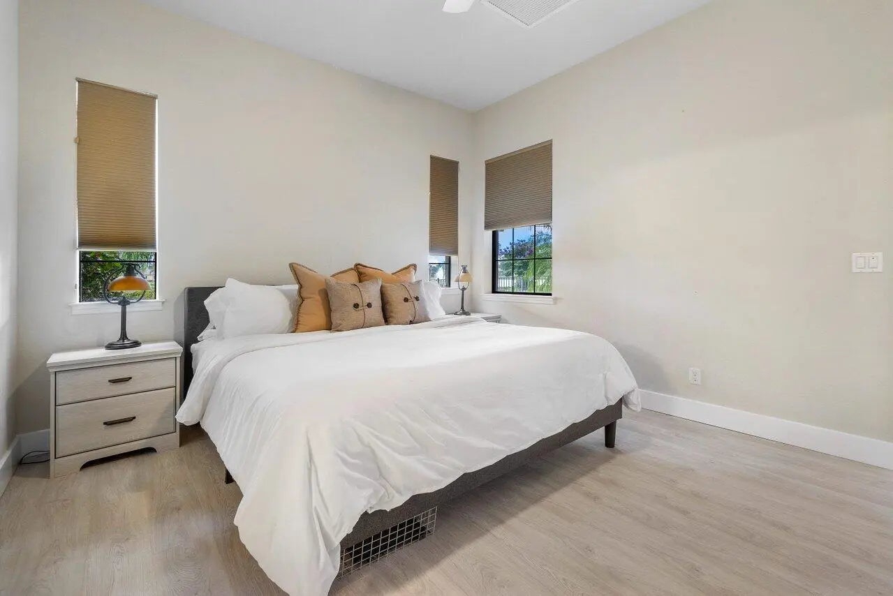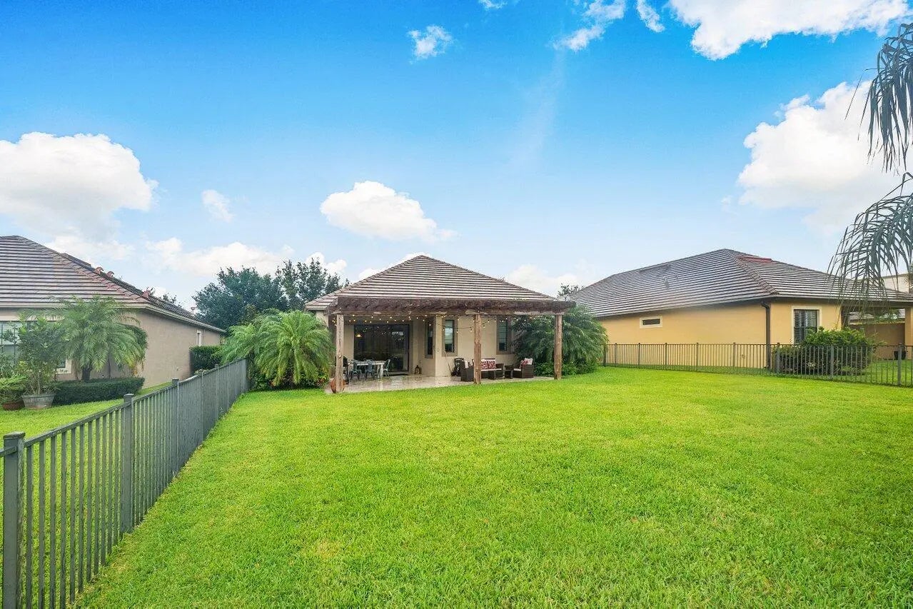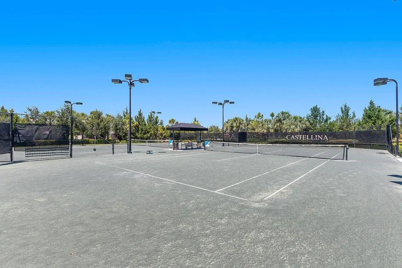 One-story home nestled on a premium waterfront lot within the highly desirable, gated community of Castellina. Built in 2014, this residence is among the newest in the neighborhood, offering both modern style and lasting quality.Step inside to find tile flooring throughout the open, sunlit living spaces and bedrooms. The home features brand new flooring, new A/C, stainless steel appliances, and a spacious outdoor patio adorned with elegant travertine flooring and a charming wooden pergola--perfect for outdoor entertaining in your fully fenced backyard.Enjoy breathtaking sunset views over the lake, and take advantage of the vibrant community amenities, including a clubhouse, resort-style pool, fitness center, tennis and pickleball courts, and more.