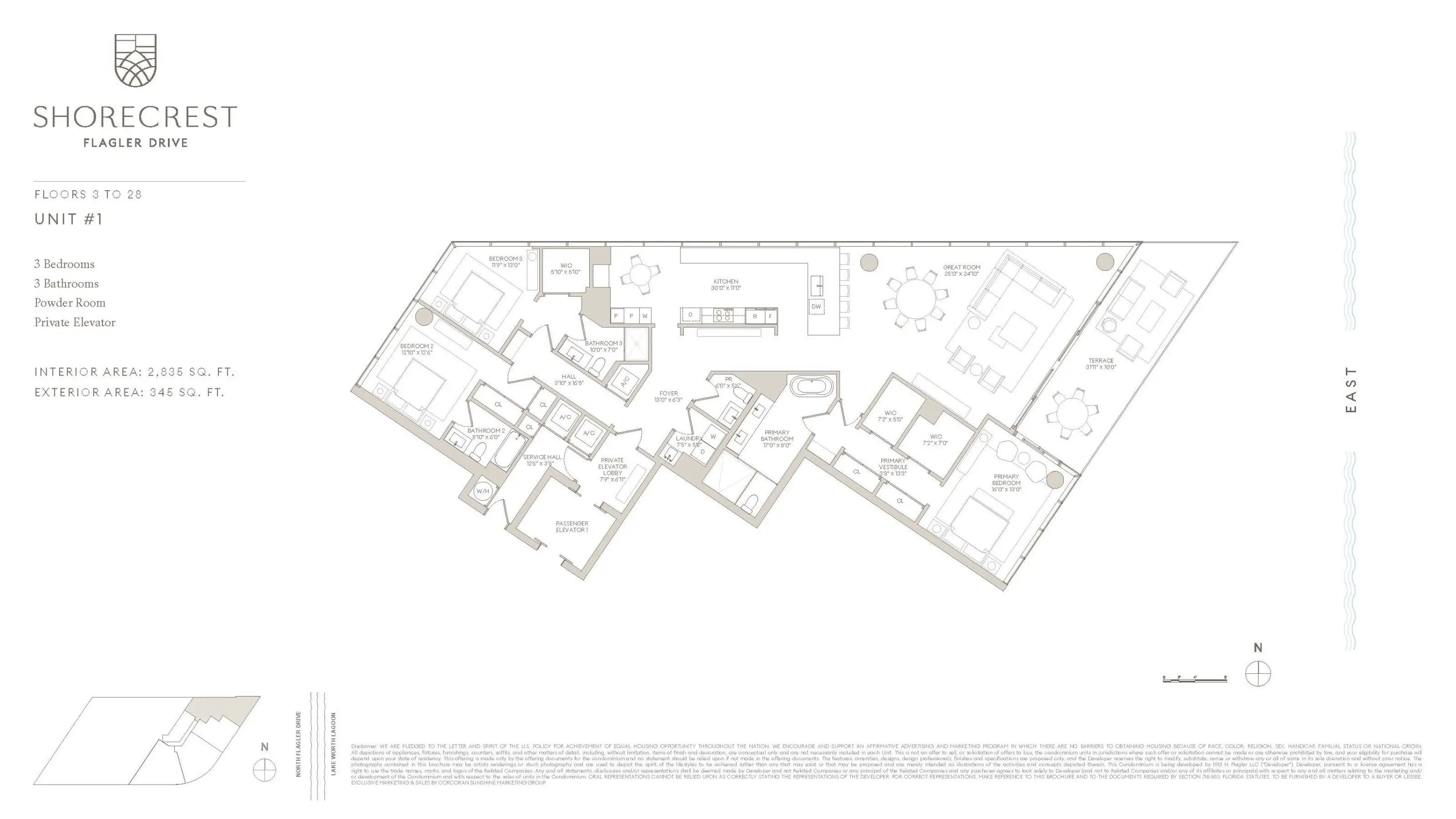 Shorecrest is a refined collection of just 100 one- to three-bedroom residences by Related Ross, with architecture by Roger Ferris + Partners. This North East corner residence is a split three-bedroom layout with a private elevator entry and a generous East facing terrace offering dramatic views of the Intracoastal and City skyline. Designed to elevate waterfront living, Shorecrest features timeless interiors and exceptional amenities, all crafted with meticulous attention to detail. From the elegant porte-cochere on North Flagler Drive to the rooftop pool with iconic views, every element reflects a new standard of luxury in West Palm Beach.
