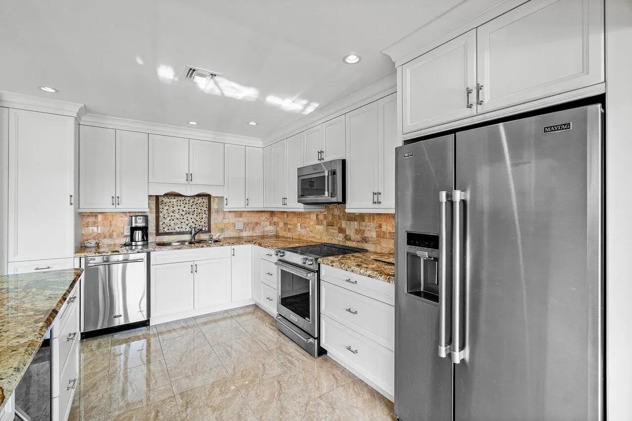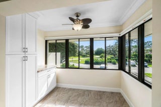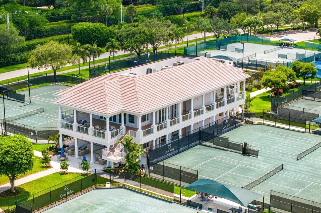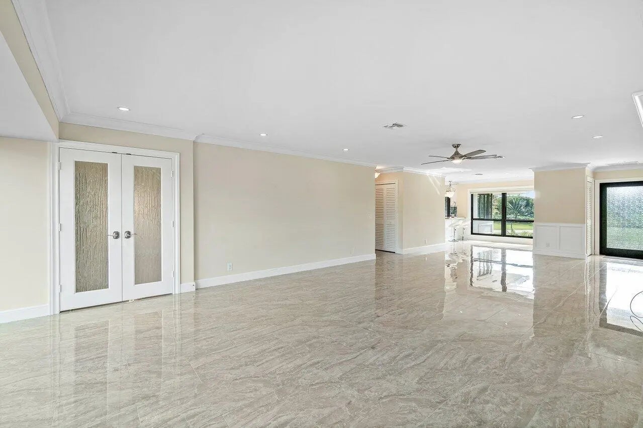 Exceptional residence with sweeping golf course views. Step into this spacious and fully renovated 2-bedroom plus den home, featuring a bright open floorplan and sleek porcelain tile throughout. The modern open kitchen is perfect for entertaining, complete with a convenient snack bar and a cozy breakfast area. Elegant glass French doors lead to the generously sized main bedroom, offering both style and privacy. Both bathrooms have been tastefully updated with contemporary finishes. Enjoy the peace of mind that comes with partial impact glass. This move-in-ready home combines comfort, style, and function in a desirable setting. Quail Ridge is a mandatory membership community offering top tier golf courses, racquet sports, fitness center & spa, and a clubhouse.