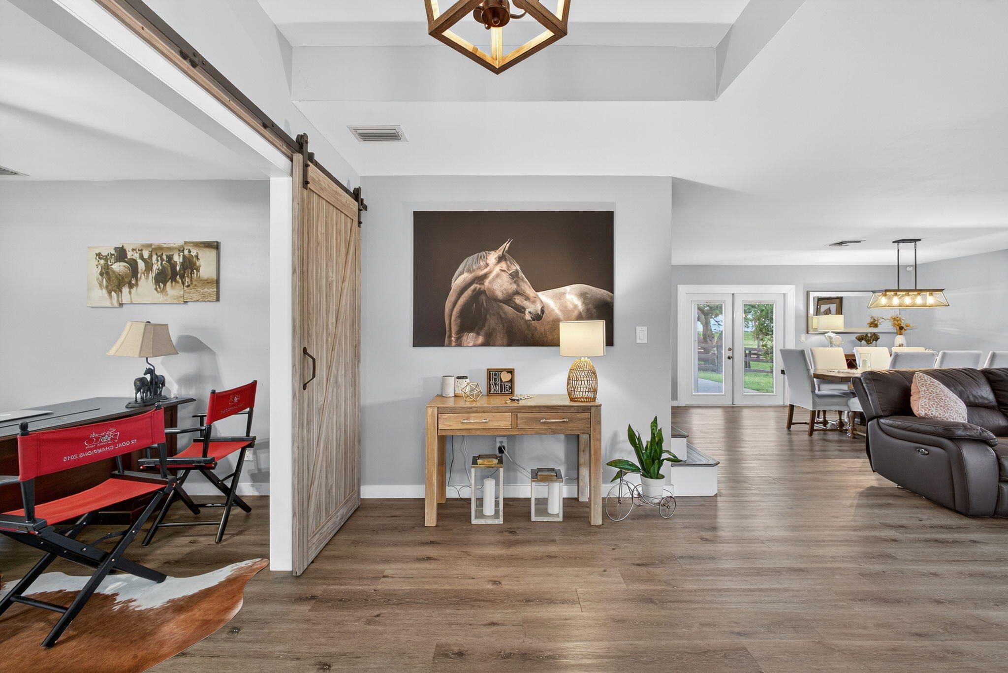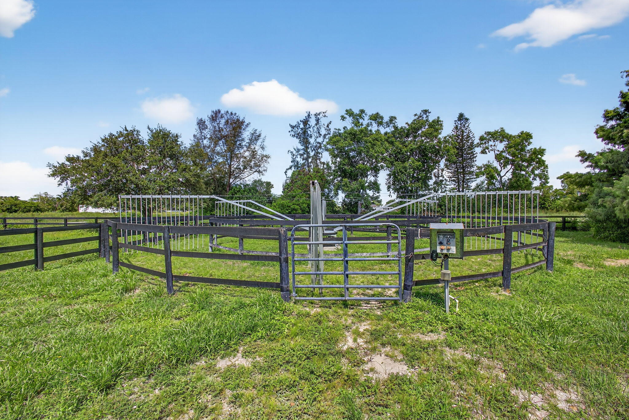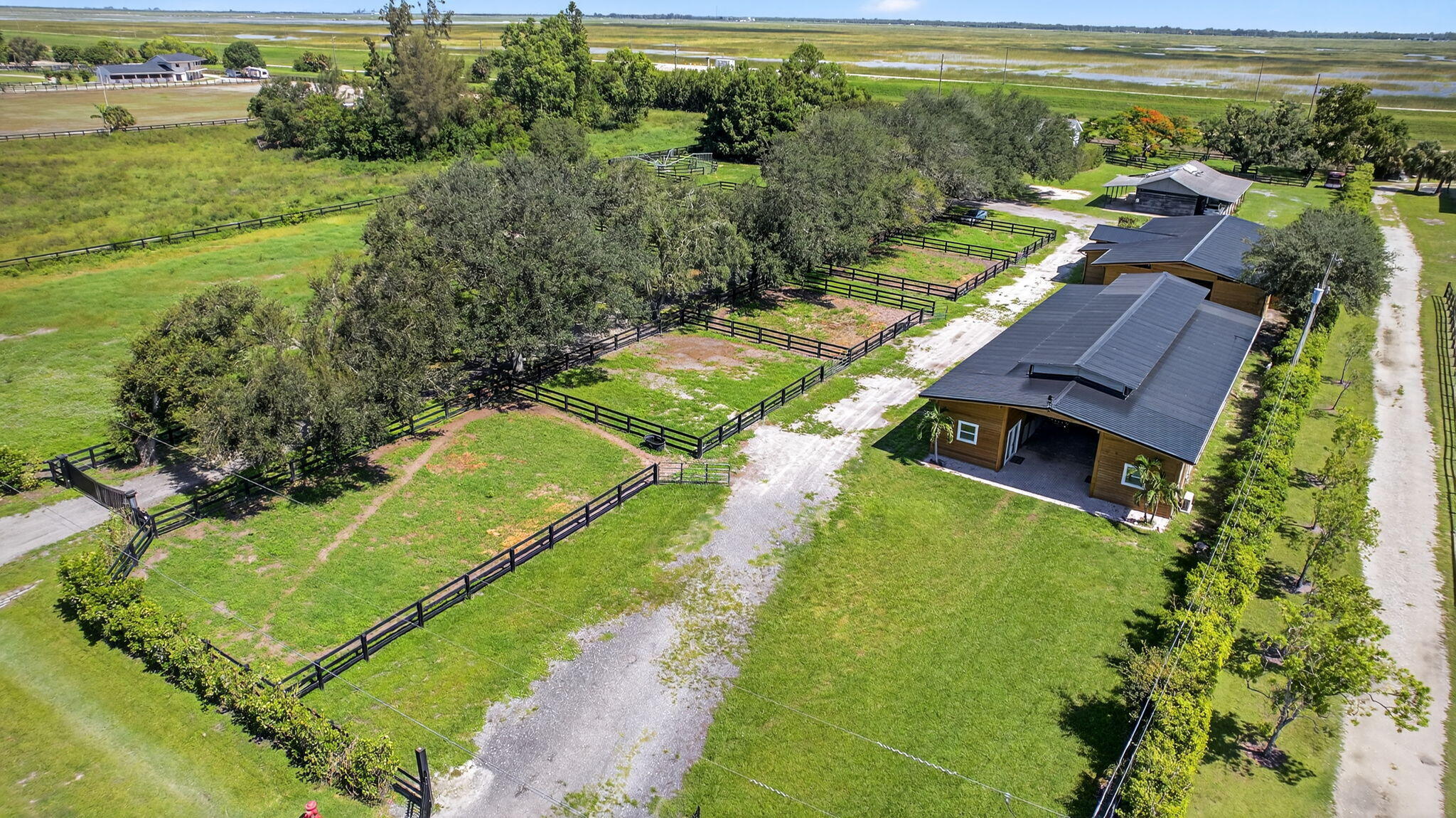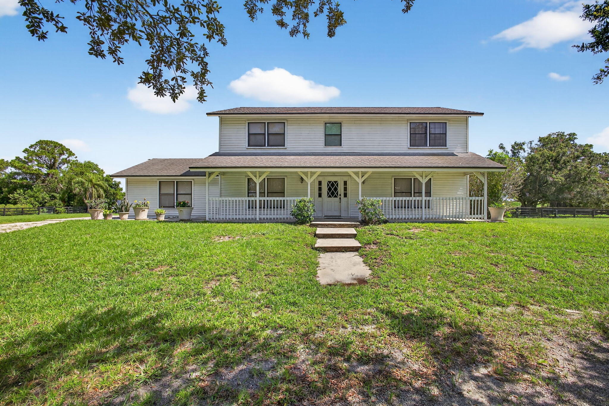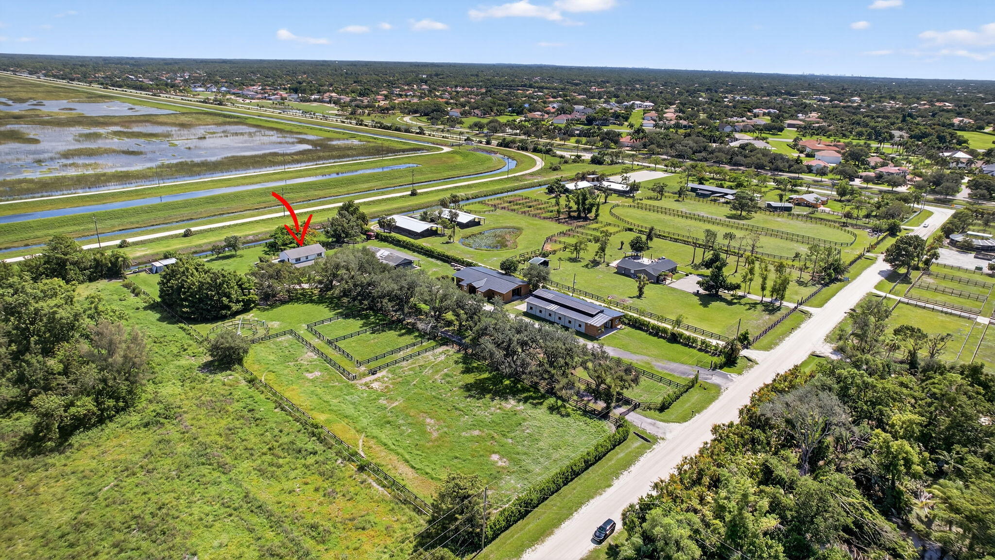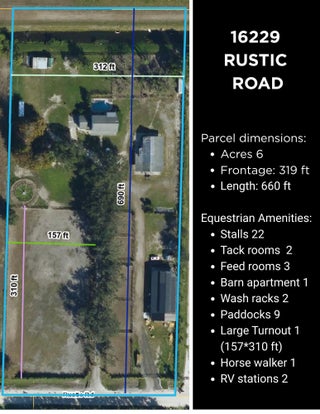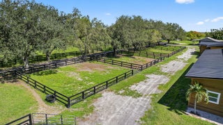 EXCEPTIONAL TURNKEY EQUESTRIAN FACILITY ON 6 ACRES IN RUSTIC RANCHES ESTATESBeautiful equestrian property offering privacy, charm, and functionality in the heart of Rustic Ranches. Walking distance to Wellington's Environmental Preserve and just a short hack to top Wellington shows, with miles of trails at your doorstep.The 4BD/2.5BA home features 2,288 sq ft under air, a garage, pool, and outdoor spaces. Equestrian amenities include 2 new barns (22 stalls), groom's quarters, a horse walker, 7 paddocks, a large field, and room for a riding arena. High and dry property with drainage, public and well water, irrigation, double-fencing, mature oaks, and more. Move-in ready!A MUST-SEE for the discerning equestrian seeking a move-in-ready facility in the heart of Wellington.