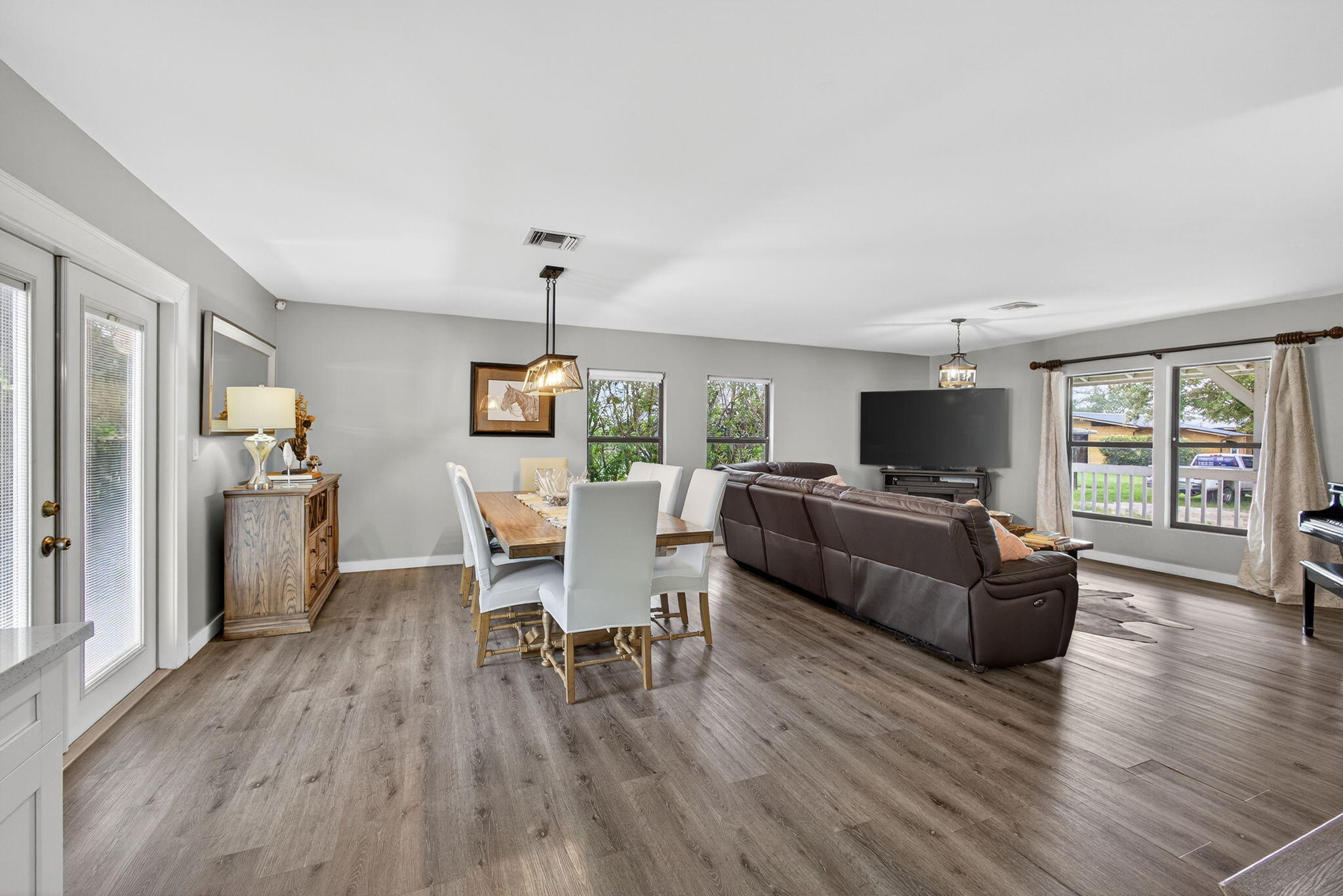 Auto Garage Open, Cooktop, Dishwasher, Disposal, Dryer, Ice Maker, Microwave, Range - Gas, Refrigerator, Smoke Detector, Washer, Water Heater - Elec, Water Softener-Owned