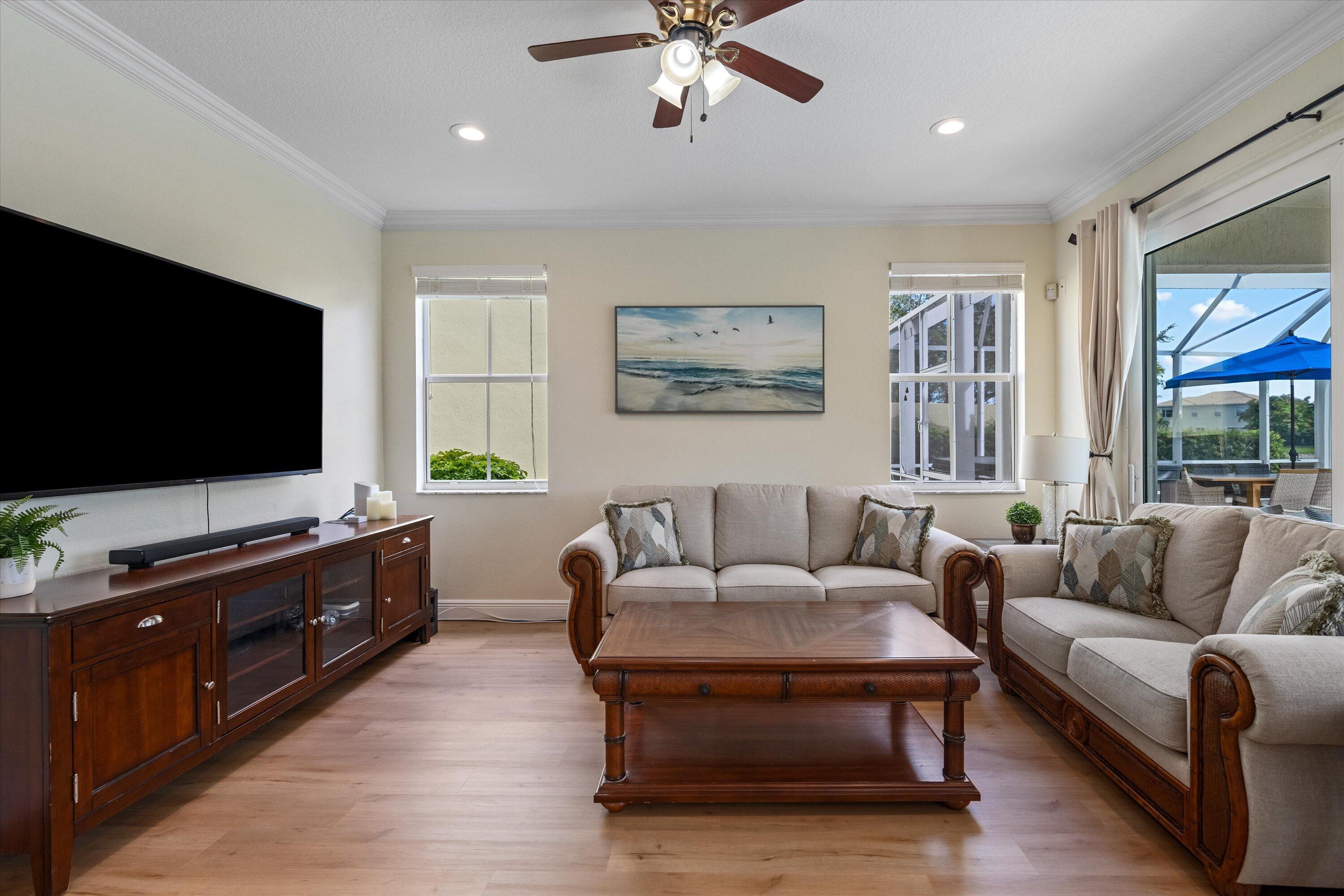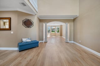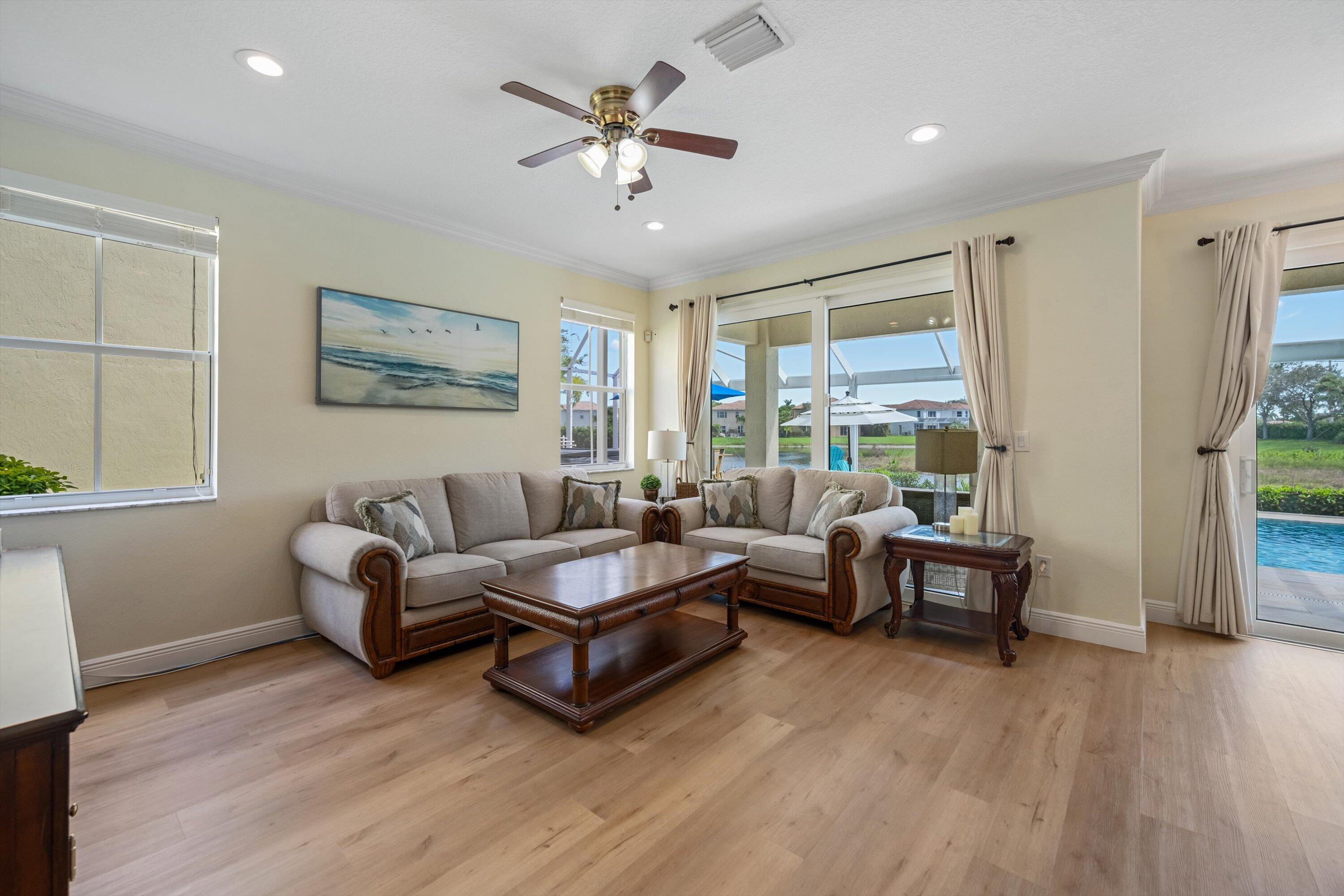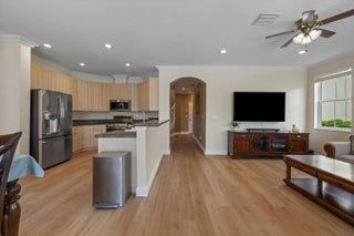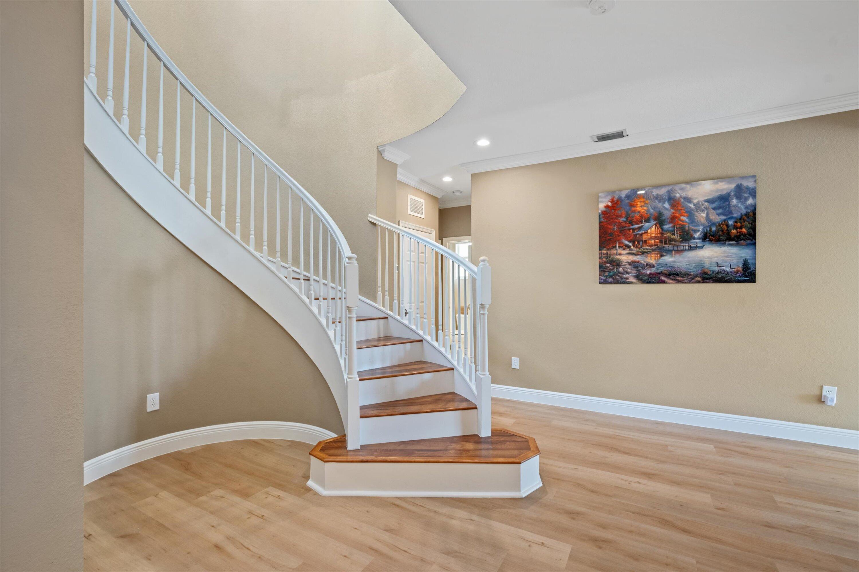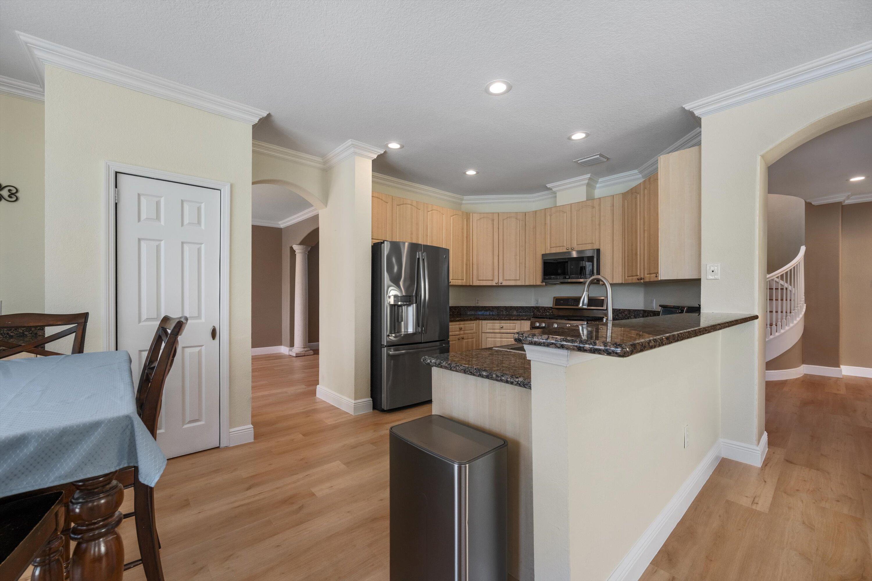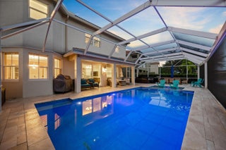 Welcome to a beautifully maintained home that perfectly blends modern upgrades with everyday comfort. From the moment you step inside, you'll notice the care and attention to detail--from the brand new luxury vinyl flooring downstairs to the newly installed laminate upstairs. The home is filled with natural light, enhanced by sleek high hat LED lighting throughout and upgraded light switches for added convenience. The updated air conditioning system includes newer units, replaced ductwork, and a UV light purification system, offering peace of mind and year-round comfort. Impact windows upstairs and impact sliding glass doors downstairs provide added security and energy efficiency. The true showstopper is the highly customized saltwater pool, designed with an extra-deep end, sun shelf,four LED lights, and an electric heaterperfect for relaxing or entertaining. The travertine-tiled pool deck is expansive and enclosed with a screen featuring three oversized picture windows that frame the outdoor space beautifully. Additional upgrades include rain gutters, a stunning chandelier in the stairway, custom garage shelving with ceiling storage, a new tankless water heater, a brand new washing machine, and a full security camera system. Outside, fresh landscaping surrounds the property, completing the picture of a move-in-ready home. This home is truly a rare find - stylish, functional, and loaded with thoughtful extras. Don't miss the chance to make it yours!