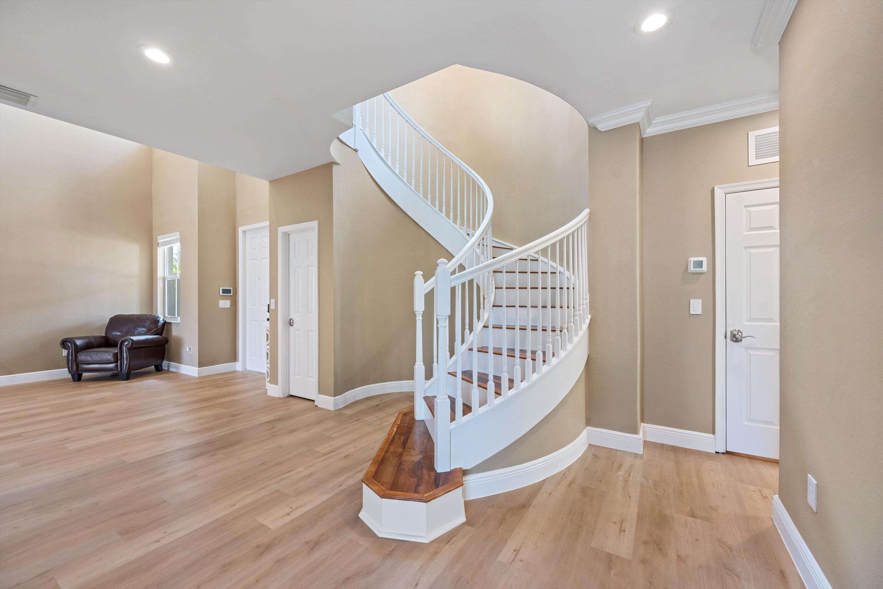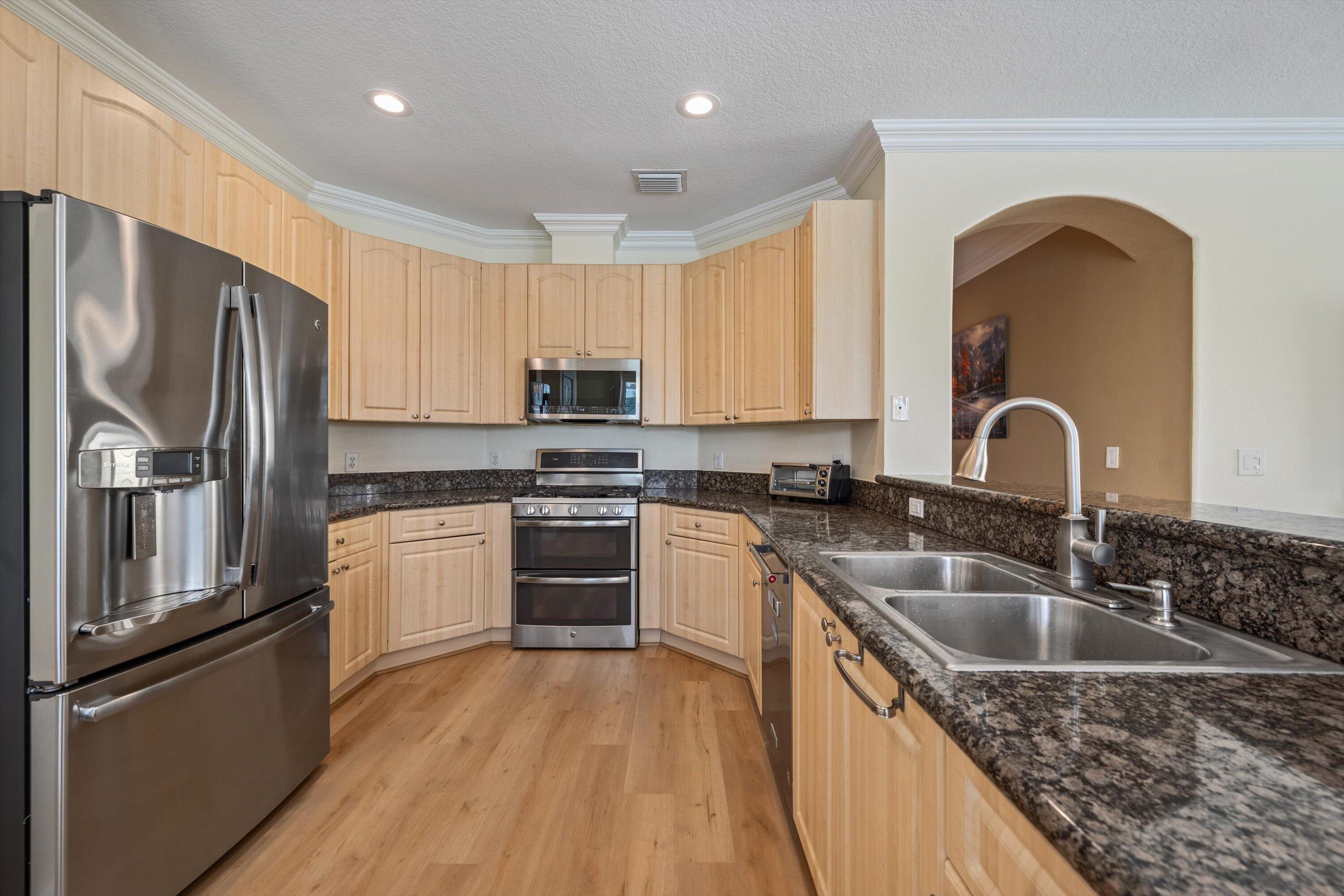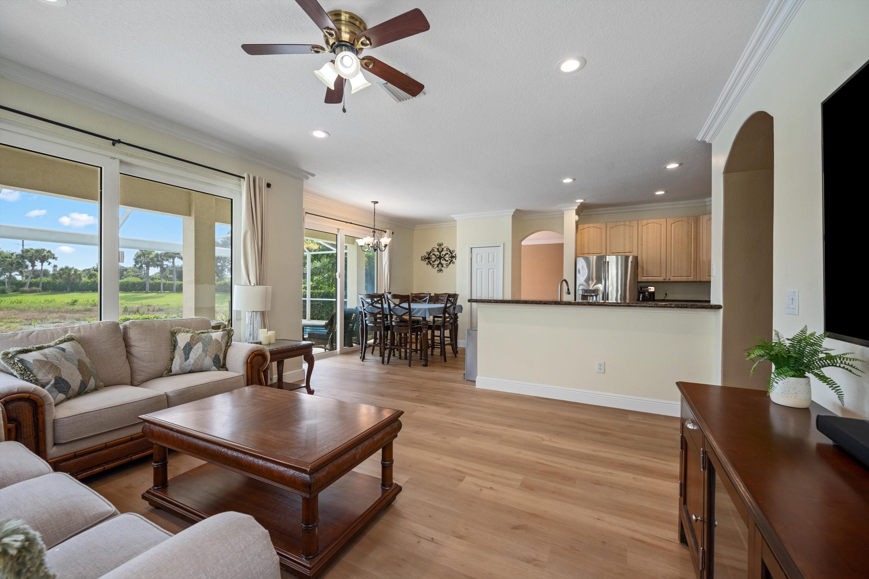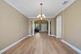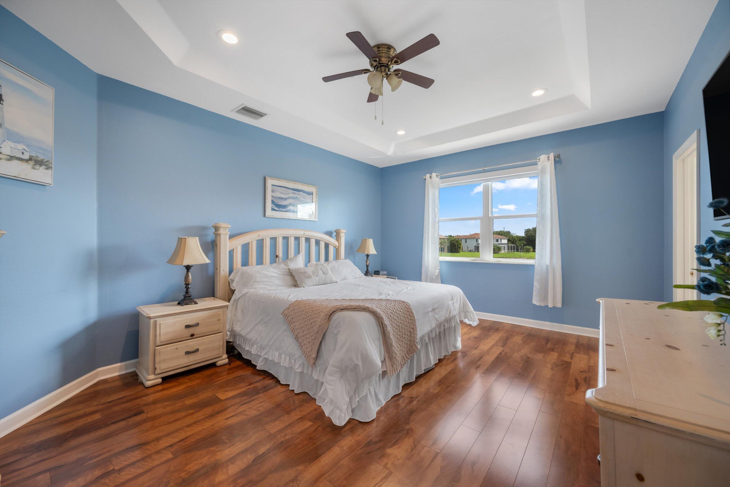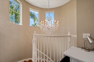 Welcome to a beautifully maintained home that perfectly blends modern upgrades with everyday comfort. From the moment you step inside, you'll notice the care and attention to detail--from the brand new luxury vinyl flooring downstairs to the newly installed laminate upstairs. The home is filled with natural light, enhanced by sleek high hat LED lighting throughout and upgraded light switches for added convenience. The updated air conditioning system includes newer units, replaced ductwork, and a UV light purification system, offering peace of mind and year-round comfort. Impact windows upstairs and impact sliding glass doors downstairs provide added security and energy efficiency. The true showstopper is the highly customized saltwater pool, designed with an extra-deep end, sun shelf,four LED lights, and an electric heaterperfect for relaxing or entertaining. The travertine-tiled pool deck is expansive and enclosed with a screen featuring three oversized picture windows that frame the outdoor space beautifully. Additional upgrades include rain gutters, a stunning chandelier in the stairway, custom garage shelving with ceiling storage, a new tankless water heater, a brand new washing machine, and a full security camera system. Outside, fresh landscaping surrounds the property, completing the picture of a move-in-ready home. This home is truly a rare find - stylish, functional, and loaded with thoughtful extras. Don't miss the chance to make it yours!