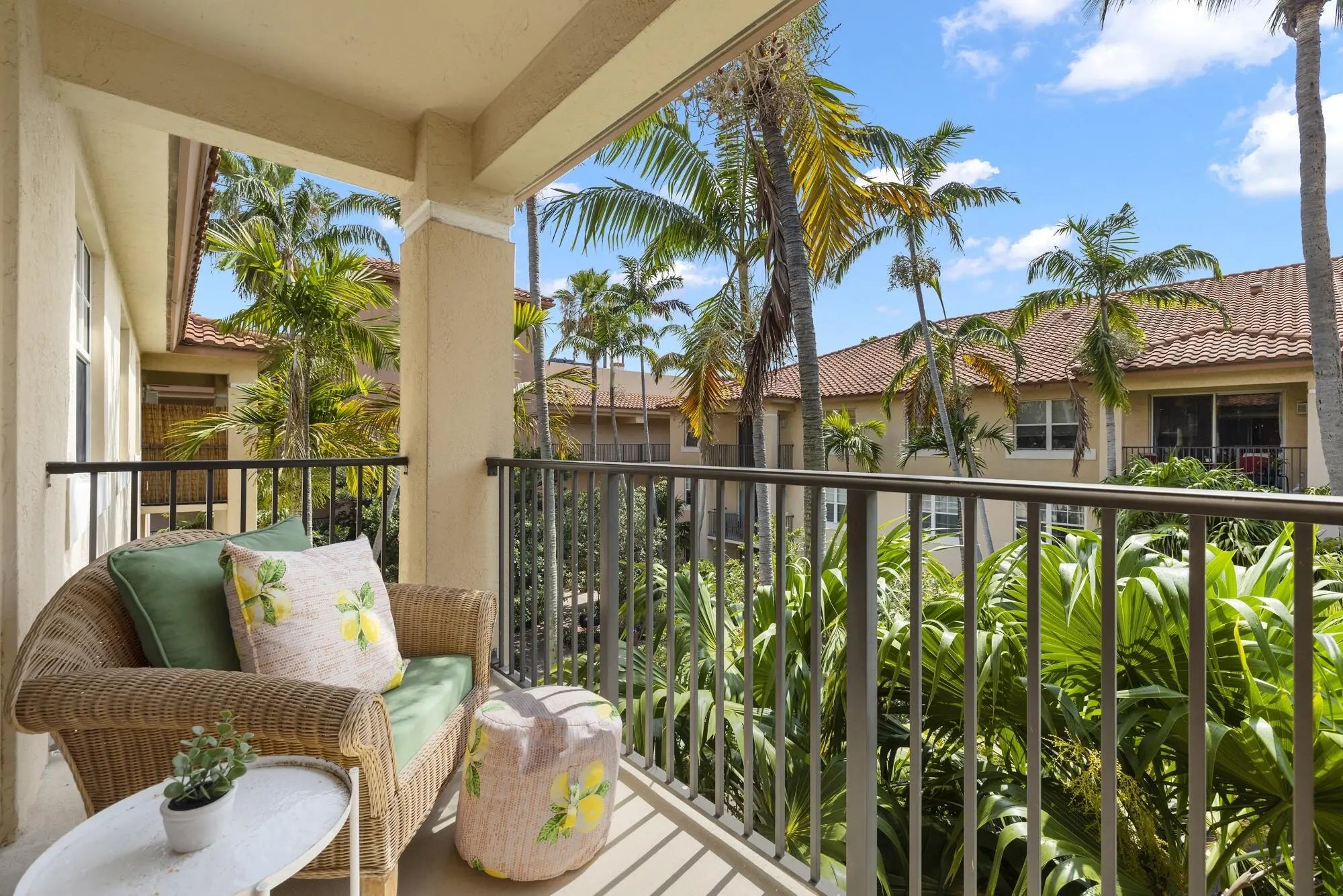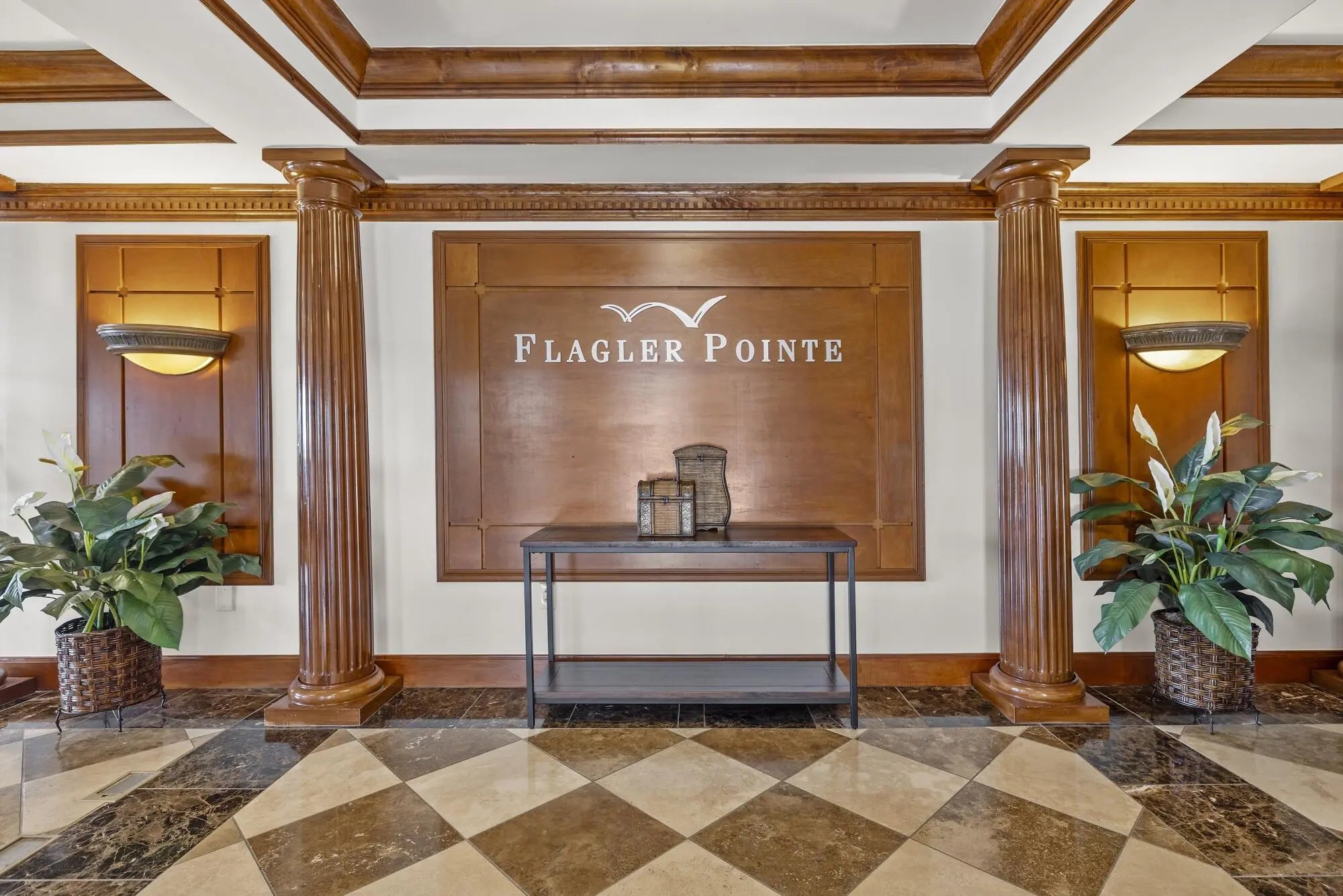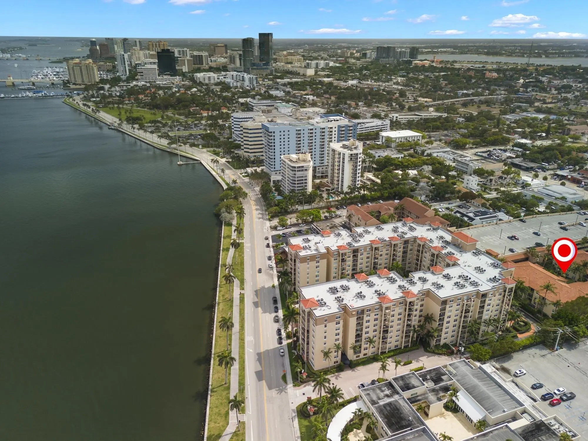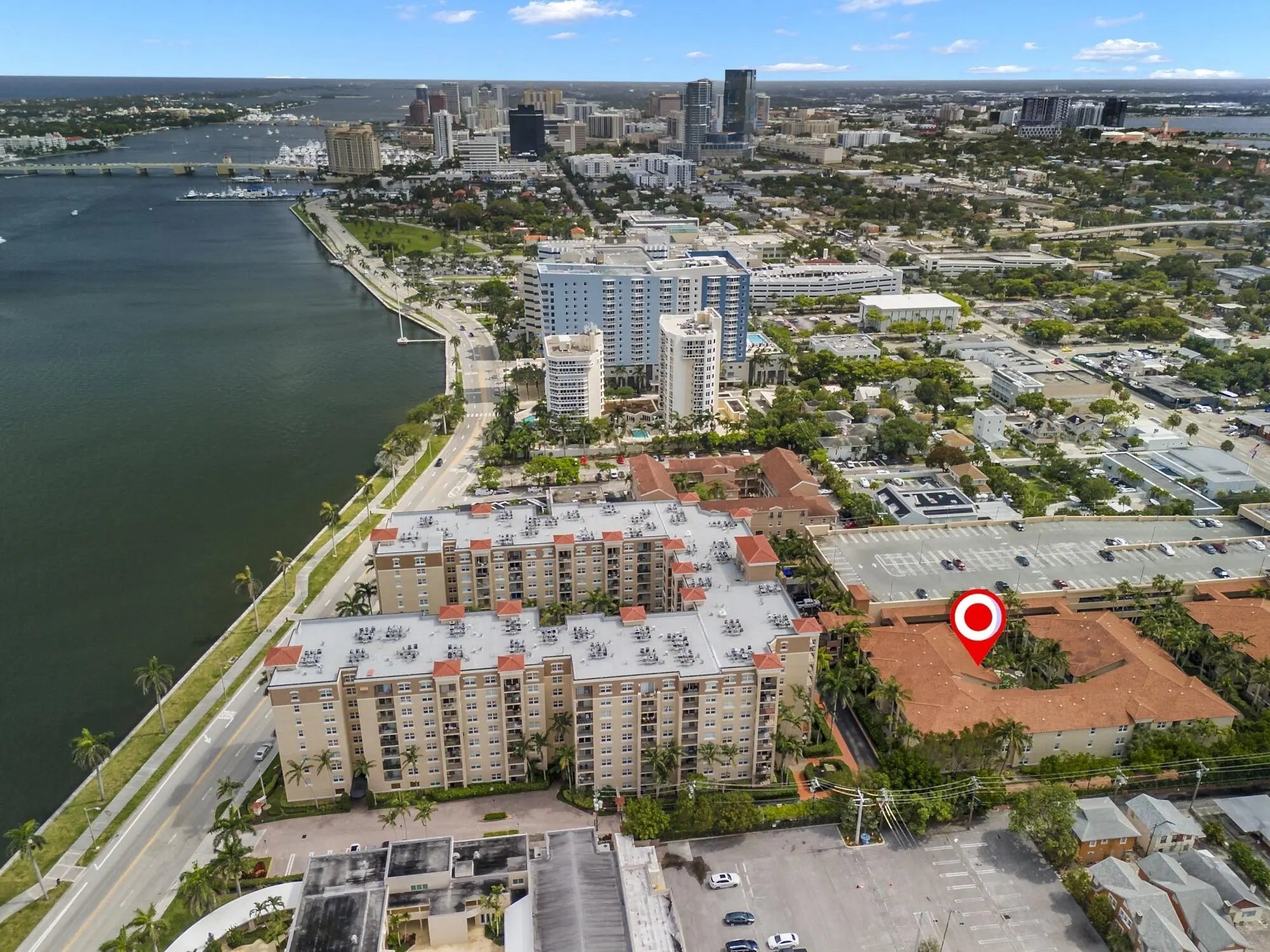 Rarely available -gorgeous top floor corner unit with volume ceilings & located in the quiet & .cozy garden building of Flagler Pointe. Offered furnished if desired. Owner has recently installed wood laminate flooring, newer Central Air, new interior paint & impact windows/doors. Features include prime parking spot, spacious laundry room w/extra storage, breakfast bar, and cozy balcony overlooking tranquil garden. This is a gated community with 24/7 full service concierge desk, in house management company, resort style pool, spa,sauna, gym and club lounge. Live the life of luxury with the newest Ritz Carlton Residence being built right next to Flagler Pointe. Great location right across the street from the intracoastal waterway. Close to downtown within biking and walking distance.