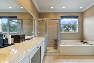 Welcome home to this stunning 3500 total sq. ft. 5BR/ 4BA pool home in Wellington's premier resort style community Olympia! Exquisite estate home with extensive custom upgrades including salt water pool with sun shelf, generous lush tropical landscaping, totally private rear yard, meticulously maintained home inside and out, and much more. Gourmet chef's kitchen with stainless steel appliances, granite counters and beautiful backsplash. The kitchen is huge and the island is large and prefect for parties and entertaining. Stunning staircase with wrought iron custom balusters. Owner's suite is over sized, enormous his and hers closets with dressing area and master bathroom fit for royalty. The layout is exceptional and one of my favorites in all of Olympia.There is one bedroom/office on the main floor and four large bedrooms upstairs. The backyard is truly a private oasis with lush tropical landscaping adorning a beautiful pool with water feature. Travertine surrounding the pool is stunning. Huge covered area for entertaining or dinners al fresco. Located in the gorgeous Bryden Village in Olympia. This beautiful home is ready for a new family to love! Olympia is Wellington's premier resort style community that is unparalleled in amenities and true bustling community feel, and this estate in Bryden Village is one of the closest village to the incredible clubhouse for ease of walking the kids. The magnificent and gigantic zero entry community pool is truly the best community or resort pool I have ever seen and includes private cabanas and an exciting splash pad for the kids. The clubhouse also includes indoor and outdoor basketball courts, pickleball court, volleyball court, tennis courts, an incredibly impressive upscale clubhouse, updated fitness center, and an entirely renovated brand new huge and fun playground complete with astroturf and tons of fun equipment for the kids. Low HOA dues include high speed ATT internet, four manned security entrances, 24 hour rovers, and more. Such a wonderful community feel here. The home is located within walking distance to the clubhouse, restaurants, and shopping. Bryden Village is a premier section in Olympia and a beautiful place to call home. Olympia offers a country club experience without the dues including family fun runs, 5k, 10k, luaus, karate lessons, yoga, 20's themed flapper parties, mom and daughter painting nights, ladies brunches, food trucks, bounce houses and waterslides, pizza parties, holiday parties, end of school year parties, outdoor movie nights, and the list goes on. This is a true community feel. Did I mention the top A rated Wellington schools? Come see this home, it is as gorgeous in person as it is in these photos. You deserve to live the Olympia lifestyle, now it is time to make your dream a reality.