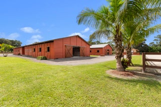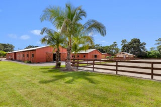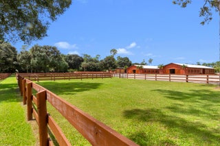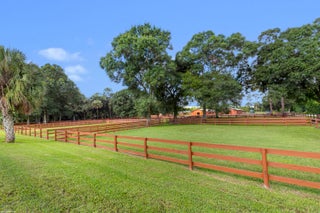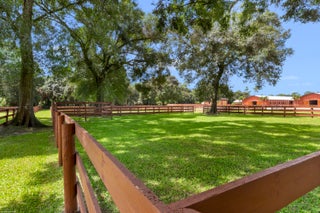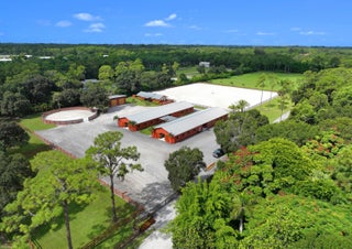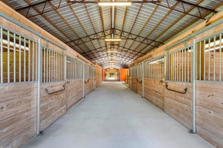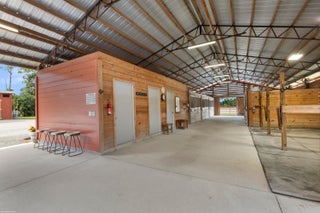 A private training oasis with 2 barns totaling 26 stalls, oversized arena measuring 250 x 250, 4.5-acre grass riding field, round pen and 12 large paddocks with mature shade trees. There are two center-aisle barns, with 14-stalls and 12-stalls, and one with a studio apartment. Each barn has 2-tack rooms, feed & storage rooms, half-bath, and 3-grooming stalls. There are 4 wash racks in the courtyard, 2 of which are covered. There is a clubhouse with a kitchenette, 2 private staff rooms, 2 full bathrooms and beautiful observation deck overlooking the riding arena. The equipment shed also includes an office/studio with full bath. The entire property is completely fenced with an electric gate. This property is perfect for all disciplines of riding and a great income producing opportunity.Other features: Generator to run property 2 RV electrical hookups 220v outlet for a horse treadmill in the barn.