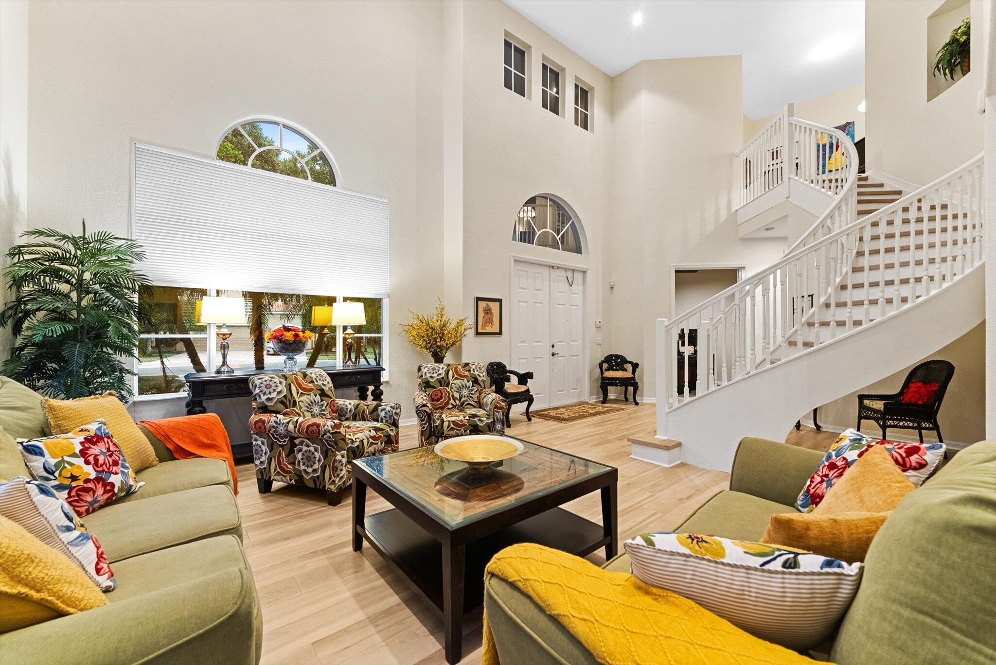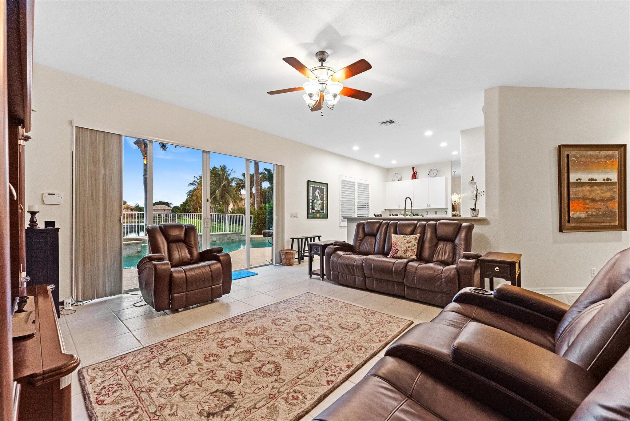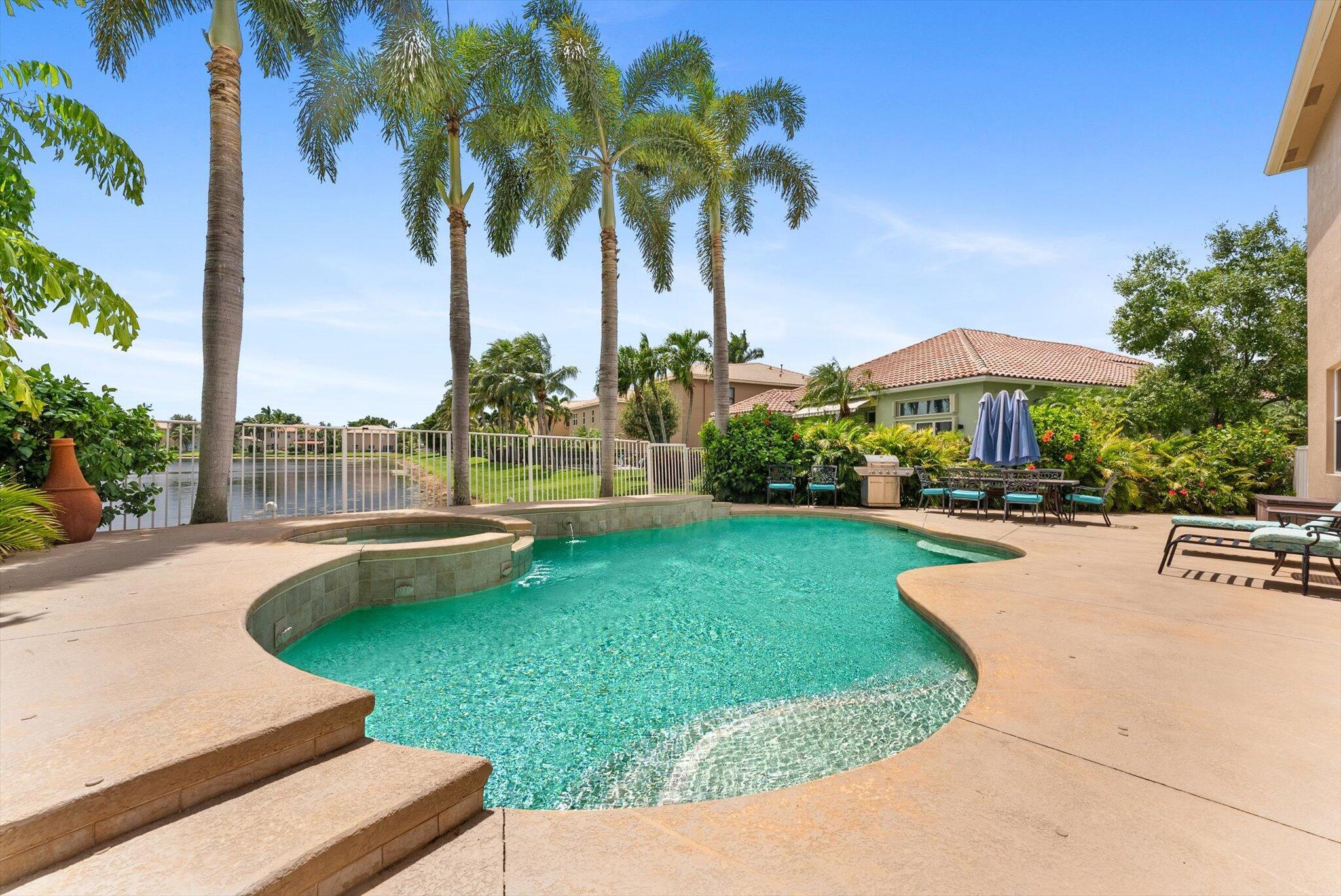 Experience grand lakefront living in the gated Black Diamond community. This stunning home boasts soaring 20+ ft. ceilings, a dramatic curved staircase, and expansive windows showcasing the resort-style pool and sparkling lake. The chef's kitchen features a large island, stainless steel appliances--including brand new dishwasher and refrigerator-- a huge pantry and natural gas stove. With 4 bedrooms, a versatile sitting room in the primary suite, a first-floor guest bedroom, and a spacious loft, the home adapts to any lifestyle. Additional highlights: 3-car garage, gas water heater, plantation shutters, leaf guard gutters, and a prime location near shops, restaurants, the Wellington Mall, and top-rated schools.The Epitome of Grand Lakefront Living This stunning lakefront home combines elegance, space, and privacy in the gated community of Black Diamond. Double doors open to soaring 20+ ft ceilings and a dramatic curved staircase, setting the tone for timeless design. Graceful archways and sun-filled windows frame sweeping views of the resort-style pool and sparkling lake. The chef's kitchen is designed for both function and flair, featuring a large island, walk-in pantry, natural gas stove, stainless steel appliancesincluding a brand-new refrigerator and dishwasher. With 4 bedrooms plus a versatile bonus room off the primary suite, the layout adapts easily for a nursery, office, gym, or 5th bedroom. A first-floor guest suite with full bath is perfect for multi-generational living. The primary suite is a retreat with tray ceilings, sitting room, double-door entry, two oversized walk-in closets with custom built-ins, and a spa-like bath with dual sinks, Roman tub, and oversized shower. Upstairs, a spacious loft provides flexibility for homework, office, or play. Step outside to your private paradise on a pie-shaped lot with added side yard, enhanced privacy, and breathtaking sunsets. Relax poolside, entertain on the deck, or imagine your own tropical retreat. Additional Highlights Plantation shutters & upgraded window treatments Leaf guard gutters for low maintenance Gas water heater Smart features: Alexa-activated lights, app-enabled garage & thermostat Spacious 3-car garage with keypad entry Community & Location Black Diamond offers 24-hour manned gate, clubhouse, pool, tennis, and playground. HOA includes lawn care, alarm, internet, and cable. Conveniently close to shops, restaurants, Wellington Mall, and top-rated schools.