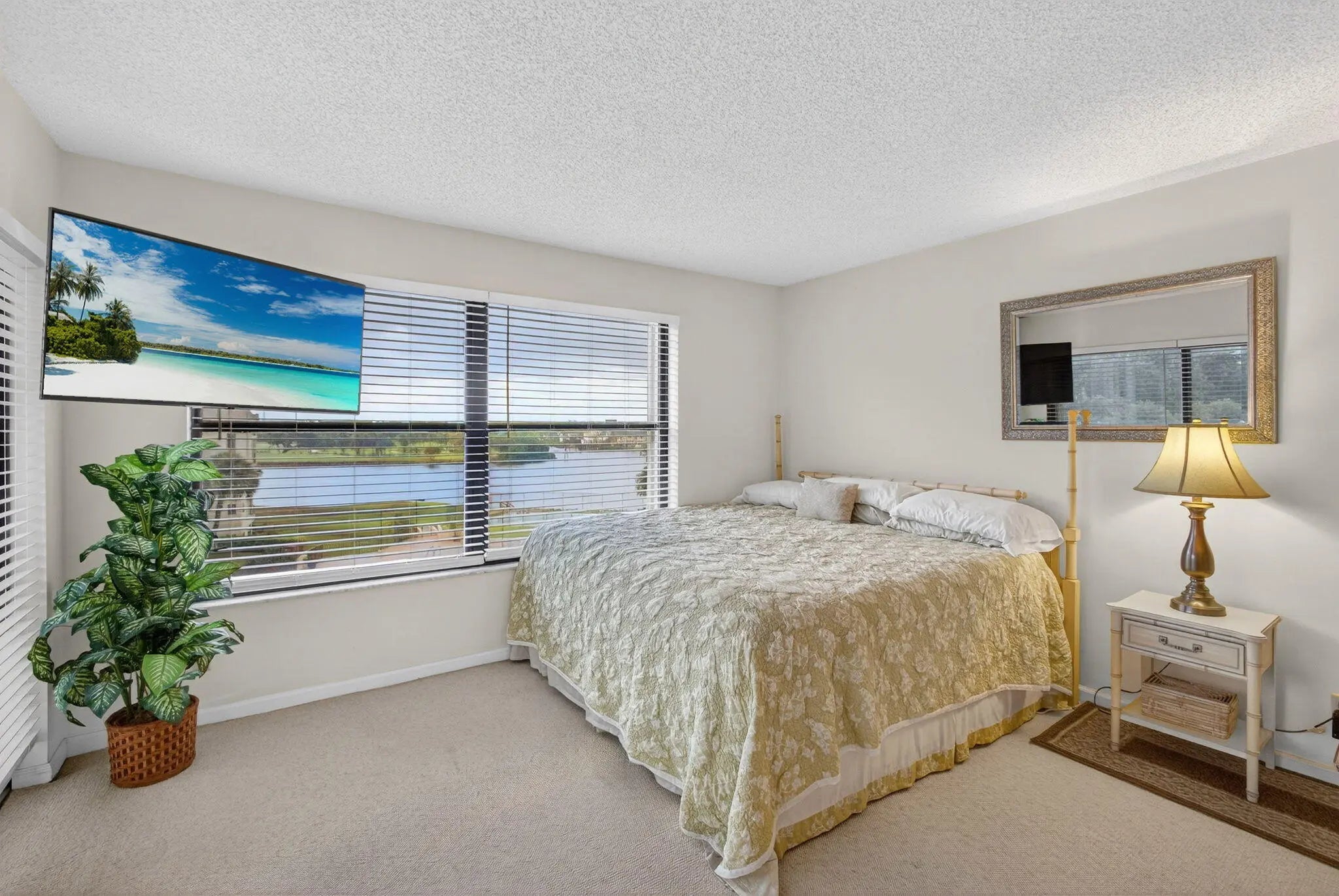 Spacious 2000+ sq. ft. corner unit overlooking the intracoastal, pool & North Palm Golf Course. Watch the boats go by and beautiful sunsets. Available fully furnished. Large rooms including a 20 x 14 foot primary bedroom, 21 x 14 foot living room and a 21 x 12 foot family room. Both bedrooms have large walk in closets and remodeled showers and the primary has double vanities. Washer & Dryer in the unit. Condo features Pool & Tennis. Accordion hurricane shutters for quick & easy protection from storms.Only 3 miles to the beach and walking distance to shopping & restaurants. New roof in 2024. Structural engineering inspections completed.