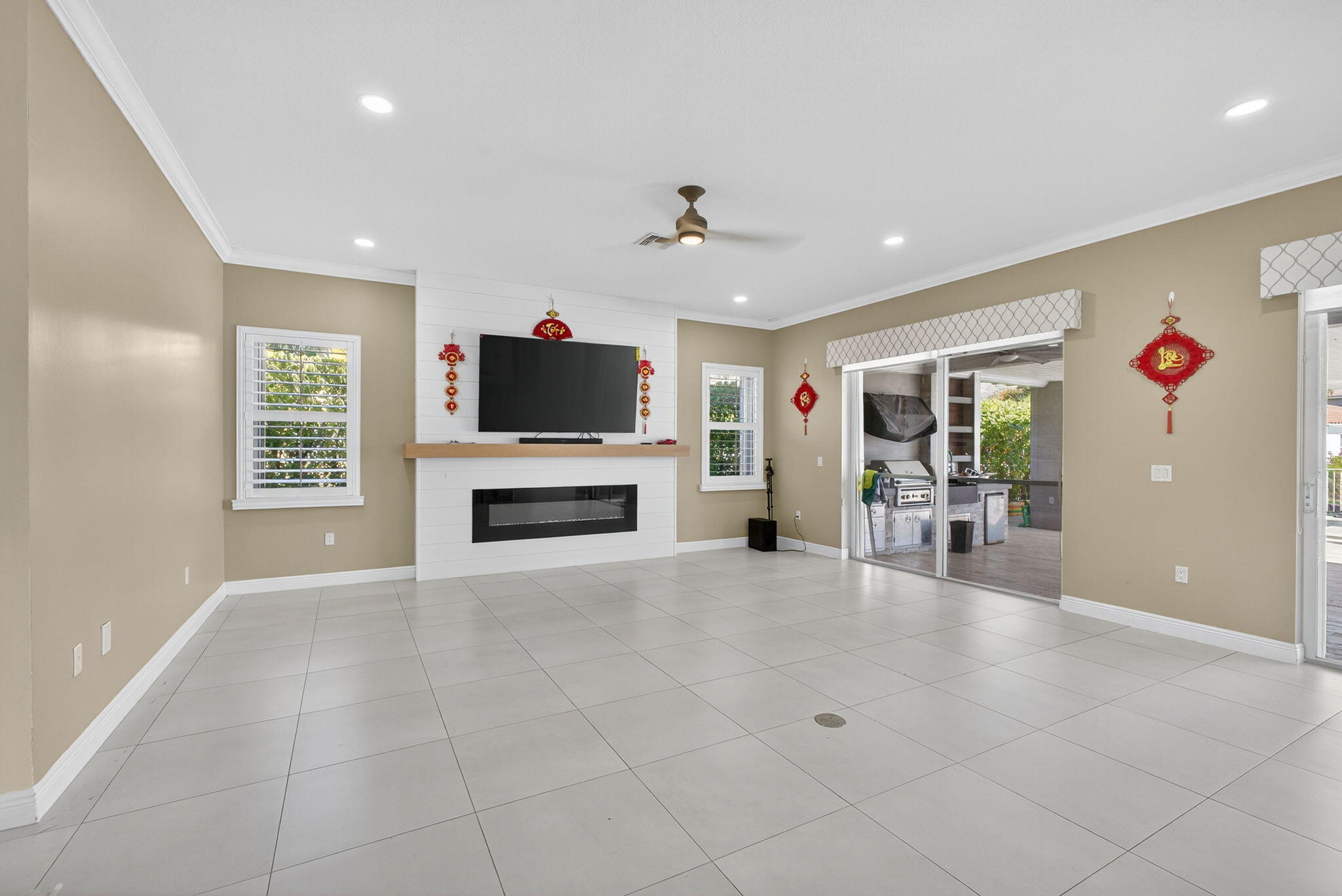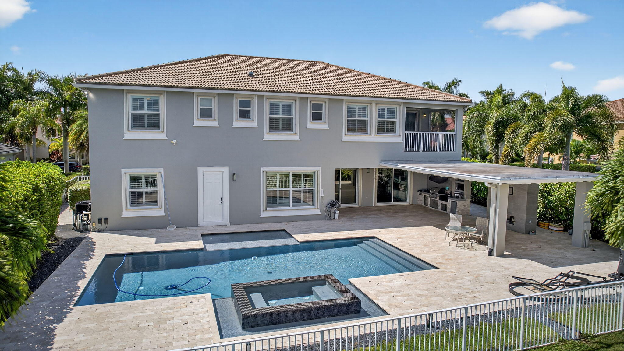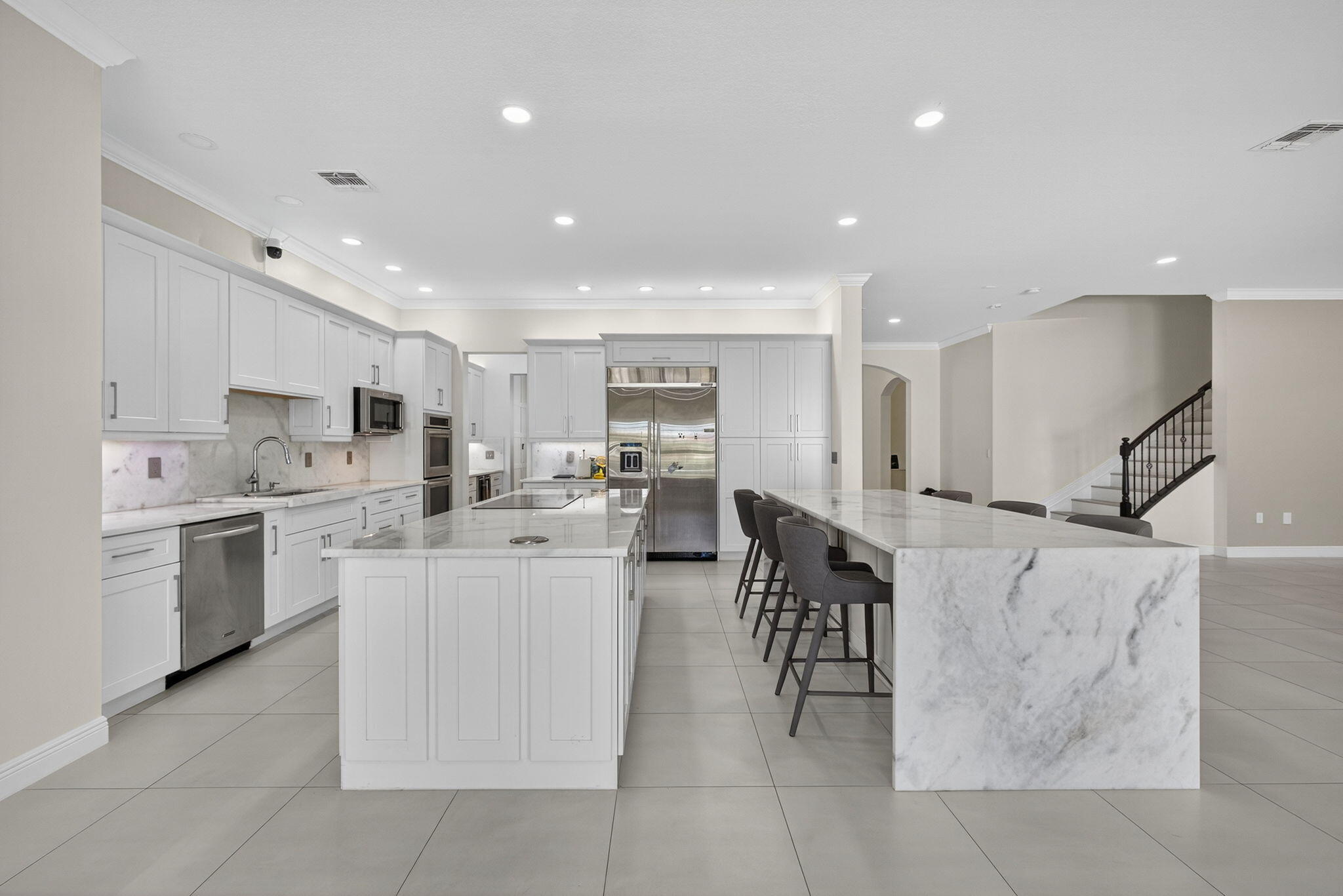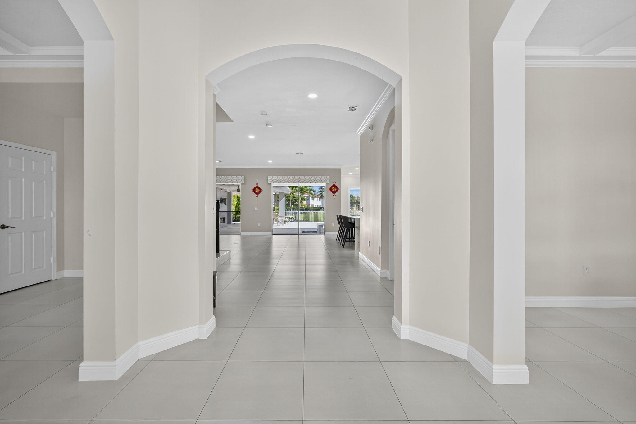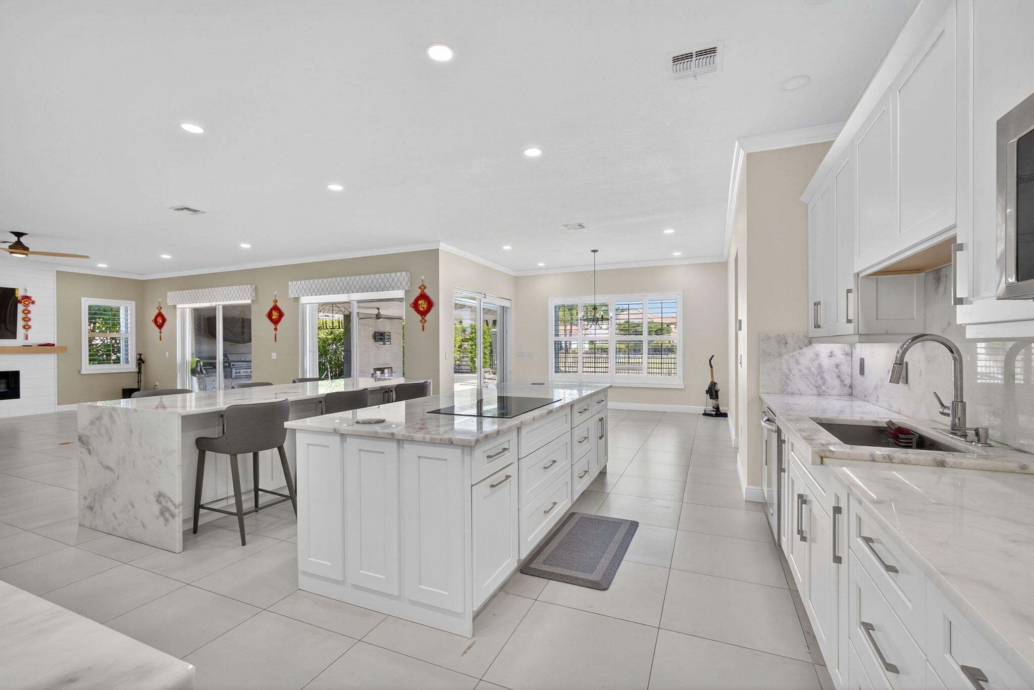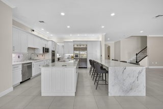 Stunning and spacious 5-bedroom, 5.5-bath estate pool home with bonus room & office and 2-car garage, located on a premium 0.28-acre lakefront lot in the highly sought-after resort community of Olympia. Step inside to a beautifully renovated interior where soaring ceilings, sunlit spaces, and custom details create a warm yet refined ambiance. The gourmet chef's kitchen boasts dual islands, custom cabinetry, double ovens, a built-in pantry, and top-of-the-line appliances. The outdoor living space is a true sanctuary. Overlooking serene lake views, the expansive loggia is complete with a summer kitchen and fireplace, setting the stage for effortless indoor-outdoor living. The heated saltwater pool with sun shelf and infinity-edge spa offers a resort-style escape in your own backyard.This property is more than a homeit's a lifestyle. Discover the perfect balance of sophistication, comfort, and tranquility in the heart of Wellington.