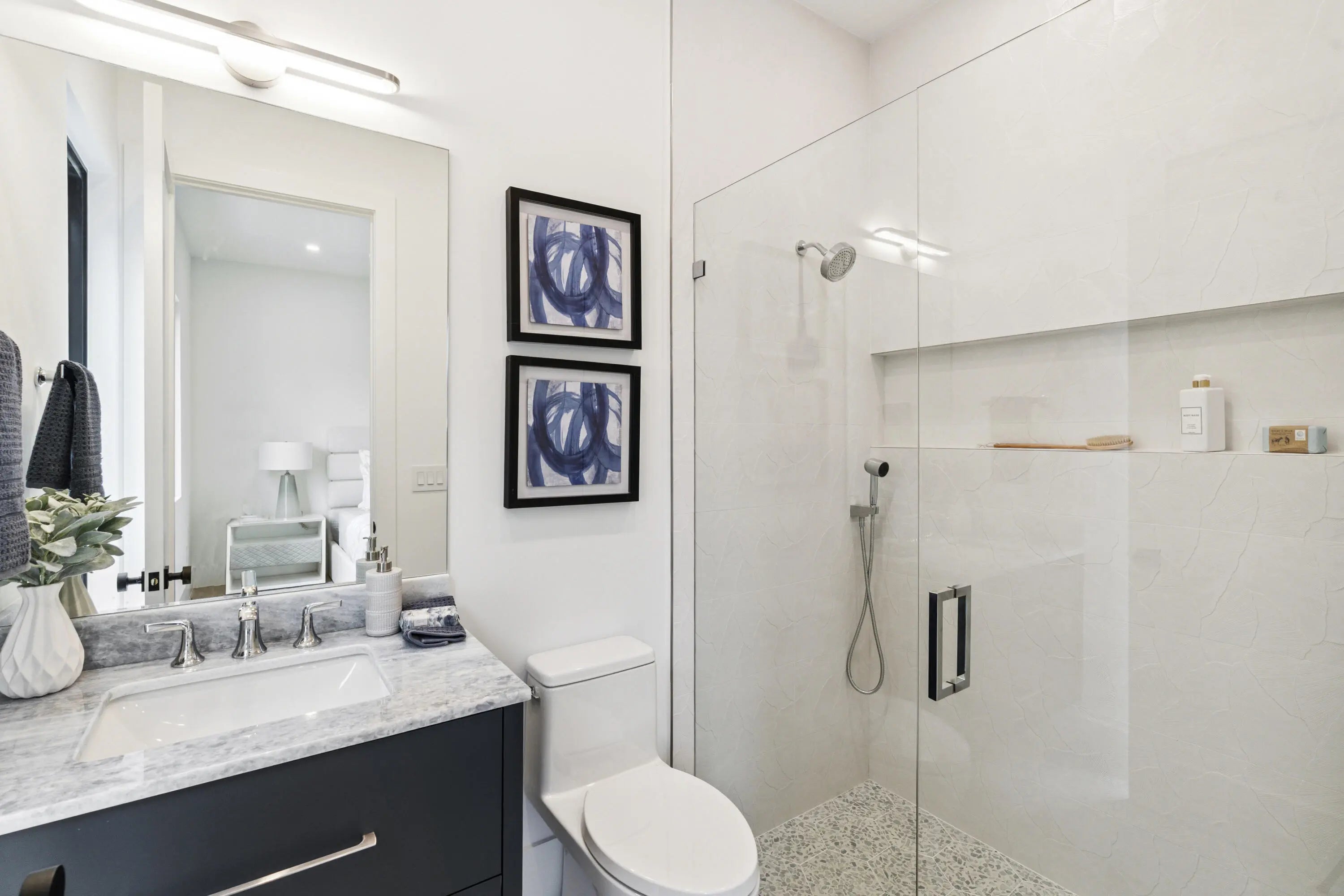 This stunning residence is a true showcase of Mizner Development's award-winning design and modern sophistication. Step inside to discover a thoughtfully designed layout featuring five ensuite bedrooms, plus a private office, stylish club room, and spacious loft. The heart of the home is a grand open-concept living area, filled with natural light and centered around a chef's dream kitchen, complete with Wolf appliances, custom cabinetry, and sleek finishes. The main level is perfectly suited for both everyday living and entertaining, with the club room, VIP guest suite, and executive office offering--flexibility and luxury. Upstairs, four private bedroom suites are thoughtfully positioned at the corners of the home, providing privacy and comfort for all.