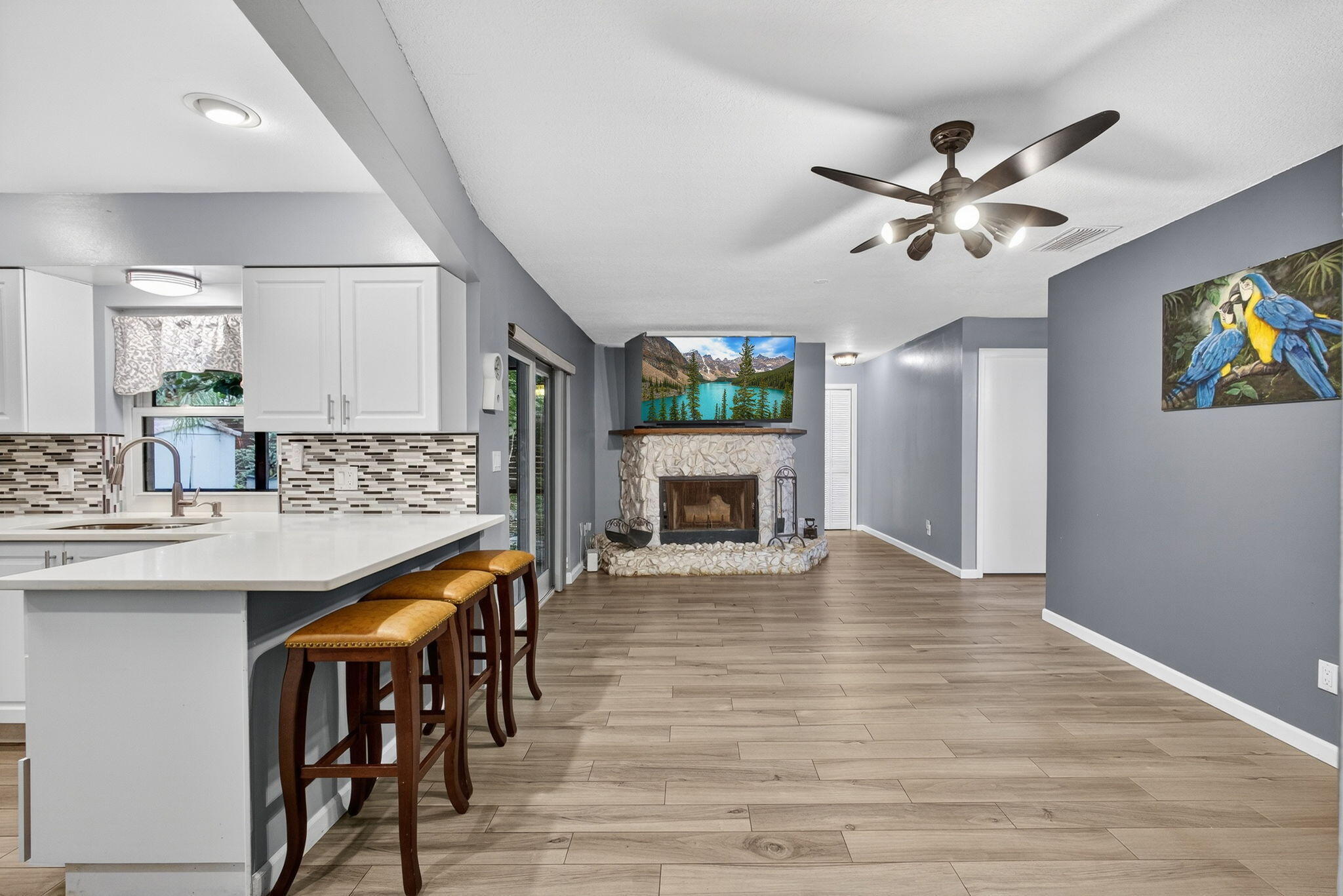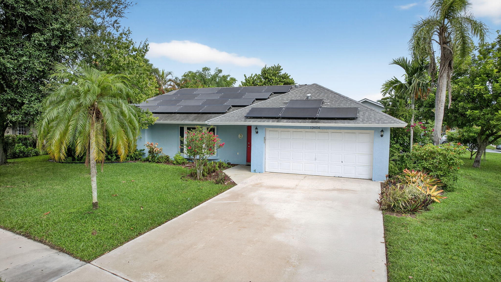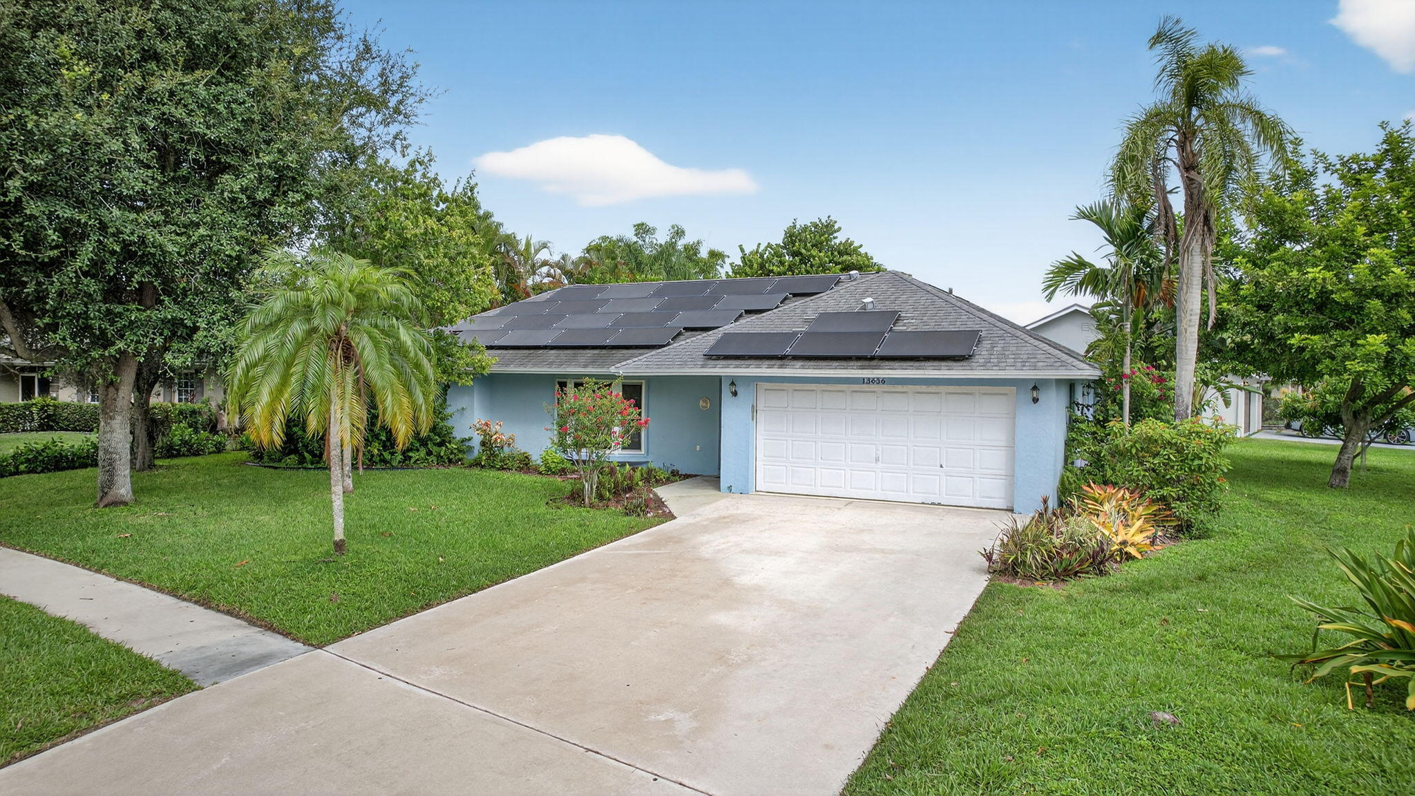 Welcome to this beautifully updated 3-bedroom, 2-bath corner-lot home in Sugar Pond Manor, offering the perfect blend of style, comfort, and functionality--all with no HOA restrictions. Step inside and be impressed by the expansive split floor plan, ideal for both entertaining and privacy. The home showcases continuous wood-look porcelain tile flooring throughout, creating a warm, modern aesthetic. The designer kitchen features quartz countertops, custom cabinetry, and recently updated stainless steel appliances--a dream for any home chef. Both bathrooms have been fully remodeled with high-end finishes, offering a spa-like feel with timeless design. Enjoy year-round comfort with a newer A/C and water heater, plus the long-term savings of fully owned solar panels.For added peace of mind, the home includes impact-rated windows, doors, and sliders throughout. A stone-accented fireplace adds charm and character to the open living area. Outdoor living is just as impressive with a spacious screened-in patio, perfect for relaxing or entertaining guests. The expansive, fully fenced backyard offers privacy, beautiful fruit trees, and a new irrigation well, keeping your lawn lush and green with ease. There's even room for a future pool! Located in one of Wellington's most desirable, family-friendly neighborhoods and zoned for A+ rated schools, this home is just minutes from parks, shopping, dining, and world-class equestrian venues. Don't miss this unique opportunity to own a move-in-ready home with all the upgrades and no HOAright in the heart of Wellington.