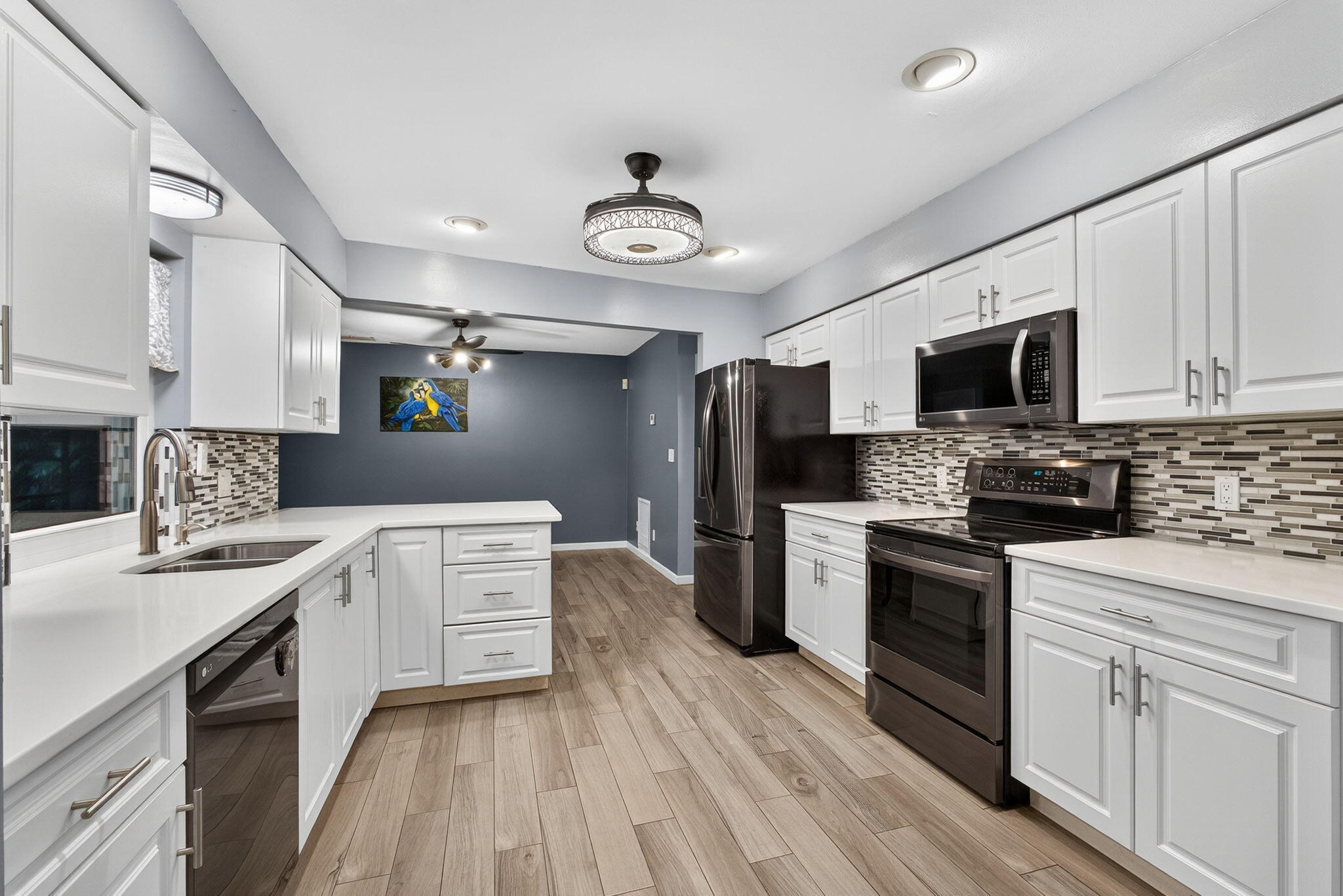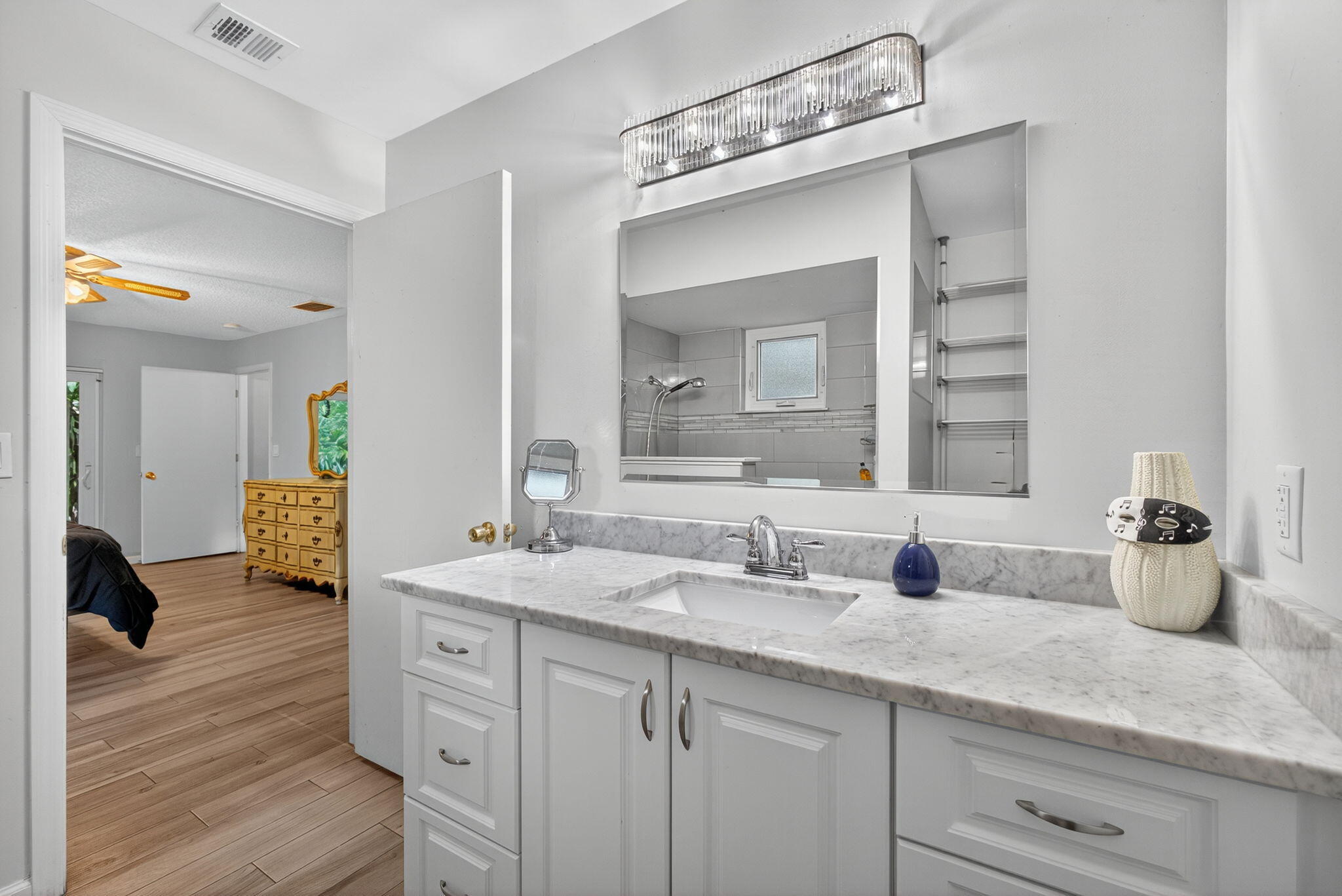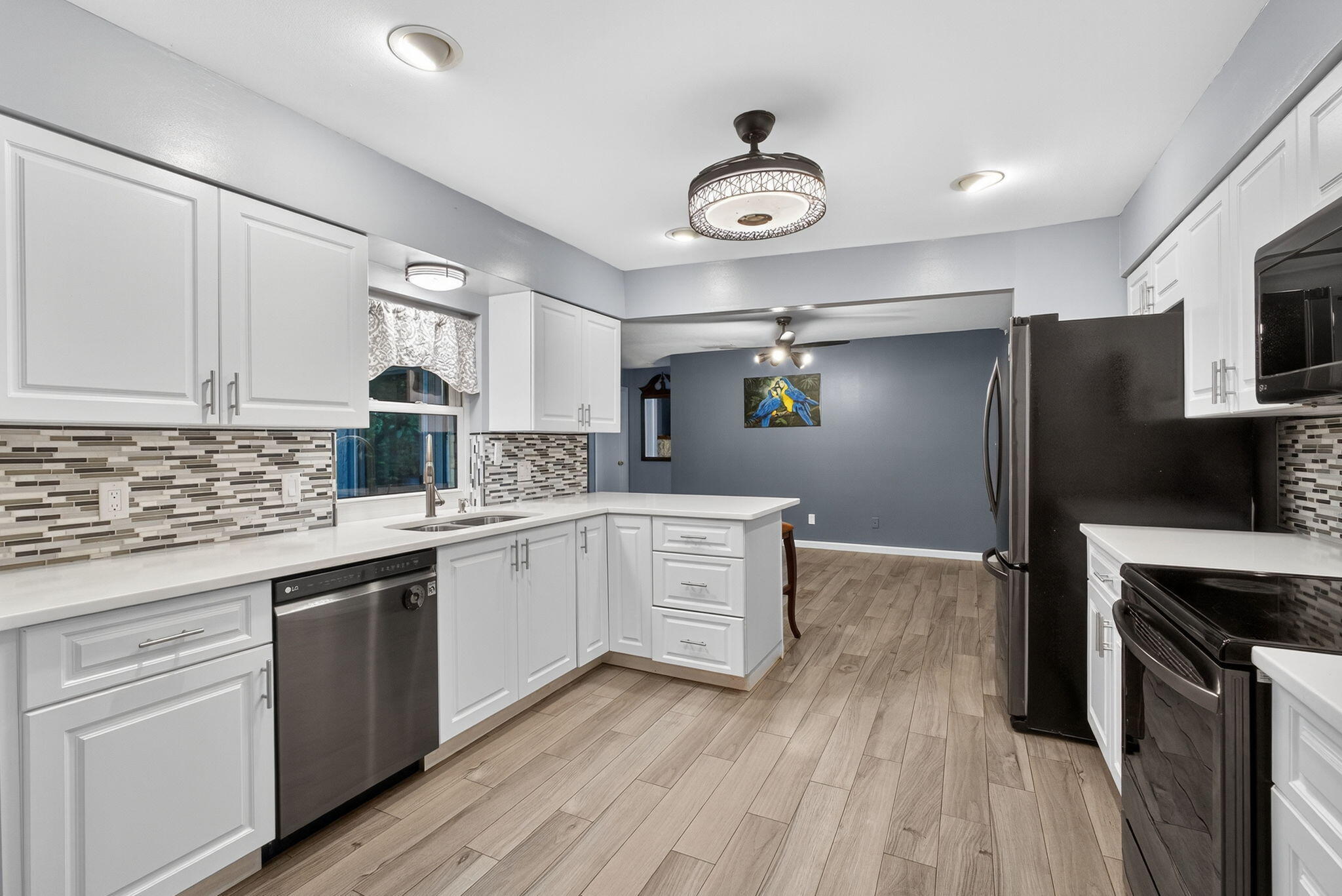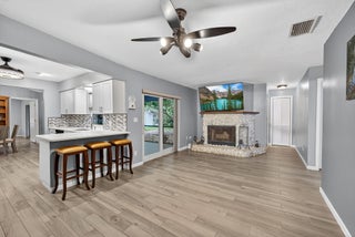 Welcome to this beautifully updated 3-bedroom, 2-bath corner-lot home in Sugar Pond Manor, offering the perfect blend of style, comfort, and functionality--all with no HOA restrictions. Step inside and be impressed by the expansive split floor plan, ideal for both entertaining and privacy. The home showcases continuous wood-look porcelain tile flooring throughout, creating a warm, modern aesthetic. The designer kitchen features quartz countertops, custom cabinetry, and recently updated stainless steel appliances--a dream for any home chef. Both bathrooms have been fully remodeled with high-end finishes, offering a spa-like feel with timeless design. Enjoy year-round comfort with a newer A/C and water heater, plus the long-term savings of fully owned solar panels.For added peace of mind, the home includes impact-rated windows, doors, and sliders throughout. A stone-accented fireplace adds charm and character to the open living area. Outdoor living is just as impressive with a spacious screened-in patio, perfect for relaxing or entertaining guests. The expansive, fully fenced backyard offers privacy, beautiful fruit trees, and a new irrigation well, keeping your lawn lush and green with ease. There's even room for a future pool! Located in one of Wellington's most desirable, family-friendly neighborhoods and zoned for A+ rated schools, this home is just minutes from parks, shopping, dining, and world-class equestrian venues. Don't miss this unique opportunity to own a move-in-ready home with all the upgrades and no HOAright in the heart of Wellington.