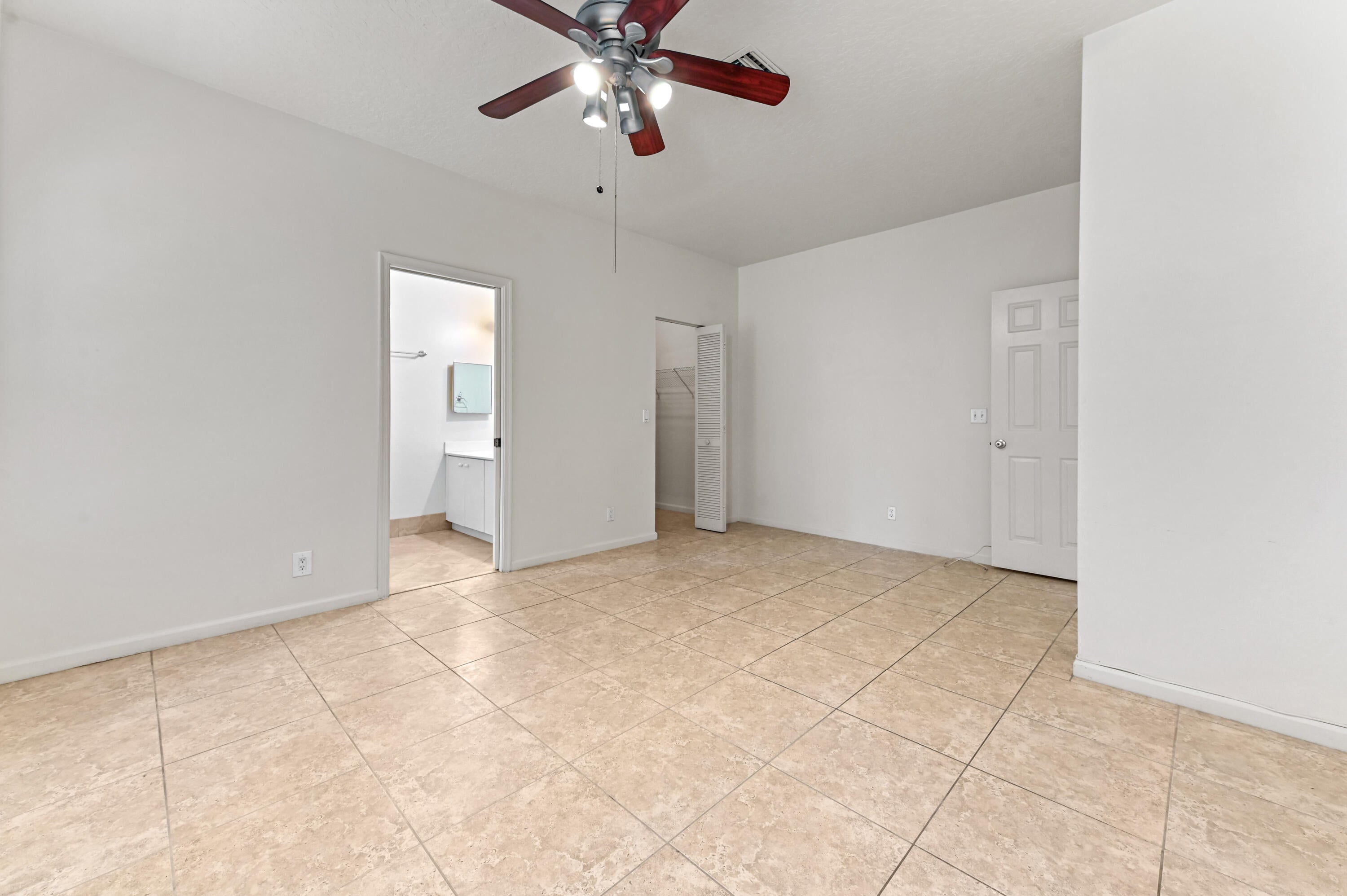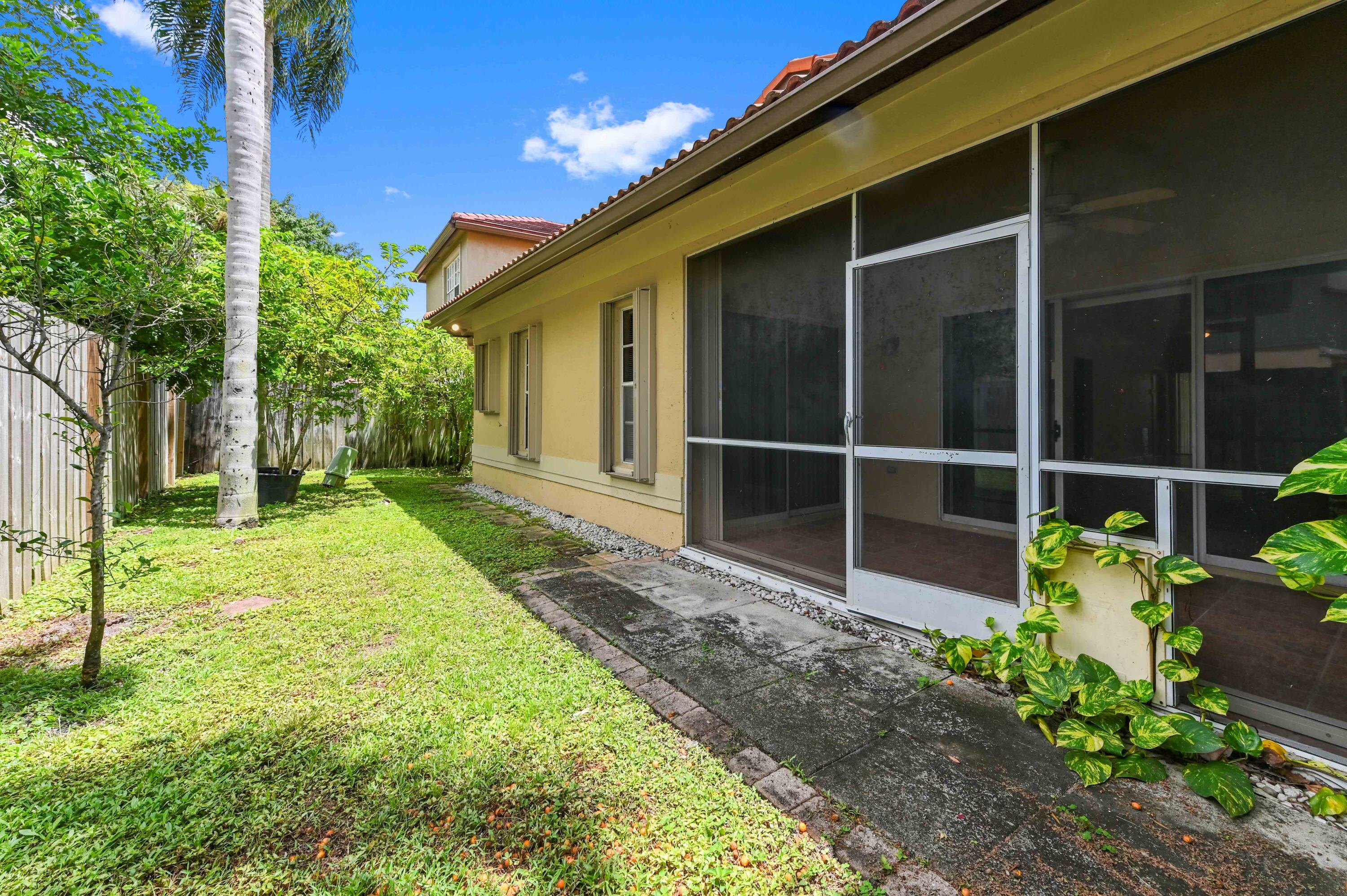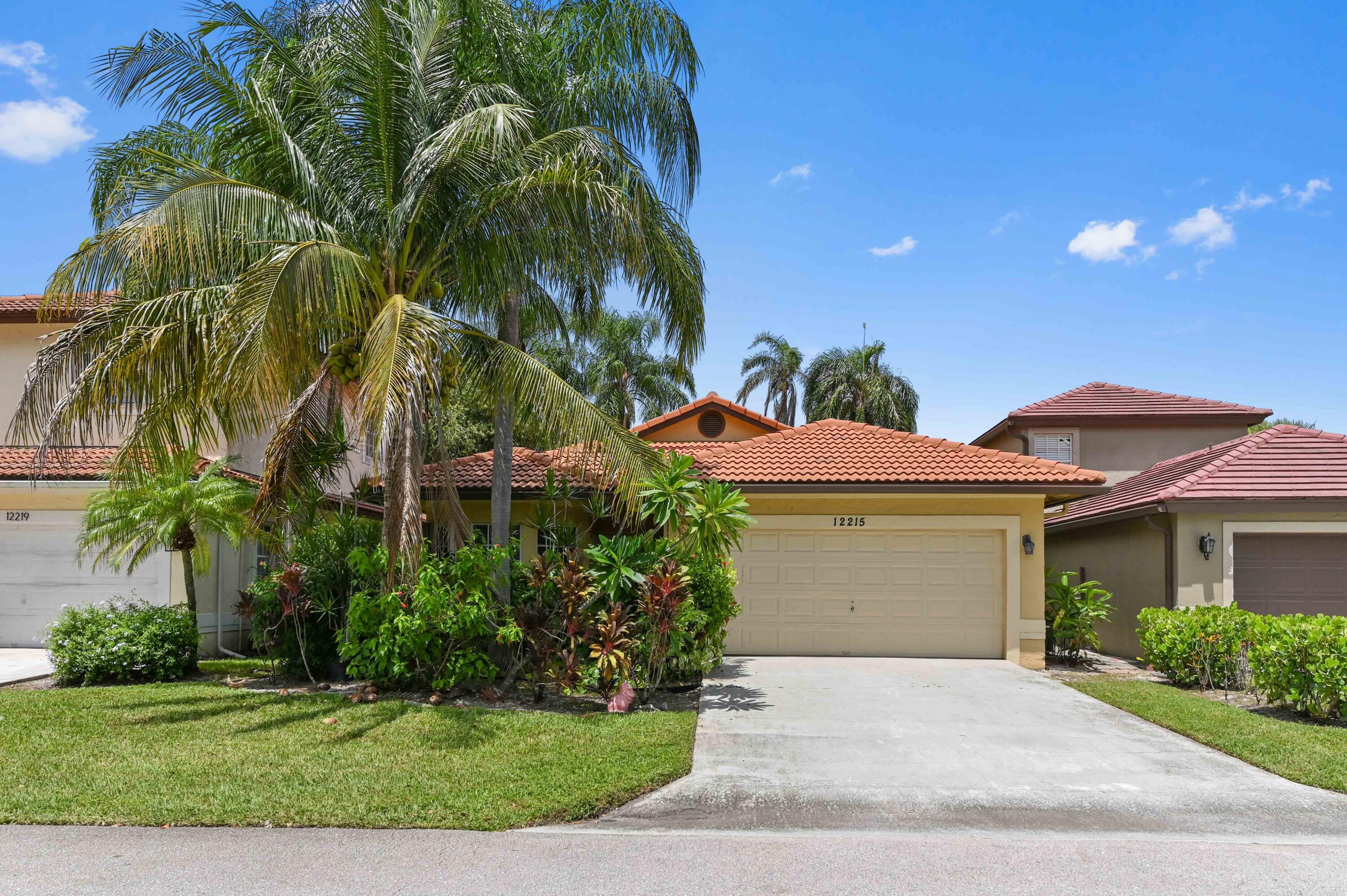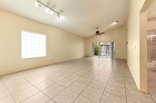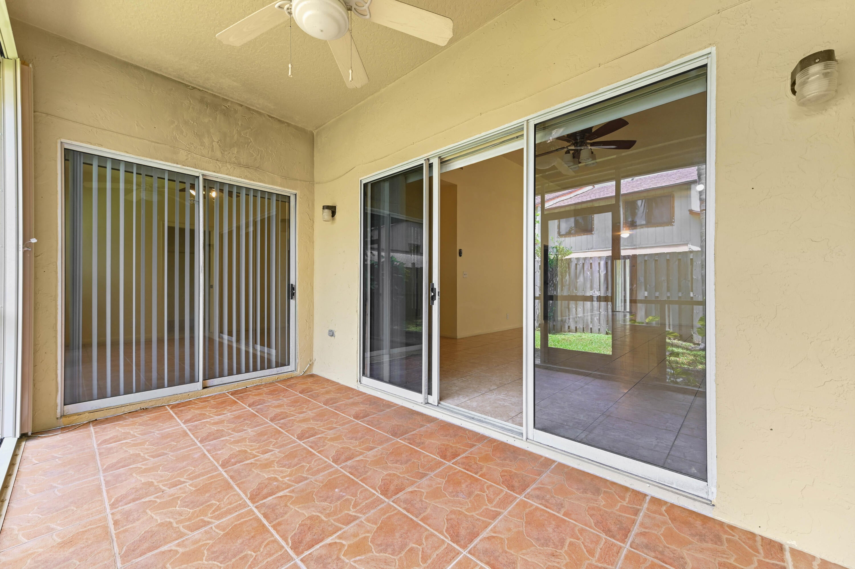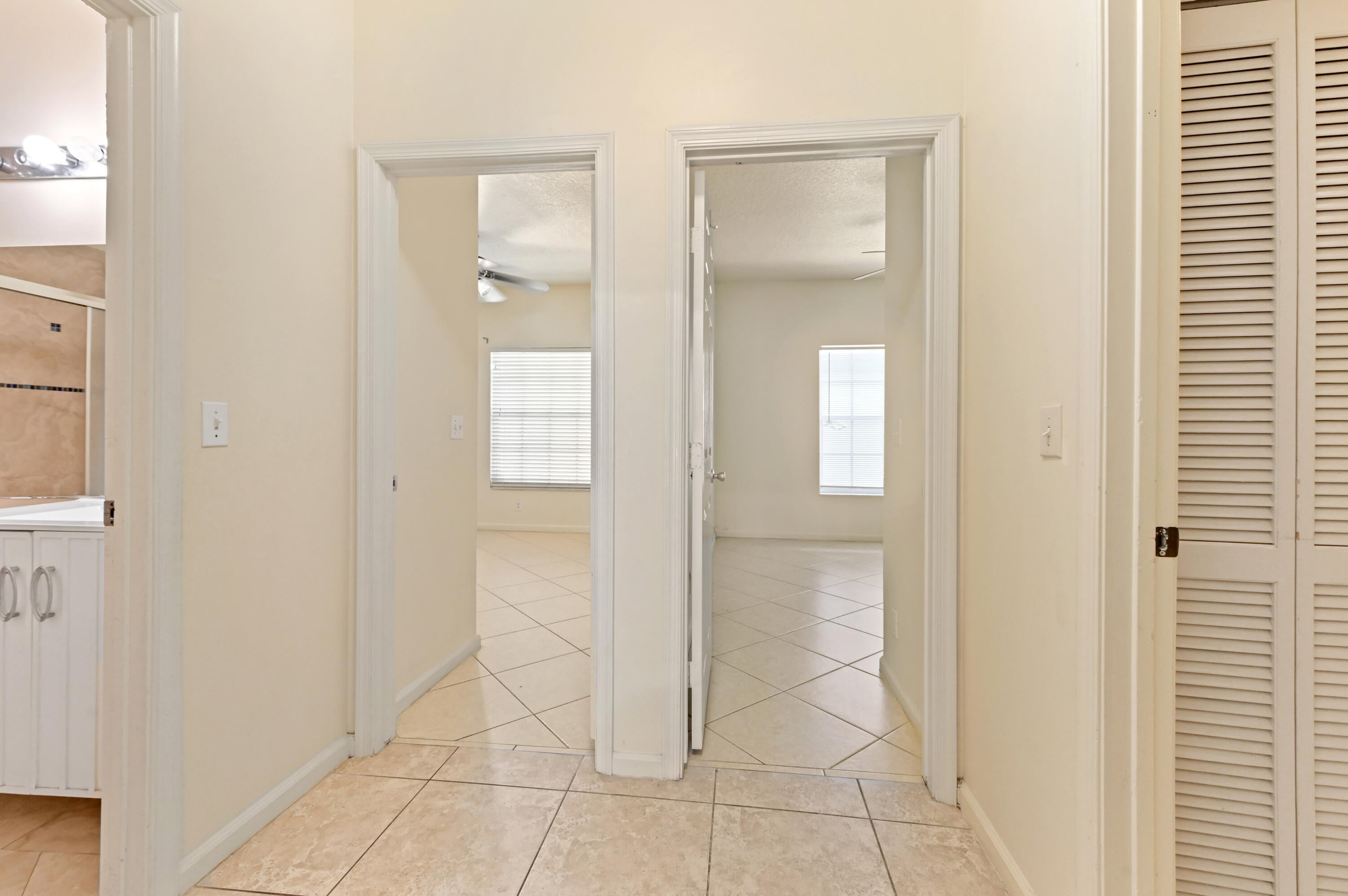 Welcome to this charming single-story home, perfectly situated in the desirable Wellington Downs community. This inviting residence features 3 bedrooms and 2 full bathrooms, offering a seamless blend of modern updates and classic comfort. As you step through the front door, a welcoming foyer leads to a beautifully updated kitchen on your left, complete with gleaming granite countertops, pristine white cabinets, and a cozy breakfast area--ideal for your morning coffee. The main living and dining areas combine to create an expansive, open space, enhanced by soaring vaulted ceilings that create a bright and airy atmosphere.The home's functional layout is complemented by elegant tiled flooring that extends throughout, offering both durability and a cohesive aesthetic. The bedrooms all feature ample closet space, providing plenty of storage. The master bedroom is a private sanctuary, boasting a walk-in closet and an ensuite bathroom. For ultimate convenience and a touch of luxury, the master bedroom also provides direct sliding door access to the back patio. A dedicated laundry room adds to the home's practical appeal, making daily chores effortless. Step outside to discover your private oasis: a screened patio that is perfect for year-round enjoyment, overlooking a fenced backyard that provides a secure space for play or relaxation. Enjoy the peace of mind that comes with a home that has been lovingly maintained, featuring an updated kitchen and bathrooms, as well as a newer A/C unit installed in 2019. The HOA takes care of yard maintenance, freeing up your time to enjoy the community's resort-style amenities, including a pool and tennis court. With a prime Wellington location, this home is within walking distance of the community center, shopping, and dining, and just minutes from all the area has to offer.