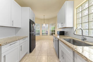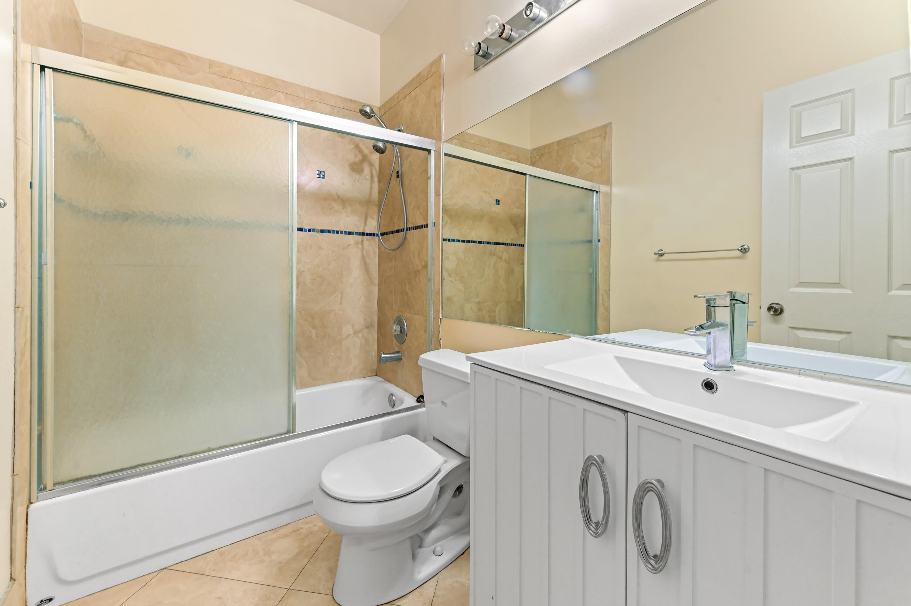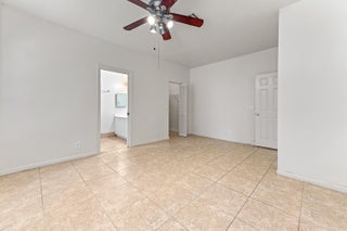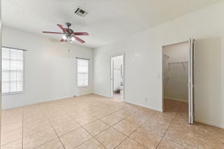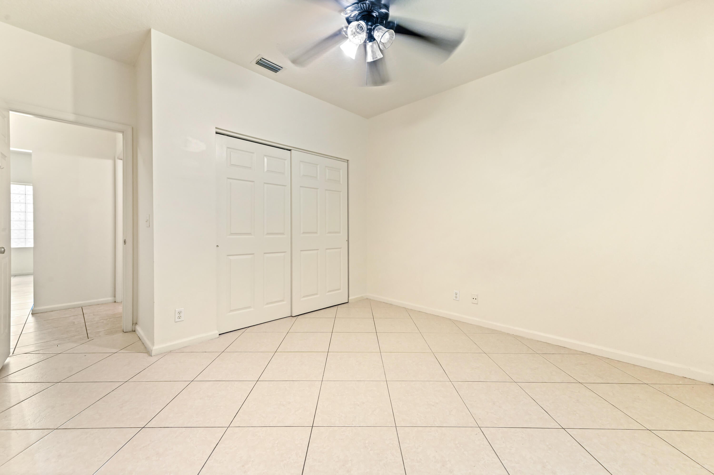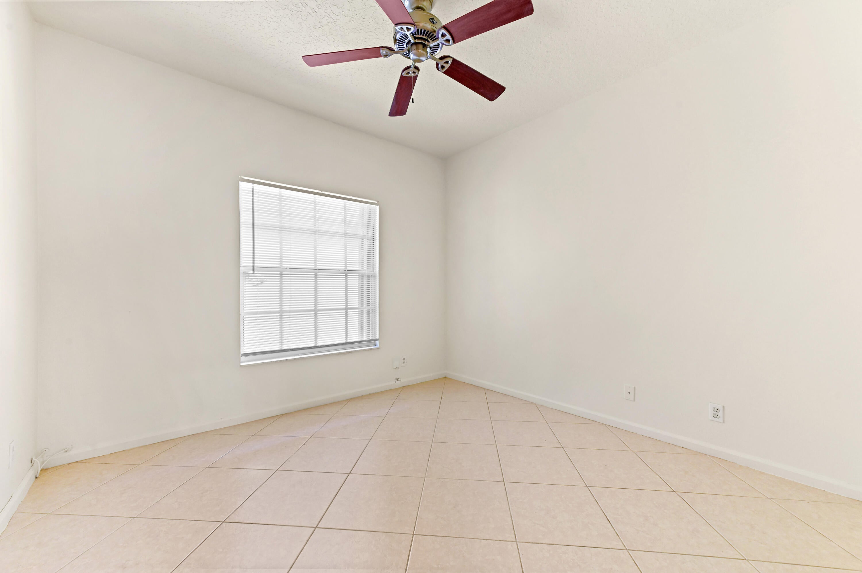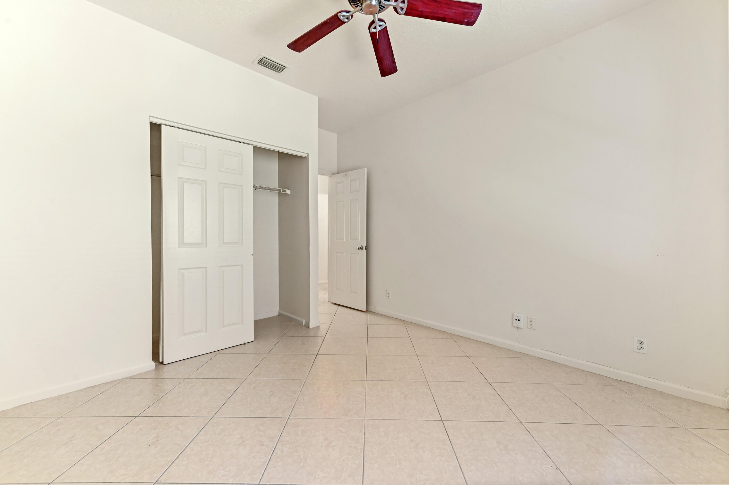 Welcome to this charming single-story home, perfectly situated in the desirable Wellington Downs community. This inviting residence features 3 bedrooms and 2 full bathrooms, offering a seamless blend of modern updates and classic comfort. As you step through the front door, a welcoming foyer leads to a beautifully updated kitchen on your left, complete with gleaming granite countertops, pristine white cabinets, and a cozy breakfast area--ideal for your morning coffee. The main living and dining areas combine to create an expansive, open space, enhanced by soaring vaulted ceilings that create a bright and airy atmosphere.The home's functional layout is complemented by elegant tiled flooring that extends throughout, offering both durability and a cohesive aesthetic. The bedrooms all feature ample closet space, providing plenty of storage. The master bedroom is a private sanctuary, boasting a walk-in closet and an ensuite bathroom. For ultimate convenience and a touch of luxury, the master bedroom also provides direct sliding door access to the back patio. A dedicated laundry room adds to the home's practical appeal, making daily chores effortless. Step outside to discover your private oasis: a screened patio that is perfect for year-round enjoyment, overlooking a fenced backyard that provides a secure space for play or relaxation. Enjoy the peace of mind that comes with a home that has been lovingly maintained, featuring an updated kitchen and bathrooms, as well as a newer A/C unit installed in 2019. The HOA takes care of yard maintenance, freeing up your time to enjoy the community's resort-style amenities, including a pool and tennis court. With a prime Wellington location, this home is within walking distance of the community center, shopping, and dining, and just minutes from all the area has to offer.