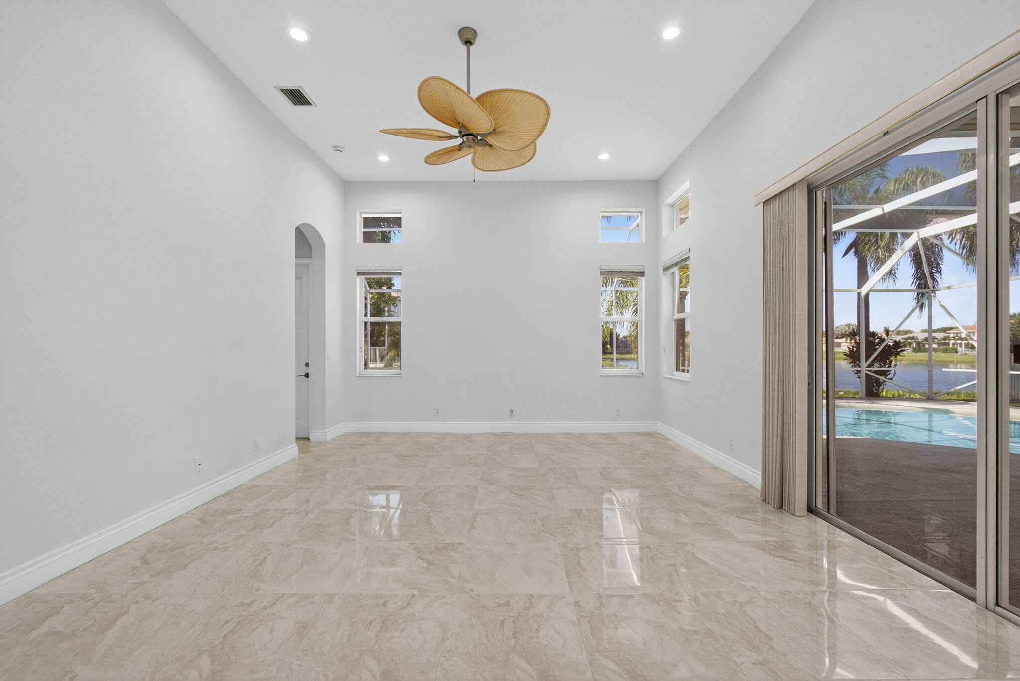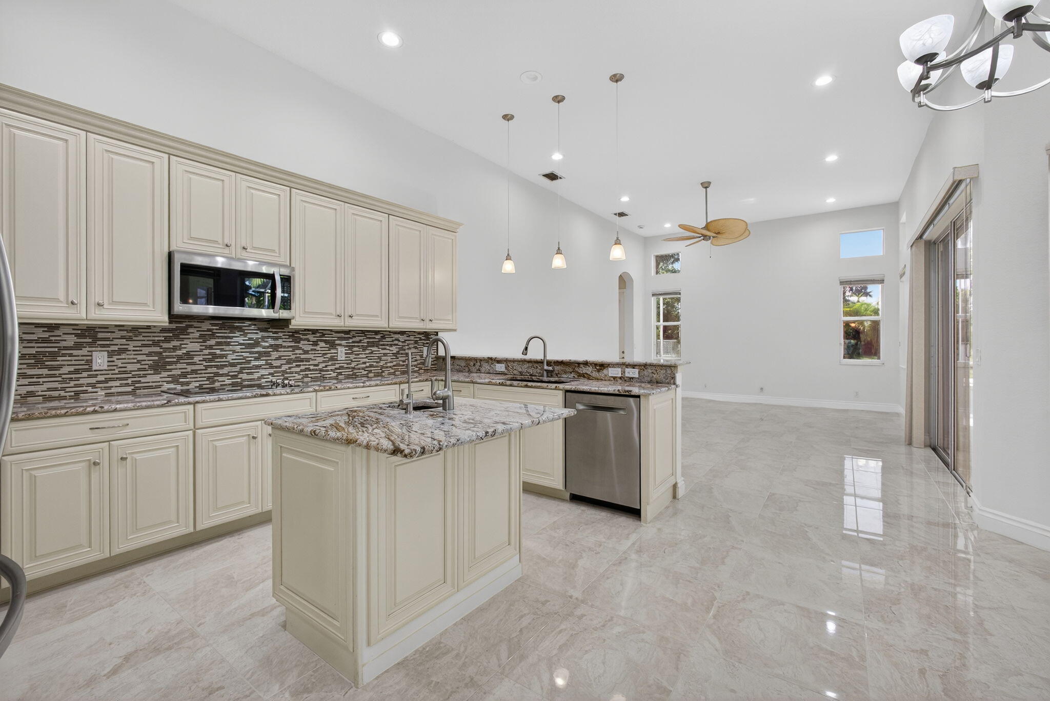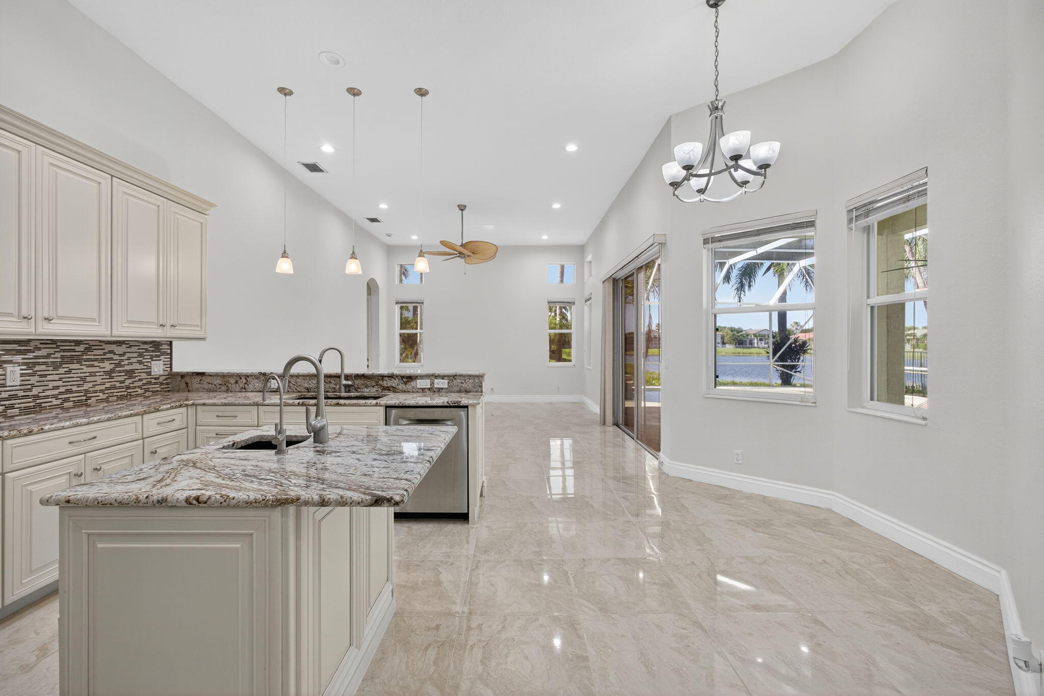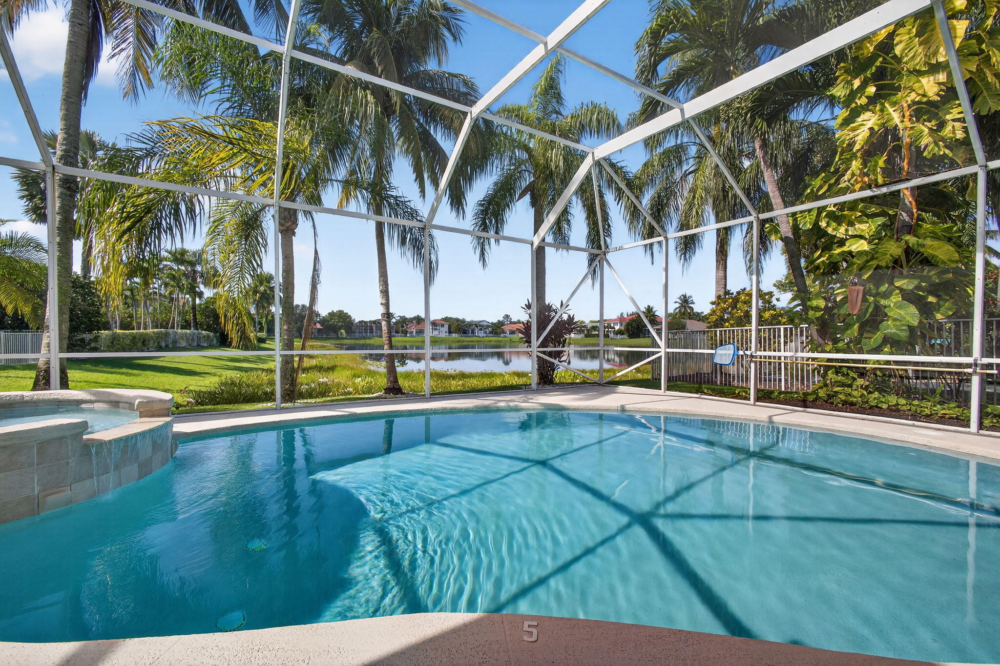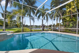2021 Roof (w/ a 10 yr warranty) Priced to Sell! Discover this stunning 5-bedroom, 3-bath triple-split floor plan featuring a screened pool, raised spa and long lake views. The spacious interior boasts 24x24 porcelain tile in common areas & brand-new bedroom floors. The gourmet all-wood kitchen shines w/ a double oven, high end granite counters & stainless steel appliances. Updated bathrooms mirror the kitchens' wood cabinetry & granite finishes. Enjoy privacy on the huge covered lanai. A circular drive & 3 car garage provide ample parking. Located in the Isles at Wellington, a guard-gated luxury community offers A+ Wellington schools & low HOA fees, 24-hour security, cable, high-speed internet, renovated clubhouse w/ fitness center, pools, pickleball, tennis & more! Virtually staged.