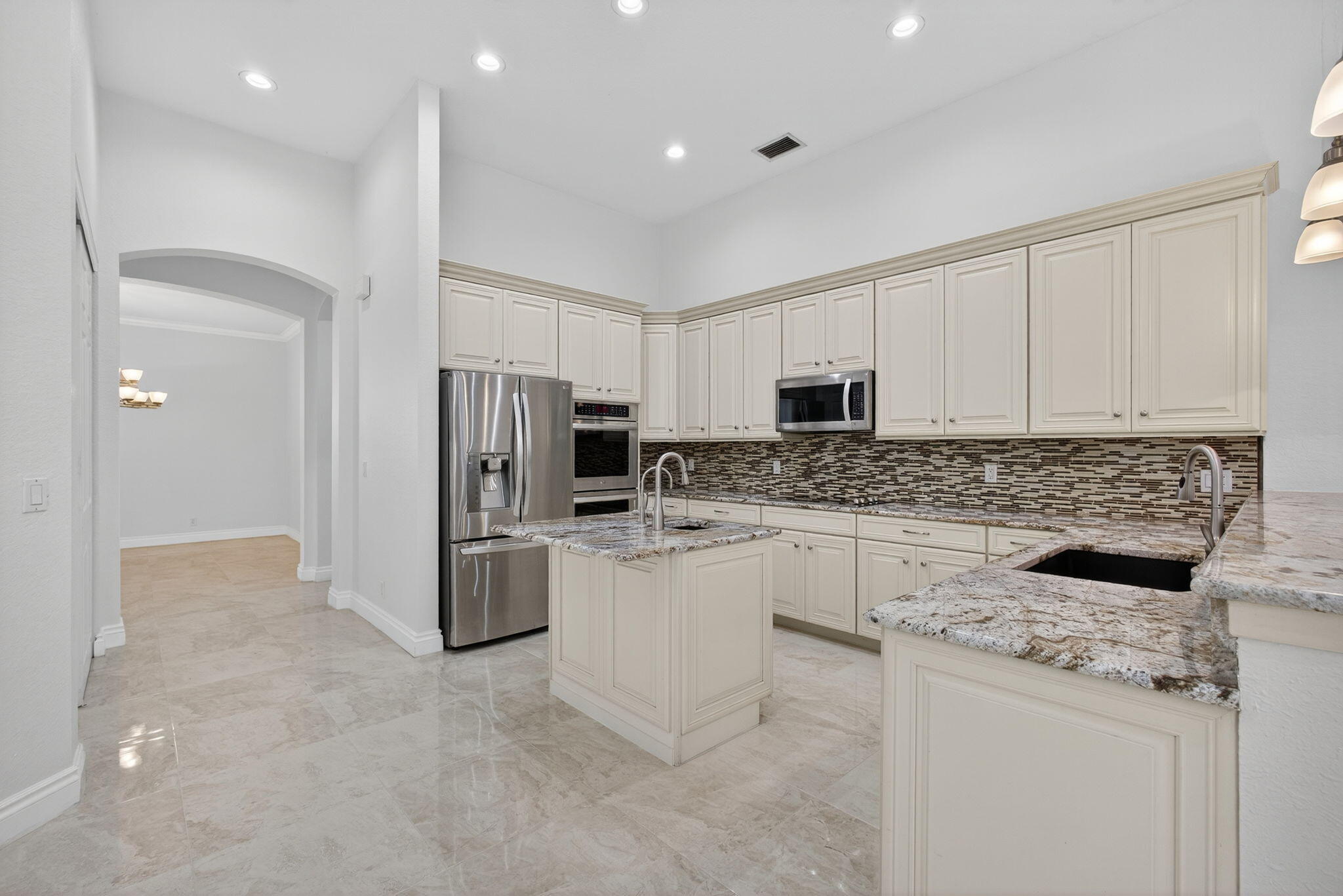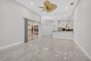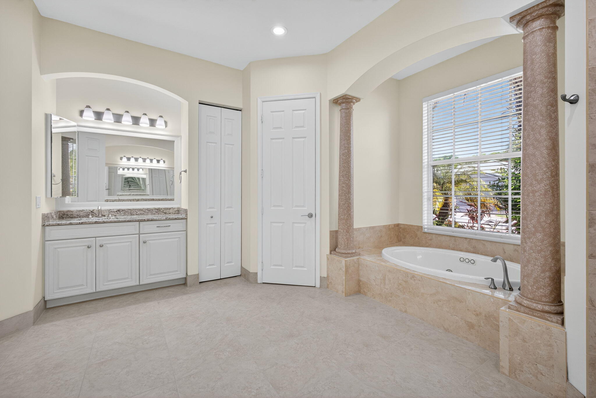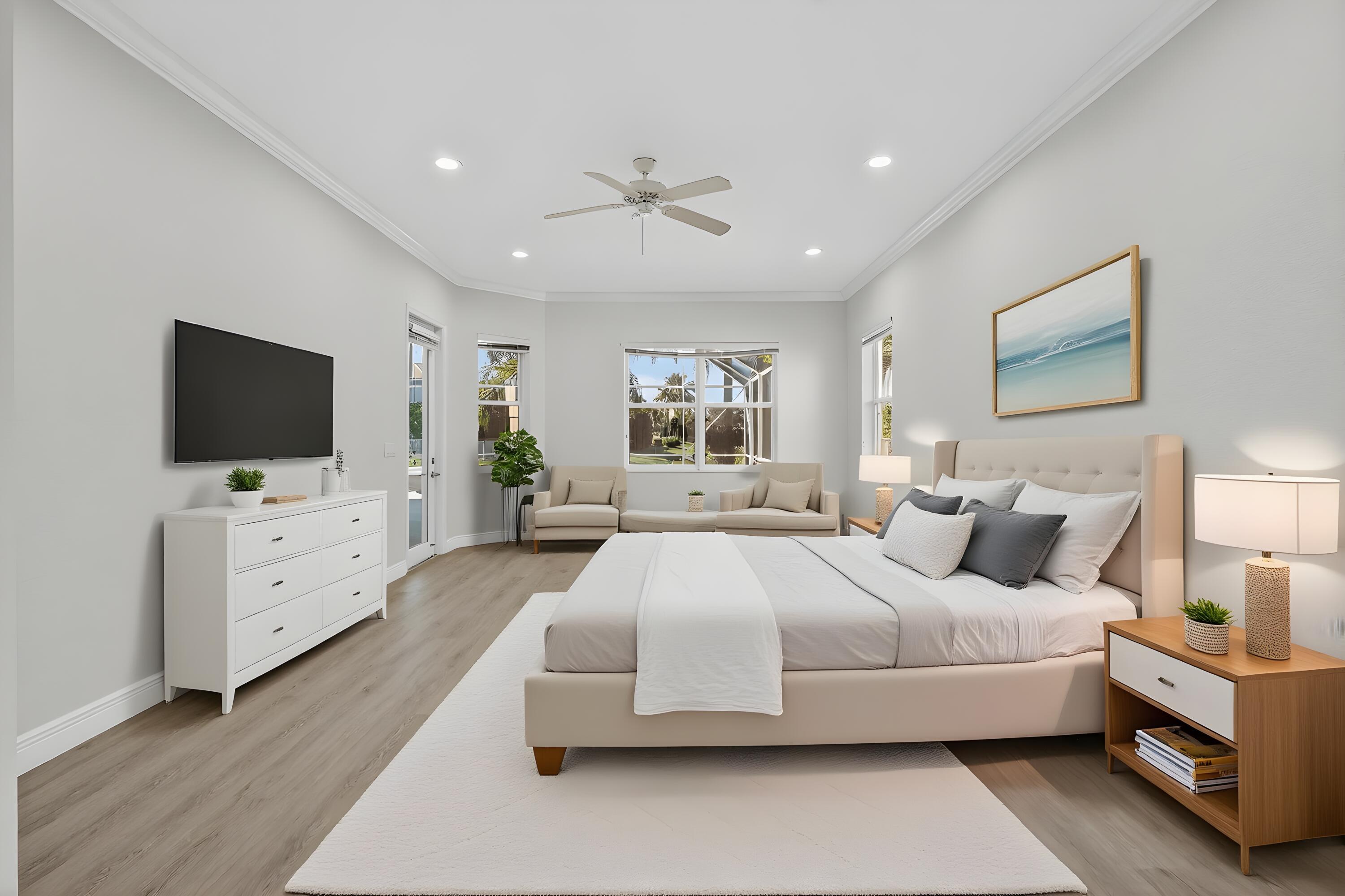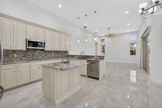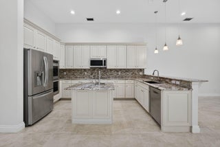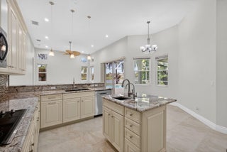 2021 Roof (w/ a 10 yr warranty) Priced to Sell! Discover this stunning 5-bedroom, 3-bath triple-split floor plan featuring a screened pool, raised spa and long lake views. The spacious interior boasts 24x24 porcelain tile in common areas & brand-new bedroom floors. The gourmet all-wood kitchen shines w/ a double oven, high end granite counters & stainless steel appliances. Updated bathrooms mirror the kitchens' wood cabinetry & granite finishes. Enjoy privacy on the huge covered lanai. A circular drive & 3 car garage provide ample parking. Located in the Isles at Wellington, a guard-gated luxury community offers A+ Wellington schools & low HOA fees, 24-hour security, cable, high-speed internet, renovated clubhouse w/ fitness center, pools, pickleball, tennis & more! Virtually staged.