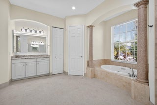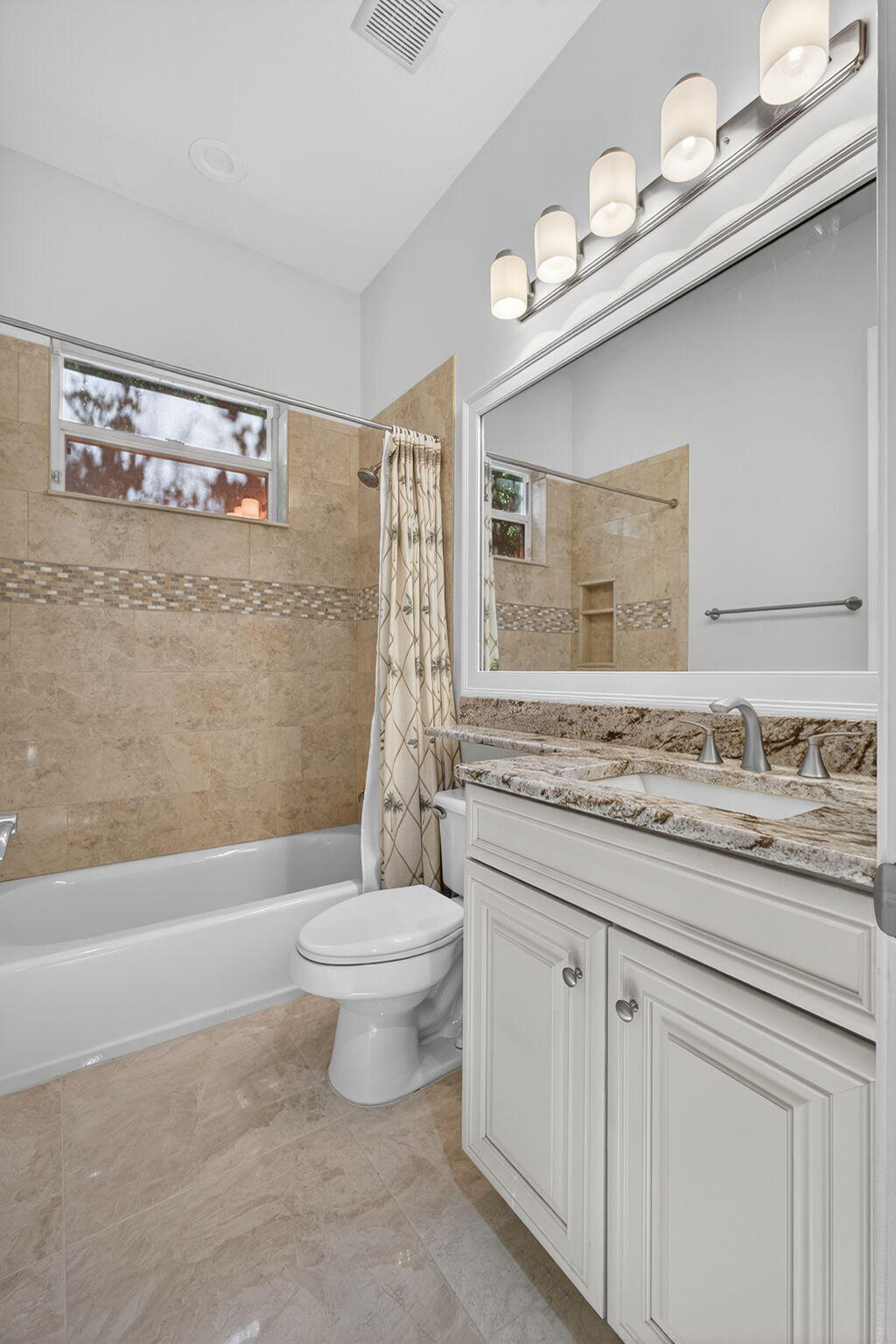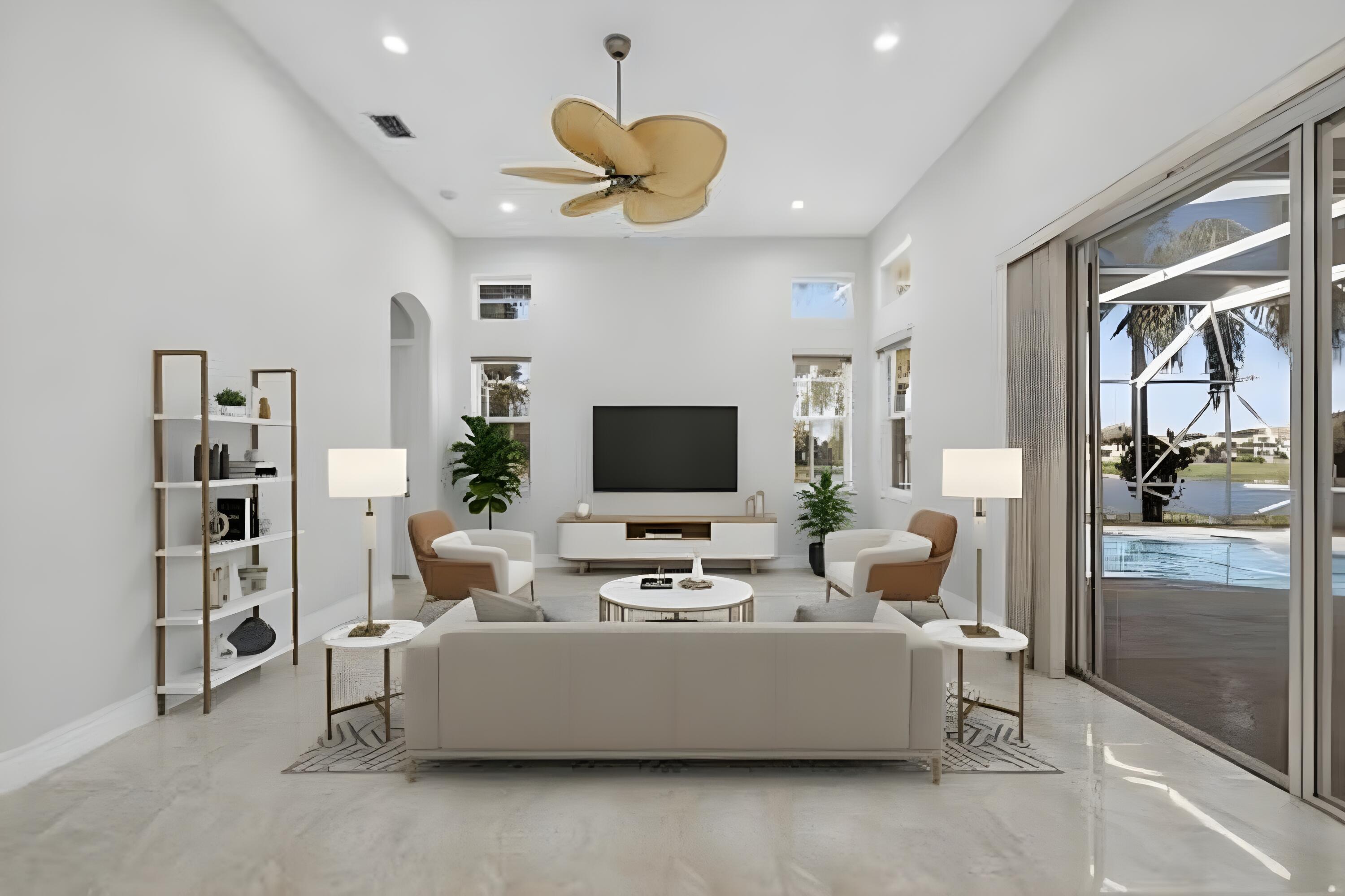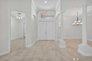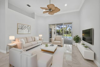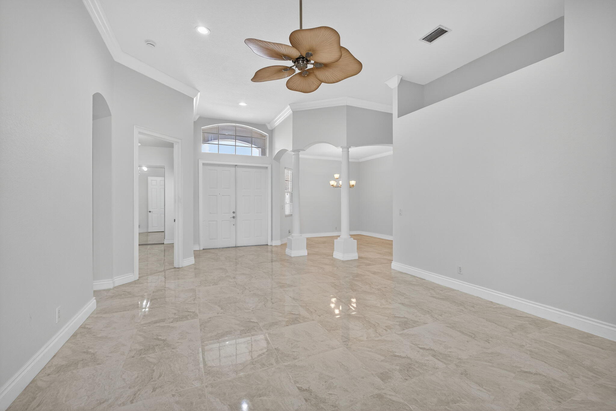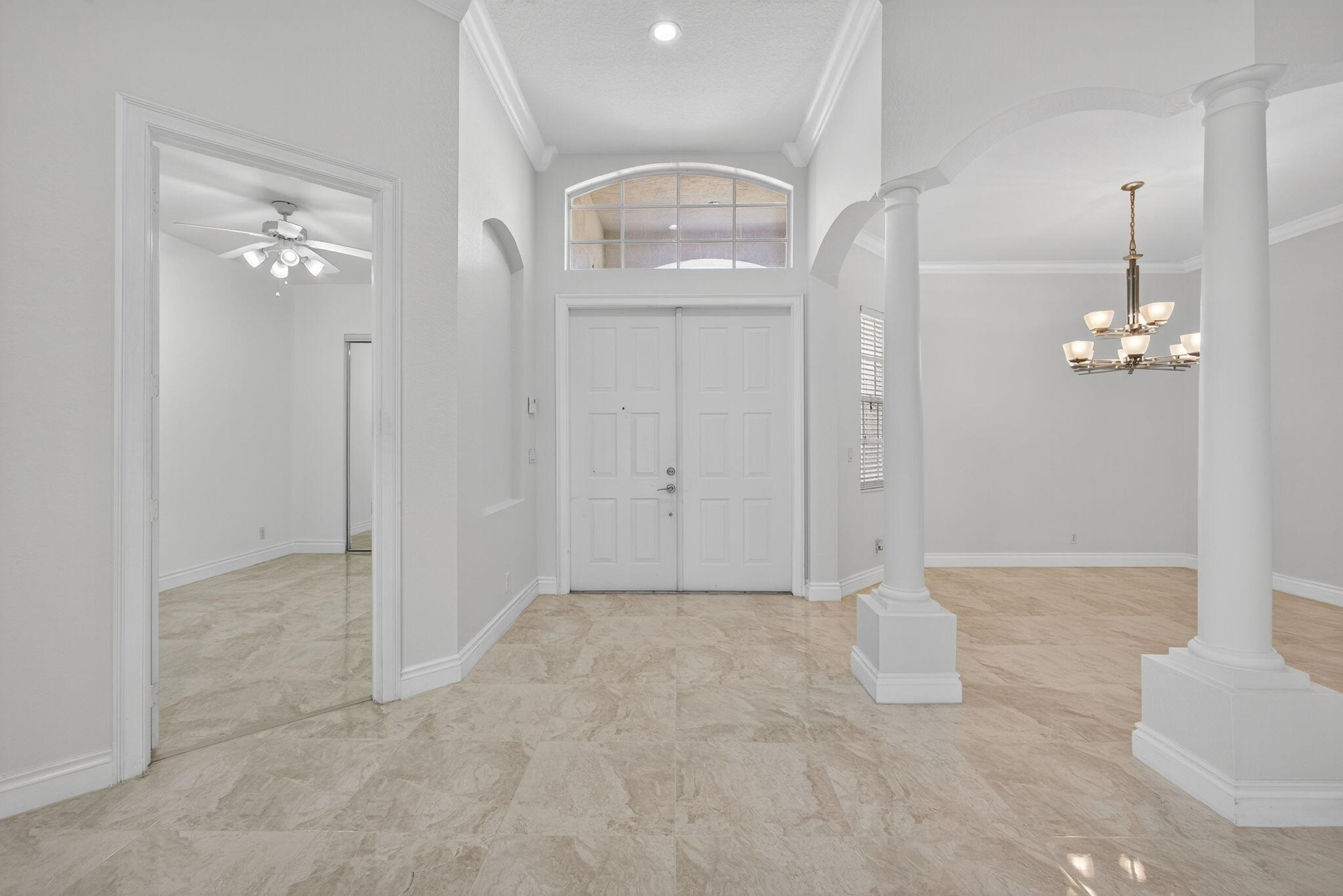2021 Roof (w/ a 10 yr warranty) Priced to Sell! Discover this stunning 5-bedroom, 3-bath triple-split floor plan featuring a screened pool, raised spa and long lake views. The spacious interior boasts 24x24 porcelain tile in common areas & brand-new bedroom floors. The gourmet all-wood kitchen shines w/ a double oven, high end granite counters & stainless steel appliances. Updated bathrooms mirror the kitchens' wood cabinetry & granite finishes. Enjoy privacy on the huge covered lanai. A circular drive & 3 car garage provide ample parking. Located in the Isles at Wellington, a guard-gated luxury community offers A+ Wellington schools & low HOA fees, 24-hour security, cable, high-speed internet, renovated clubhouse w/ fitness center, pools, pickleball, tennis & more! Virtually staged.