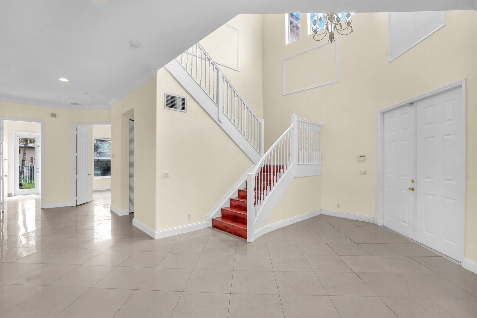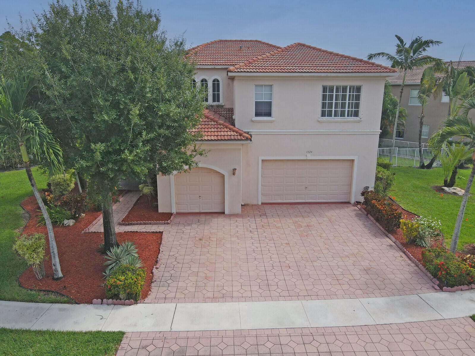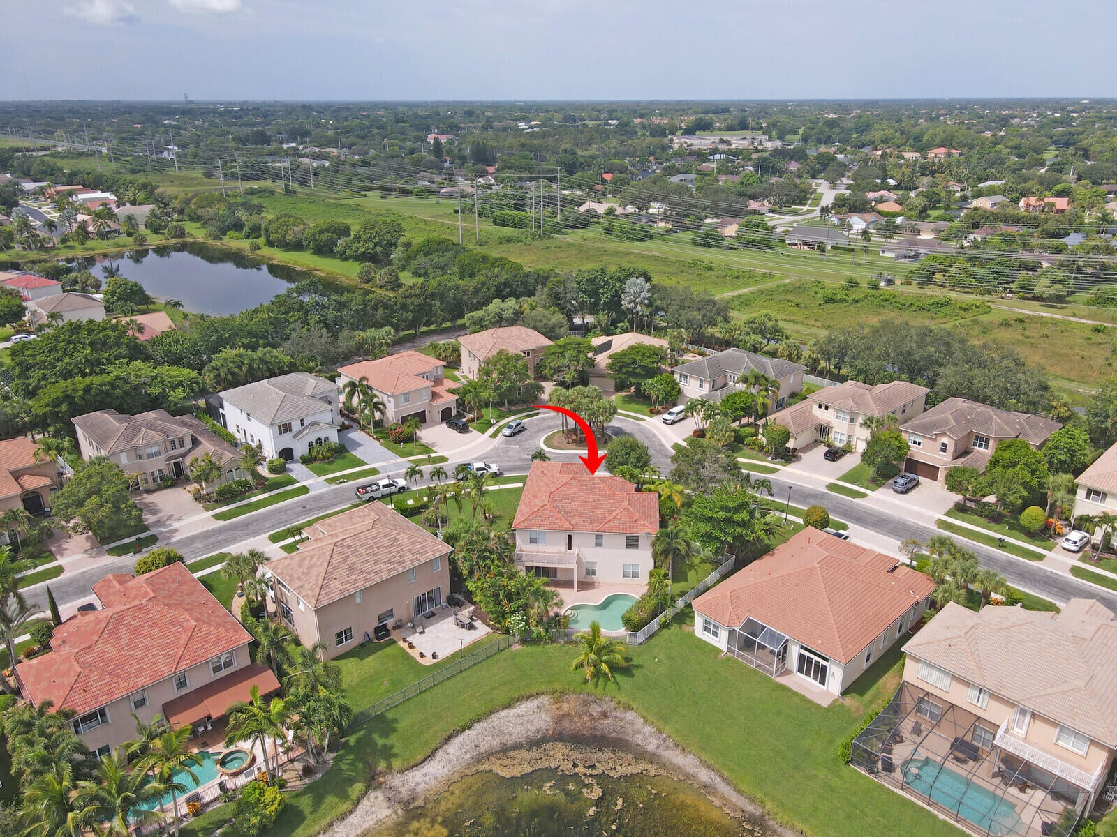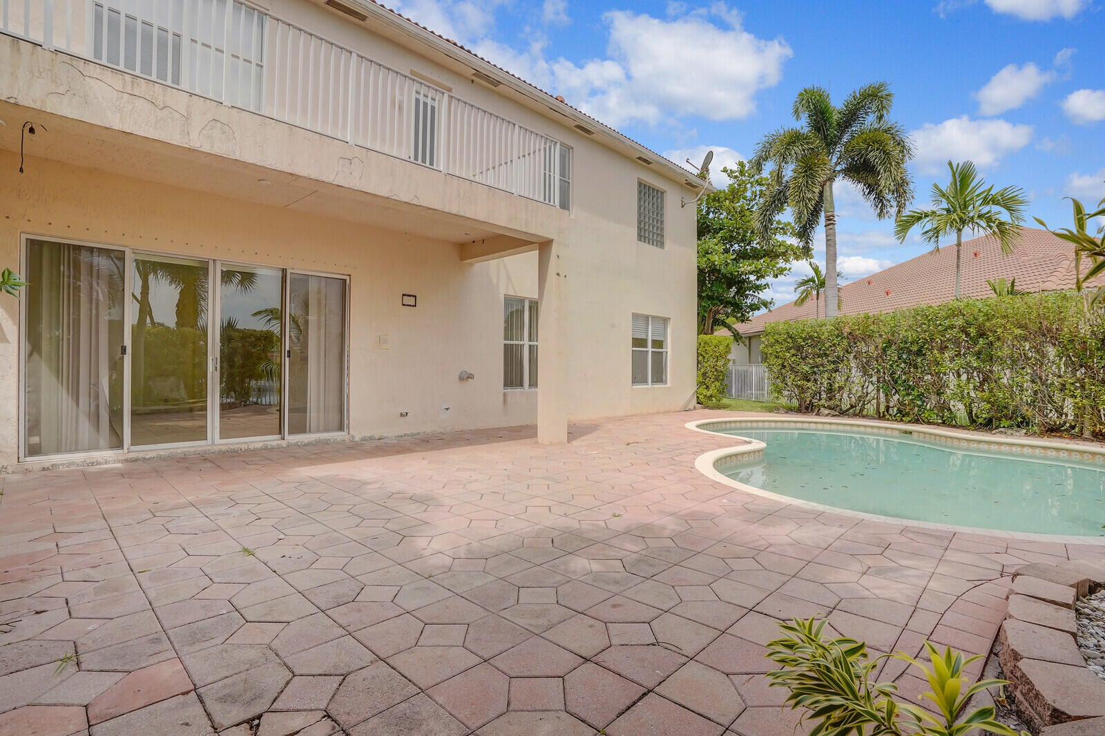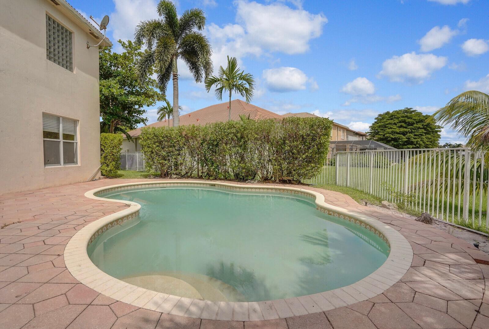 Discover this spacious and beautifully designed 5-bedroom, 4-bathroom Mediterranean-style home with a private pool located in the sought-after gated community of Black Diamond in Wellington. Offering 3,823 square feet of living space across two stories, this home features high ceilings and an open and functional layout with living areas and an office downstairs and all 5 bedrooms upstairs. Additionally, the upstairs features a large laundry room finished with built in cabinets. The property also includes a large 3-car garage and nice pond front lot. With a great central location in Wellington, residents have easy access to Florida's Turnpike, top-rated schools, shopping, and dining.Residents of Black Diamond enjoy a wide range of amenities including a resort-style pool, clubhouse, fitness center, tennis courts, playground, and a manned gate. Don't miss out on this great opportunity with lots of potential. Schedule your showing today and see all this property has to offer.