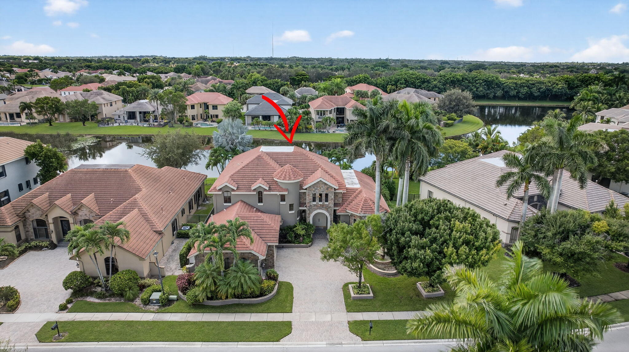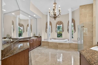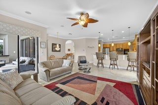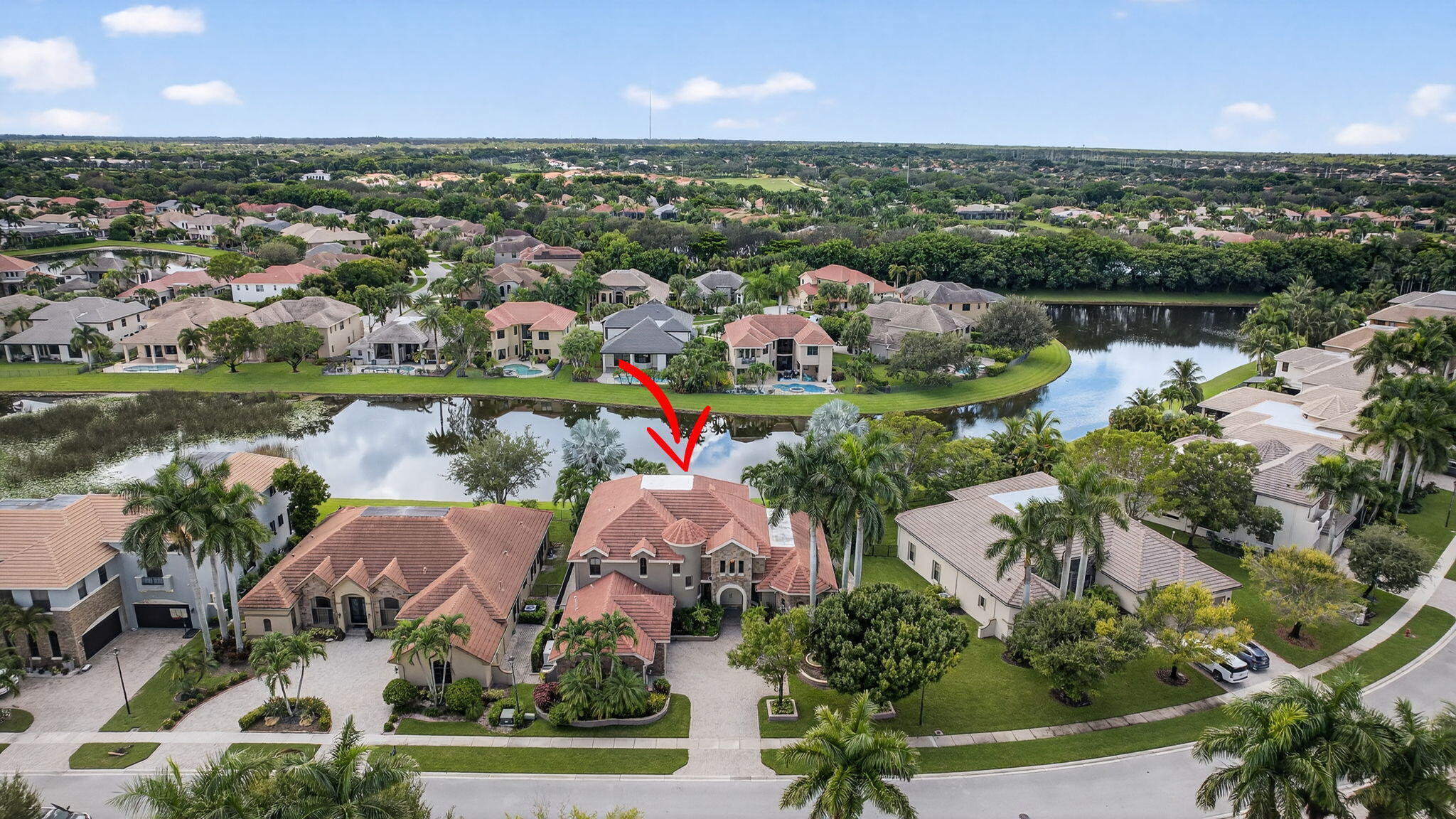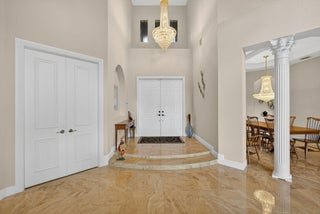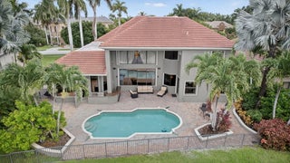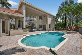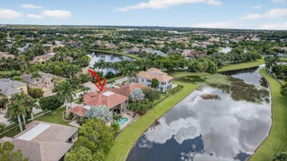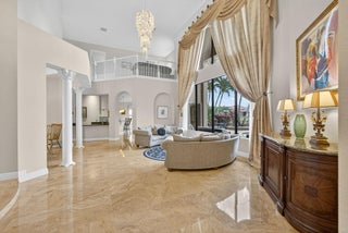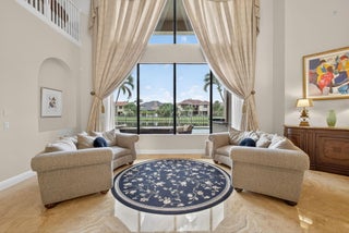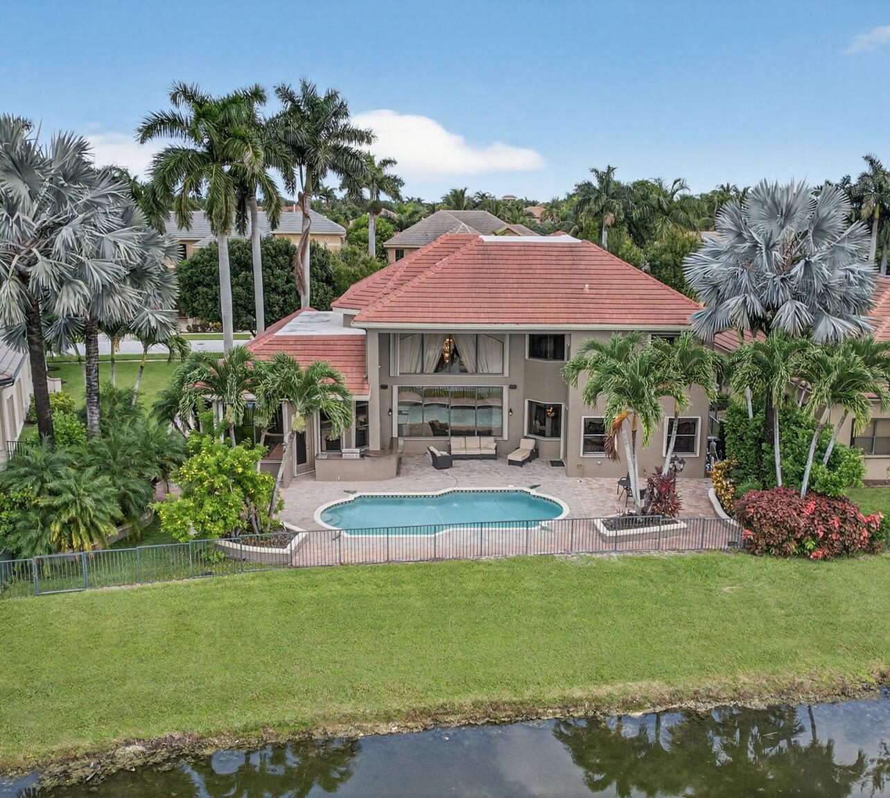Lakefront luxury! The moment you enter this exquisite estate, you are greeted by breathtaking views of the sparkling pool and tranquil lake through soaring windows that illuminate the formal living room. The elegant dining area and a custom built-in bar, create the perfect setting for both grand entertaining and everyday living. This expansive two-story residence offers more than 4,400 square feet of living space, thoughtfully designed with five bedrooms, four and a half bathrooms, and a three-car garage. The home exudes luxury, from polished Saturnia marble floors and designer chandeliers to the private office with custom built-ins. The first-floor primary suite is a serene retreat, Bright and spacious, it includes a private sitting area that looks out to the lake and garden. The elegantprimary bath is equally impressive, with dual vanities, a soaking tub, and a large walk-in shower, all designed to provide both comfort and privacy. At the heart of the home, the chef's kitchen feature a natural gas cooktop, premium appliances, and sweeping views of the pool and lake. Seamlessly connected to the family room, it is both functional and inviting the perfect space for gathering and creating memories. A convenient powder room and a private guest suite with its own ensuite bath complete the main level, offering the ideal accommodations for visitors or family. Upstairs, three additional bedrooms each offer comfort and style, including two that share a Jack-and-Jill bathroom and one with its own private ensuite. A versatile loft completes the upper level, providing additional space for a playroom, study, or lounging. Outdoors, your private resort paradise awaits. A sparkling pool shimmers against the backdrop of the lake, while an expansive patio and fully equipped summer kitchen invite alfresco dining and relaxed evenings under the Florida sky. Every detail has been considered, from newer A/C units and a whole-house natural gas generator to hurricane-impact windows at the front and accordion shutters at the rear, ensuring peace of mind as well as luxury. Set within the premier gated community of Versailles, this home offers not only elegance but also a coveted lifestyle. Residents enjoy access to a resort-style pool and hot tub, kiddie pool, playgrounds, tennis and basketball courts, and more. The grand clubhouse and state-of-the-art fitness center are being renovated to offer the most current equipment and convivences. Perfectly situated just minutes from equestrian venues, shopping, dining, A-rated schools, major highways, and Palm Beach International Airport, this location is as convenient as it is prestigious. This is more than a home, it is a rare opportunity to experience the perfect blend of luxury, functionality, and resort-style living in one of Wellington's most desirable communities.