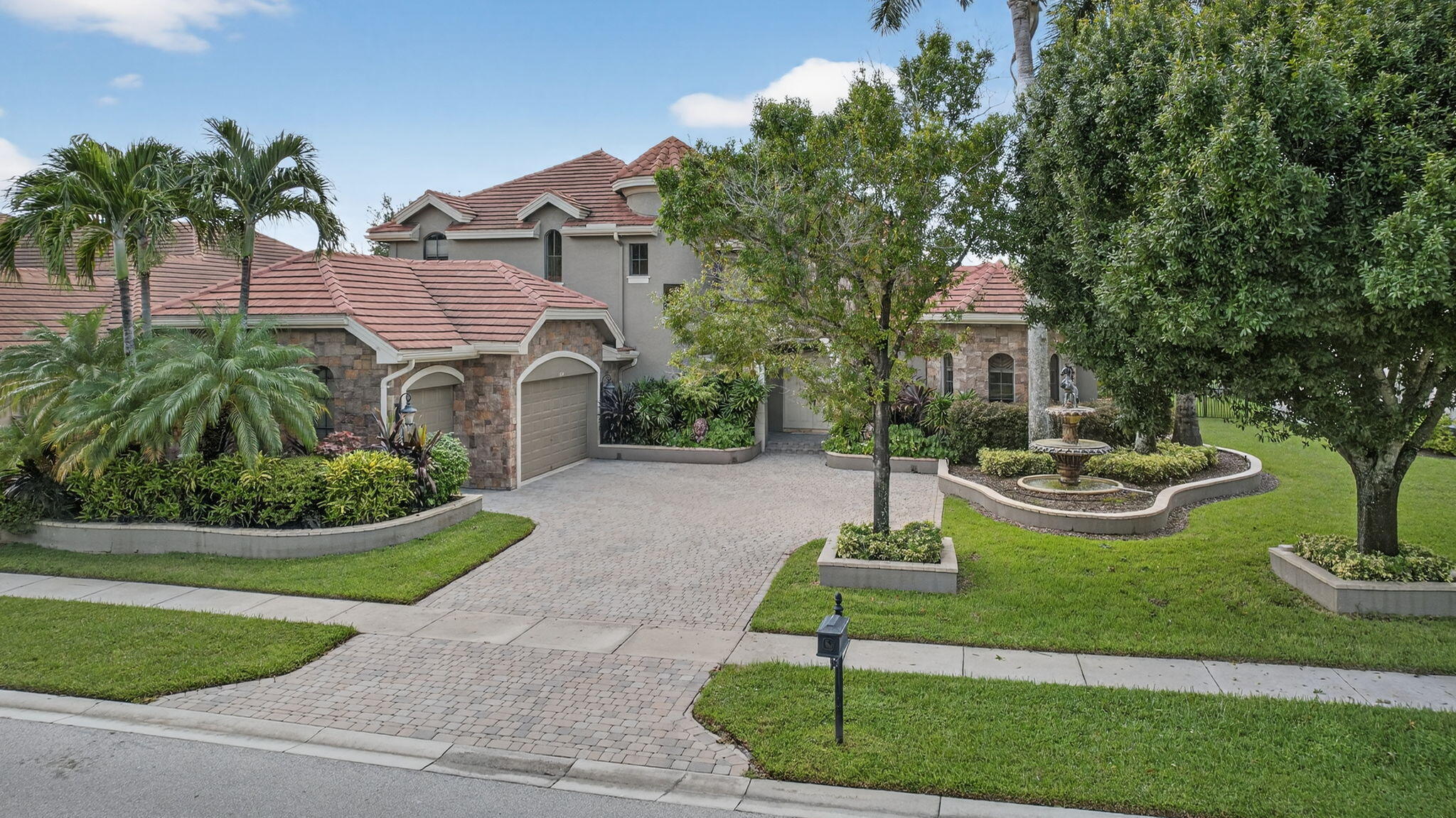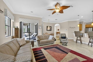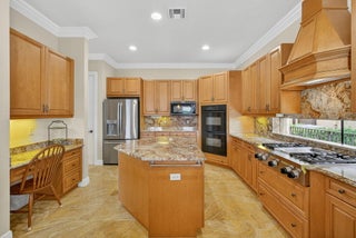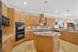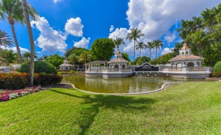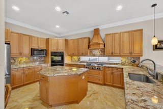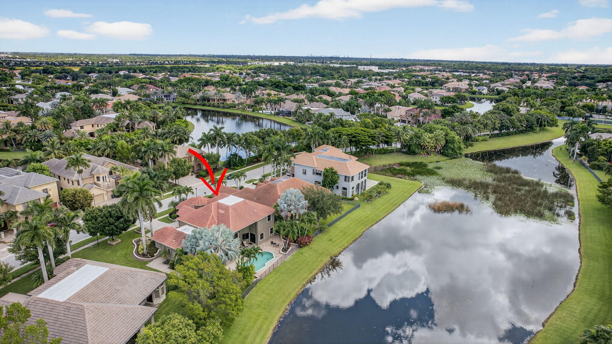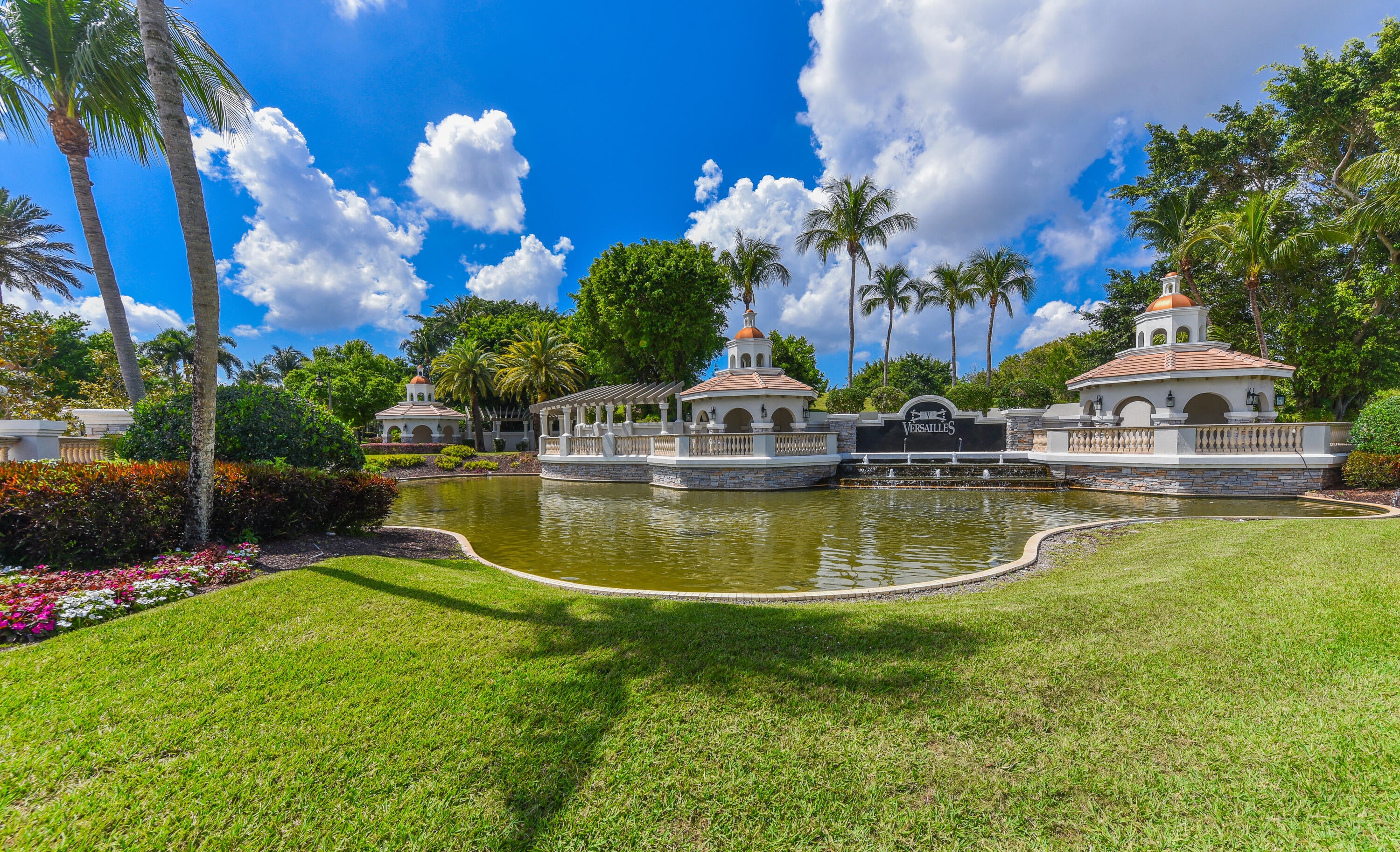 Lakefront luxury! The moment you enter this exquisite estate, you are greeted by breathtaking views of the sparkling pool and tranquil lake through soaring windows that illuminate the formal living room. The elegant dining area and a custom built-in bar, create the perfect setting for both grand entertaining and everyday living. This expansive two-story residence offers more than 4,400 square feet of living space, thoughtfully designed with five bedrooms, four and a half bathrooms, and a three-car garage. The home exudes luxury, from polished Saturnia marble floors and designer chandeliers to the private office with custom built-ins. The first-floor primary suite is a serene retreat, Bright and spacious, it includes a private sitting area that looks out to the lake and garden. The elegantprimary bath is equally impressive, with dual vanities, a soaking tub, and a large walk-in shower, all designed to provide both comfort and privacy. At the heart of the home, the chef's kitchen feature a natural gas cooktop, premium appliances, and sweeping views of the pool and lake. Seamlessly connected to the family room, it is both functional and inviting the perfect space for gathering and creating memories. A convenient powder room and a private guest suite with its own ensuite bath complete the main level, offering the ideal accommodations for visitors or family. Upstairs, three additional bedrooms each offer comfort and style, including two that share a Jack-and-Jill bathroom and one with its own private ensuite. A versatile loft completes the upper level, providing additional space for a playroom, study, or lounging. Outdoors, your private resort paradise awaits. A sparkling pool shimmers against the backdrop of the lake, while an expansive patio and fully equipped summer kitchen invite alfresco dining and relaxed evenings under the Florida sky. Every detail has been considered, from newer A/C units and a whole-house natural gas generator to hurricane-impact windows at the front and accordion shutters at the rear, ensuring peace of mind as well as luxury. Set within the premier gated community of Versailles, this home offers not only elegance but also a coveted lifestyle. Residents enjoy access to a resort-style pool and hot tub, kiddie pool, playgrounds, tennis and basketball courts, and more. The grand clubhouse and state-of-the-art fitness center are being renovated to offer the most current equipment and convivences. Perfectly situated just minutes from equestrian venues, shopping, dining, A-rated schools, major highways, and Palm Beach International Airport, this location is as convenient as it is prestigious. This is more than a home, it is a rare opportunity to experience the perfect blend of luxury, functionality, and resort-style living in one of Wellington's most desirable communities.