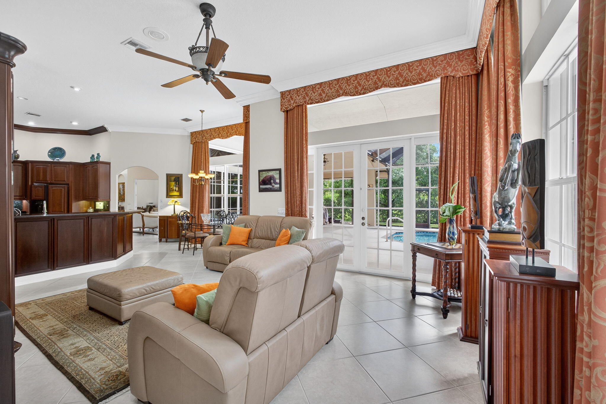 Custom built home on .62 acres with fruit trees, 4 bedroom 4 bath with den and HUGE bonus room (24x15) , with full bath en suite, good for theatre, workout room, or kids play room. (can build in large closet and be 5th bedroom) Oversize 3 car garage, large paver drive. Beautifully maintained by original owners. 3 a/c systems, pool and attached spa (pool heater inoperable and as-is, never used since new)An amazing home, first time offered for sale. This one will not disappoint the most discriminating buyer. Taking back up offers on this home due to several closings that must take place before this one can close.