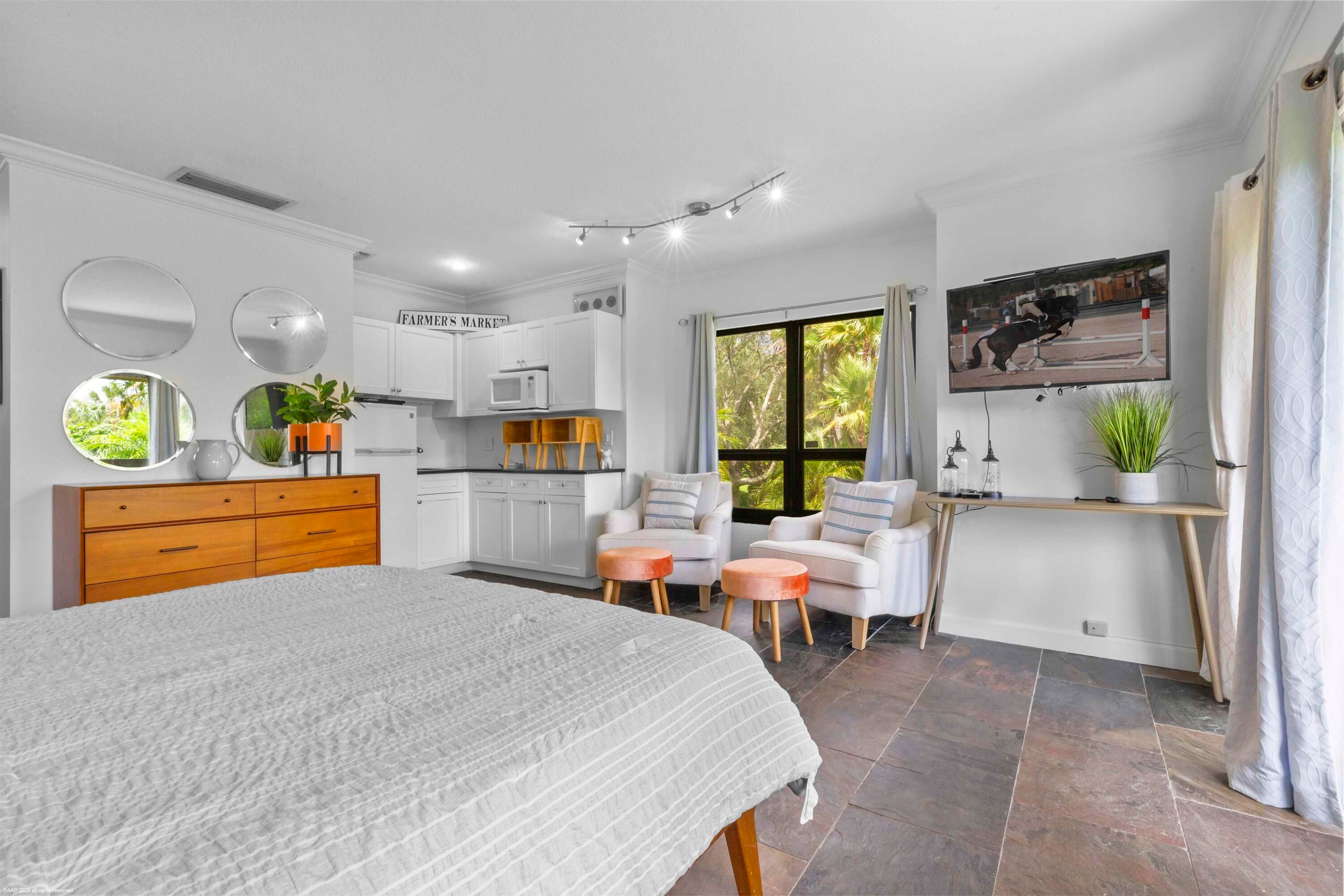 AVAILABLE FURNISHED AND TURNKEY!! Fully renovated in 2022, this 2-bedroom, 2-bathroom apartment is designed with flexibility and rental potential in mind! The floor plan offers a 1-bedroom/1 bath unit with a full kitchen, plus an adjoining studio with a full bath and a mini kitchen, each with its own entrance & washer and dryer. Rent out one side and stay in the other, or use it as one apartment by simply unlocking the door that's in-between! The residence is located on 2nd floor and showcases elegant slate and ceramic tile flooring, updated appliances, and modern furnishings throughout. A screened-in porch provides a peaceful setting with serene views, while residents also enjoy access to the community pool that's just steps away.Located in Palm Beach Polo Club, which is one of the most luxurious communities in Wellington that offers security patrol and 24/7 manned gate. With only a few minutes to Wellington International, Global Dressage and the polo scenes, this is a great place to call home for the season!