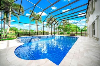 Welcome to Olympia! Complete make over on this estate home. 5 bedroom, 5.5 bath with office/den, huge flex room and loft area. Multiple built-ins throughout. Top-of-the-line finishes. Enormous pool with marble deck and summer kitchen. Several smart features. Complete air conditioned gym. Very unique property in premium resort-style Wellington gated community. Will not last!