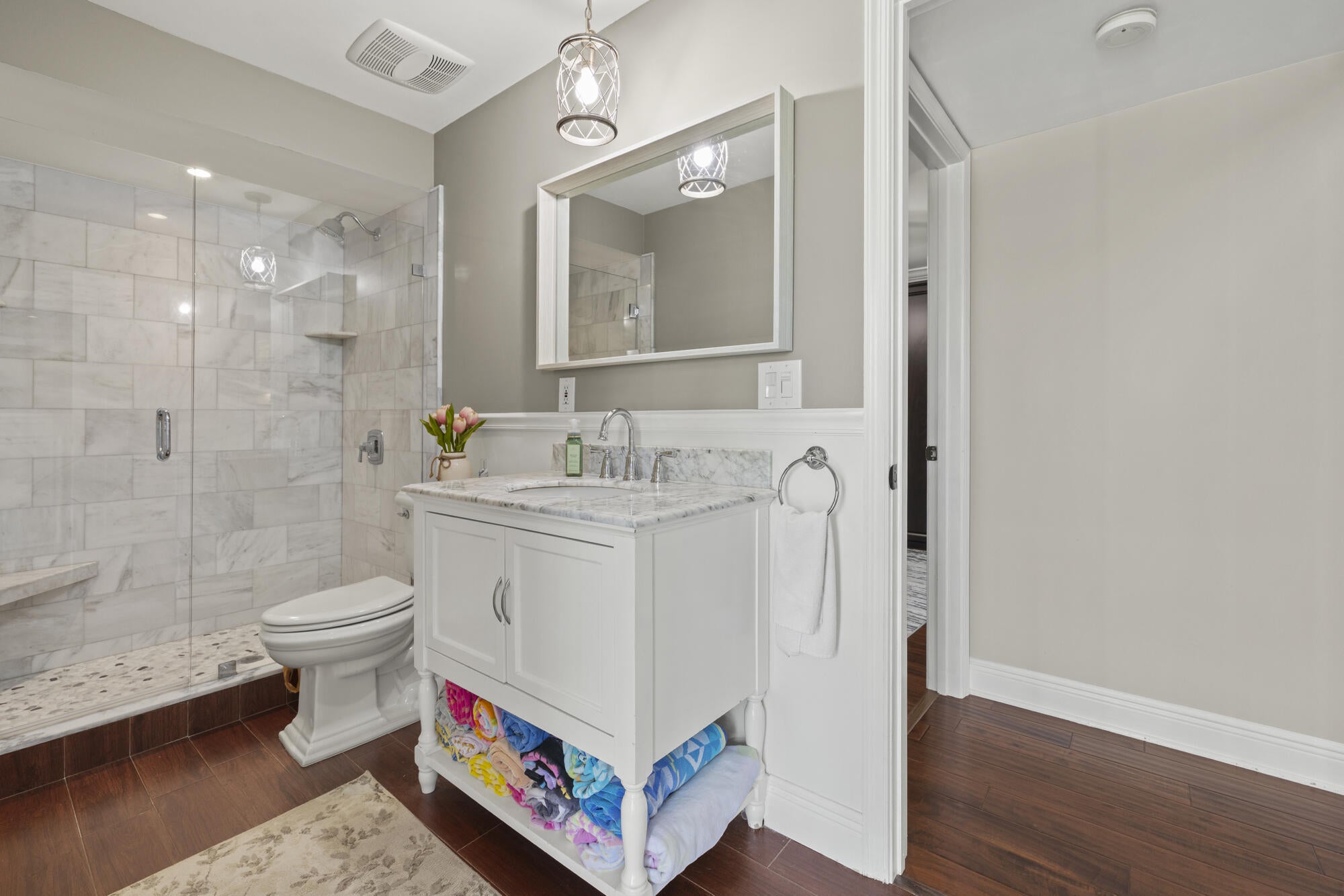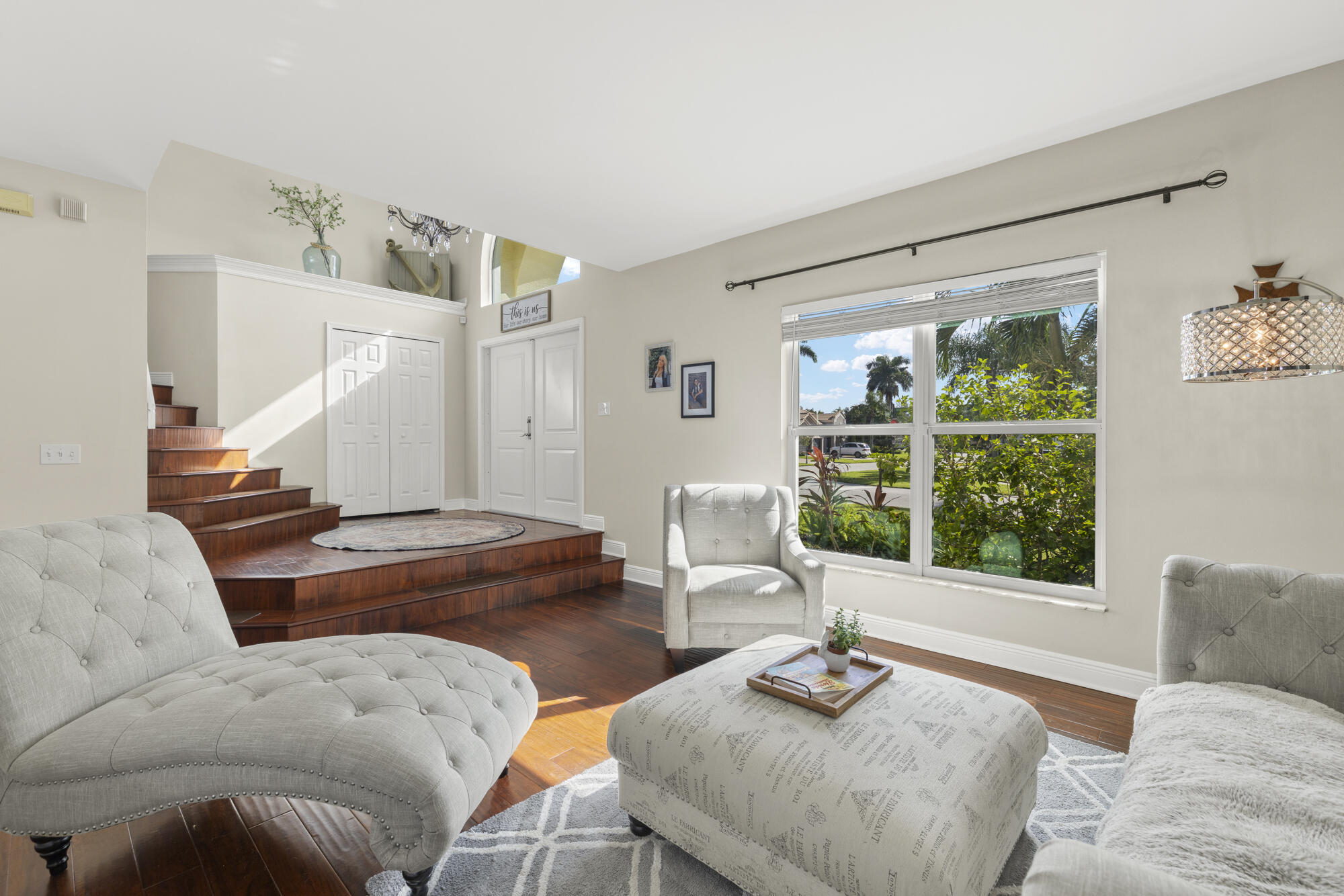 Welcome to this beautifully renovated home in gated Hidden Creek.The kitchen impresses with top-of-the-line Latte cabinetry, extra storage, generous counter space, & high-end finishes throughout. The soaring ceilings & open-concept allow for easy flow between formal,living & dining room.Large laundry room w/extra storage. The lower level features a bedroom w/Murphy bed & full bath perfect for guests or in-laws,.Upstairs, the expansive primary suite offers a cozy sitting area, and you'll find three additional bedrooms plus loft ideal as a office or lounge.Step outside to your heated pool, fully screened patio with fenced yard & covered patio that is a perfect oasis for relaxation & entertaining. All doors and windows are hurricane IMPACT glass. ''A'' rated Binks schools walking distance.