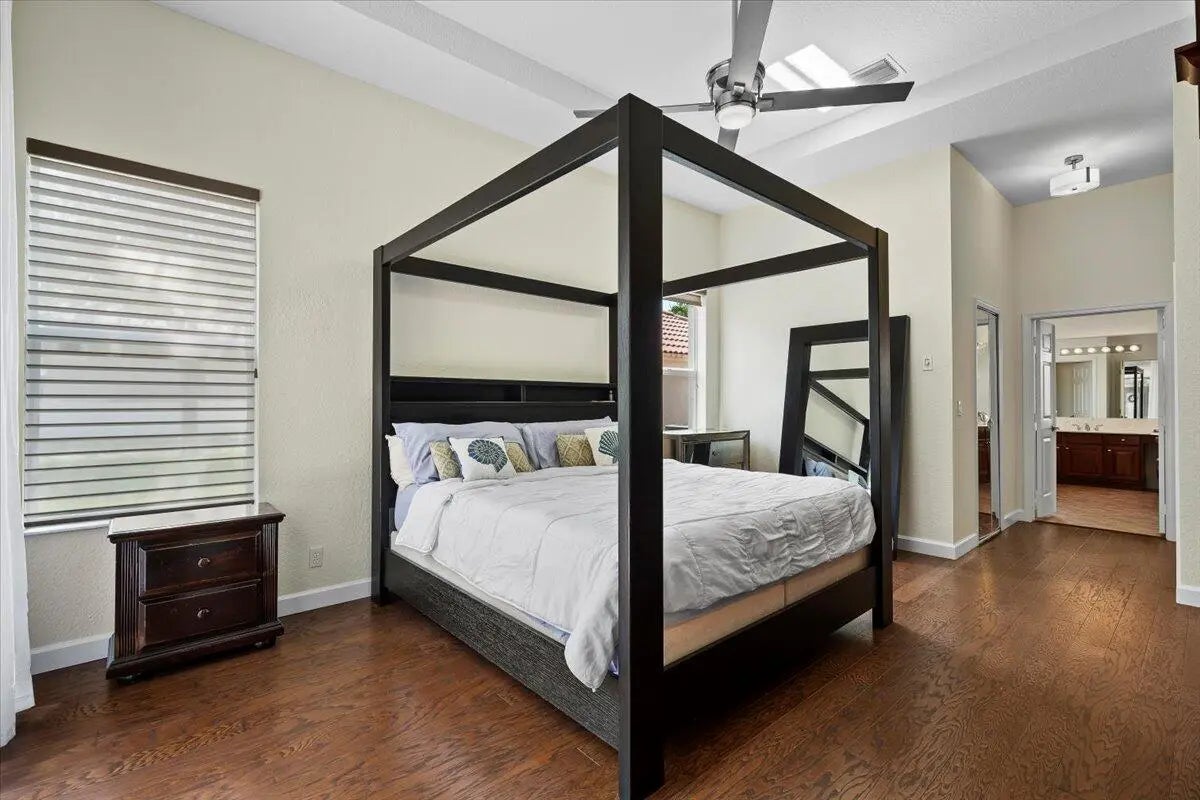 Live the Palm Beach Gardens lifestyle in this gated, low-maintenance home featuring a screened paver patio, evening guard service, and investor-friendly rental flexibility.Welcome home to this well-maintained residence in a desirable gated Palm Beach Gardens community. This light-filled home offers a functional split floor plan with inviting living spaces and thoughtful features throughout. French patio doors open to a screened paver patio--perfect for relaxing or entertaining while enjoying the Florida lifestyle year-round.The home features hurricane shutters and panels, and plantation shutters in the guest bedrooms, providing comfort and peace of mind. The original roof has been well maintained, and the property reflects pride of ownership.