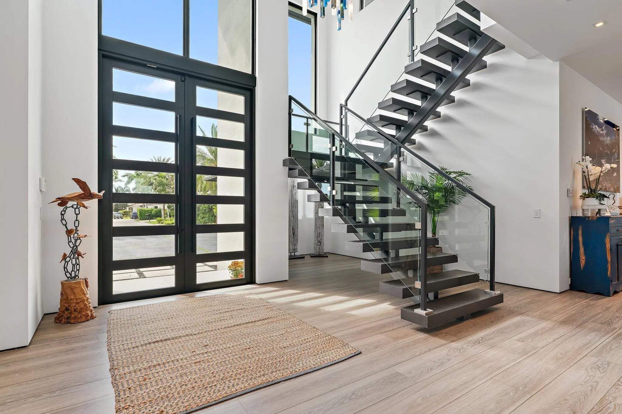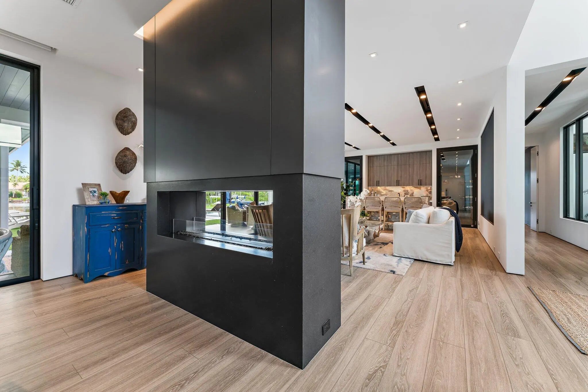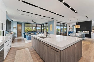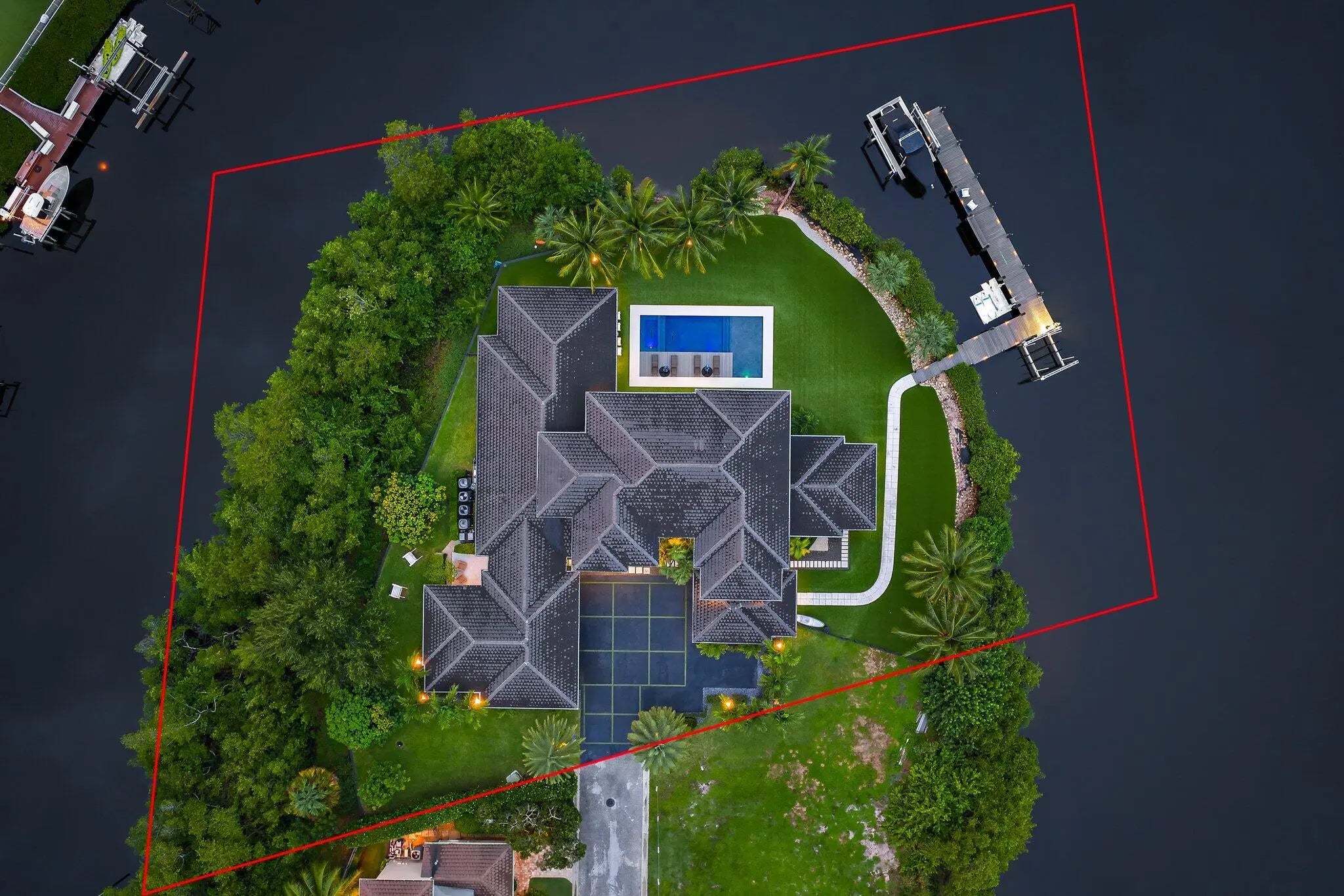 Located on a peninsula lot of 1.33 acres with 500 feet of deep waterfrontage on three sides with no fixed bridges, this truly is one of the finest waterfront properties in our area. Custom built in 2021 by Ocean Blue Custom Homes, this signature estate in the luxury, gated community - The Islands of Jupiter, meets the demands of the most sophisticated clients. Floor to ceiling walls of glass brings the outside in, offering a ''light and bright'' texture to a modern coastal interior palette. Views to the pool with spa, summer kitchen with bar, dock with two lifts, professional landscaping, and expansive backyard with endless artificial turf; all define a dreamlike setting for a family retreat. The current owner made the following additions/upgrades within the past 12 months: