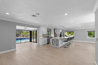 Located on a quiet cul-de-sac in one of Wellington's most desirable neighborhoods, this renovated 4-bedroom, 2.5-bath home sits on an oversized corner lot. The open-concept layout features a chef's kitchen with an oversized island, modern finishes, and stainless steel appliances--ideal for both everyday living and entertaining.The spacious primary suite includes a walk-in closet and a well-appointed en-suite with dual vanities. Enjoy complete privacy in the backyard with a covered patio and sparkling pool. Additional features include a sunroom, ample closet space throughout, a two-car garage, and generous driveway parking. A rare opportunity to own a move-in ready home in a premier Wellington location.