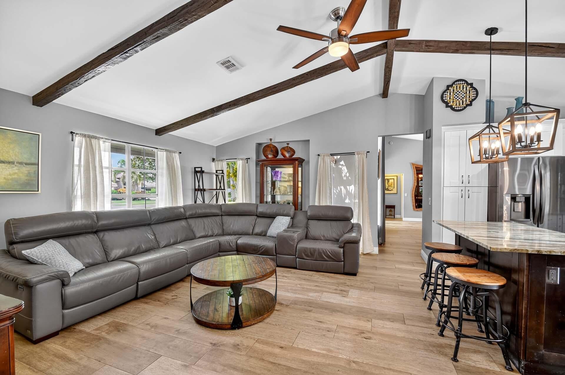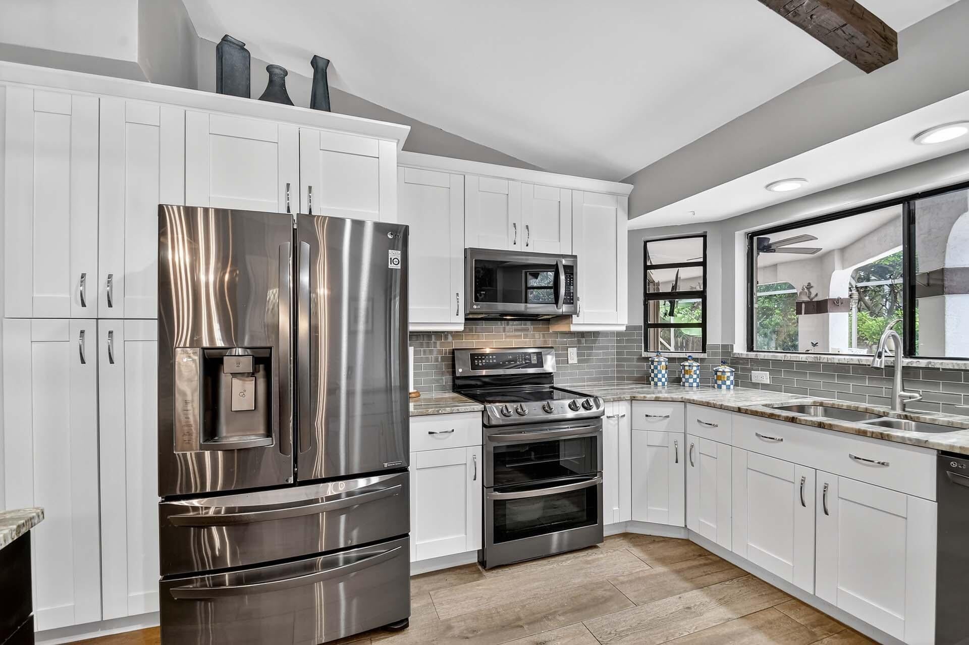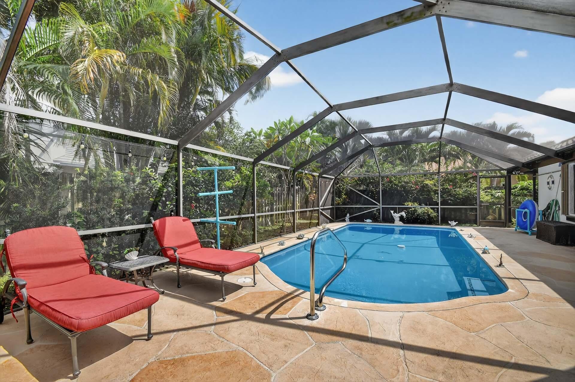 Tastefully renovated 3-bed, 2-bath split-plan home in Wellington's premier NO-HOA neighborhood! Features soaring cathedral ceilings, grand living room, and a bright open kitchen with a breakfast nook, LG appliances, granite countertops, and custom cabinets. Luxurious primary suite with spa-like bath: clawfoot tub, marble accents, California Closets.Western-exposure backyard boasts stunning sunsets, resurfaced pool (2021), new screen enclosure (2024), and oversized lanai. Upgrades: Italian porcelain floors, updated baths, hurricane doors/shutters, A/C (2019), water heater (2023), pool pump (2024).Minutes from Polo fields, rec centers, shopping, dining, and A-rated schools. Stunning move-in-ready gem with modern updates! Investor-ready rental.