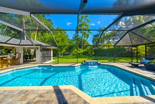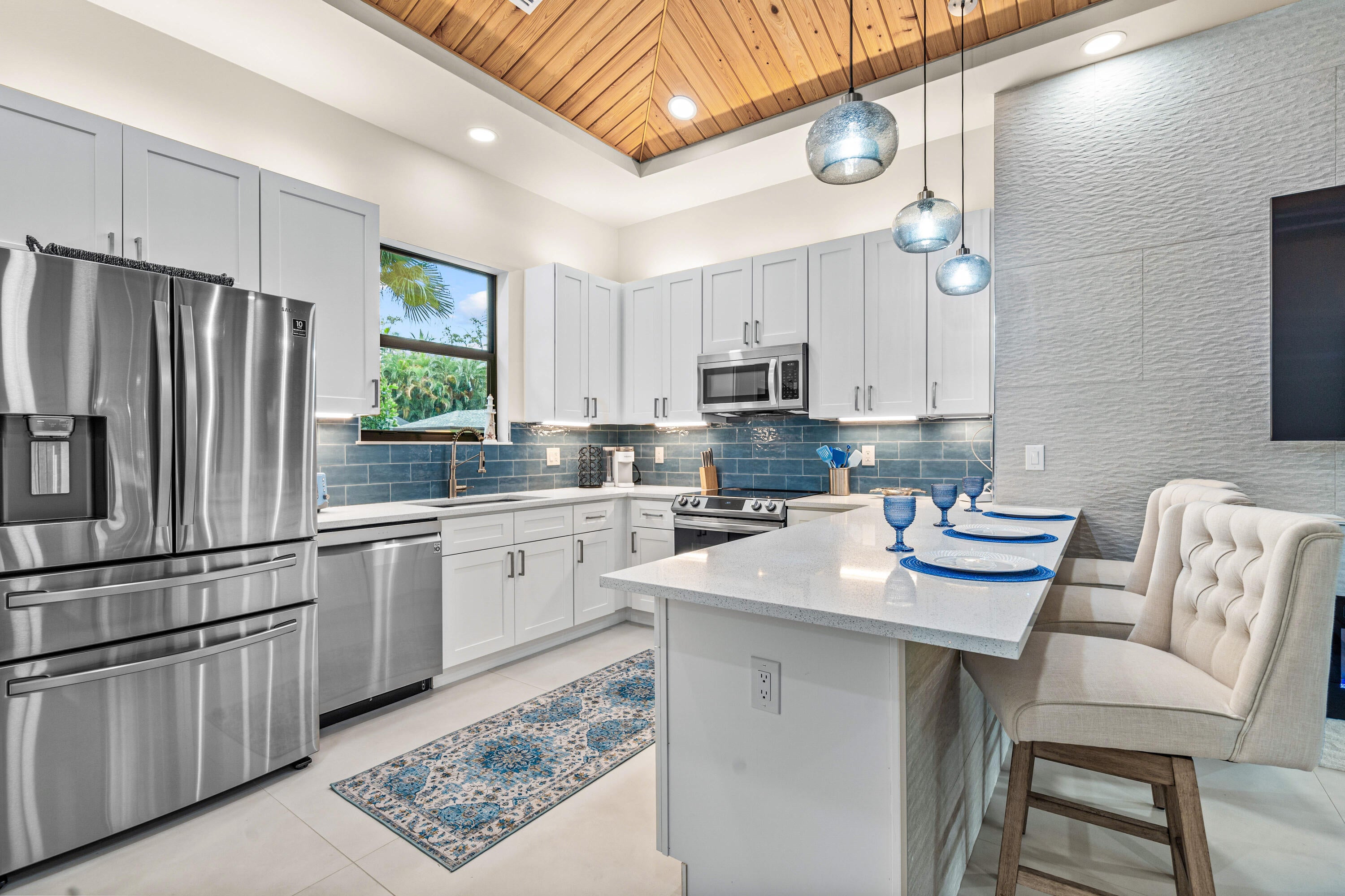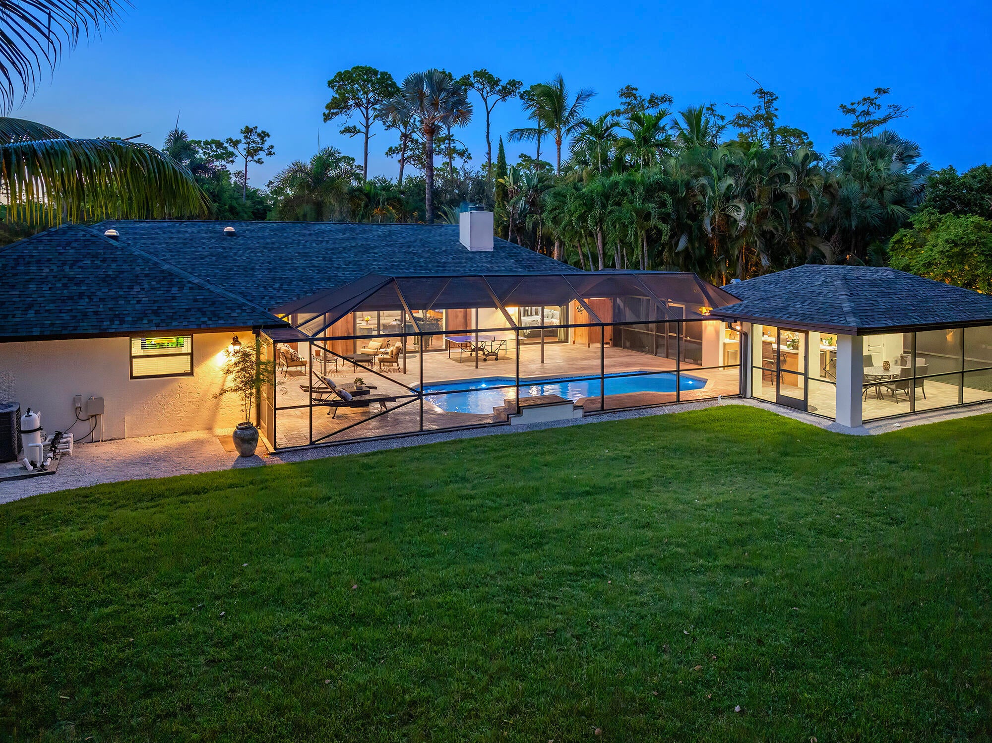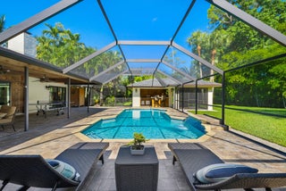 Private Wellington Estate with Resort-Style Living & Newly Built Guest HouseDiscover this completely remodeled single-story ranch estate, set on a lush, fenced acre in the heart of Wellington--just minutes from the Winter Equestrian Festival, International Polo Club, Palm Beach International Airport, and the island of Palm Beach. Offering nearly 4,000 AC sq. ft. of living space (main home + guest house) plus 1,500 sq. ft. of screened-in outdoor living, this property combines elegant craftsmanship with resort-style amenities.Inside, the open-concept great room is enriched with custom millwork, solid interior doors, crown molding, and Brazilian walnut flooring, creating timeless warmth and sophistication.Expansive sliding glass doors connect seamlessly to the outdoor living areas. The chef's kitchen features quartz countertops, stainless steel appliances, and custom cabinetry, designed with both form and function in mind. The split floor plan includes a private owner's suite with spa-style bath, soaking tub, and rain shower, while three additional bedrooms and two guest baths provide comfort for family and friends. Lifestyle amenities include: Saltwater pool within a screened enclosure. Expansive lanai with western cedar and cypress ceiling, fans, and multiple lounging/dining spaces. Cabana with summer kitchen & bar for entertaining. Tropical zen garden with hot tub, fire pit, and winding stone pathways. Custom outdoor LED landscape lighting, showcasing the tropical grounds at night. Finished, air-conditioned garage with exercise equipment and media setup. Dedicated office with built-in workstations and 1 gigabit high-speed internet. Tesla charging station, professional landscaping, fencing, and complete privacy. Newly Built Guest House (Dec 2022) Privately positioned away from the main residence, the 2-bedroom, 2-bath guest house is a showcase of modern design and durability: Soaring 10'+ ceilings with an inverted hip cypress ceiling in the main living/kitchen area. Expansive open-plan design with a large kitchen and living space. 48x48 porcelain tile flooring and solid 8' interior wood doors. Luxury bathrooms with oversized porcelain showers and walk-in closets. Constructed to the highest hurricane standards, with spray foam insulation for energy efficiency. Distinctive tower entryway for a striking first impression. Together, the main home and guest house create a turnkey Wellington estate, blending craftsmanship, privacy, and modern luxury with flexible living for multi-generational use, staff, or guests.