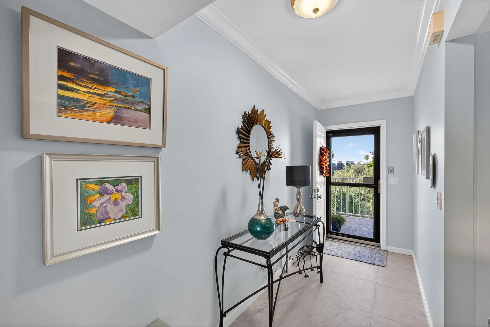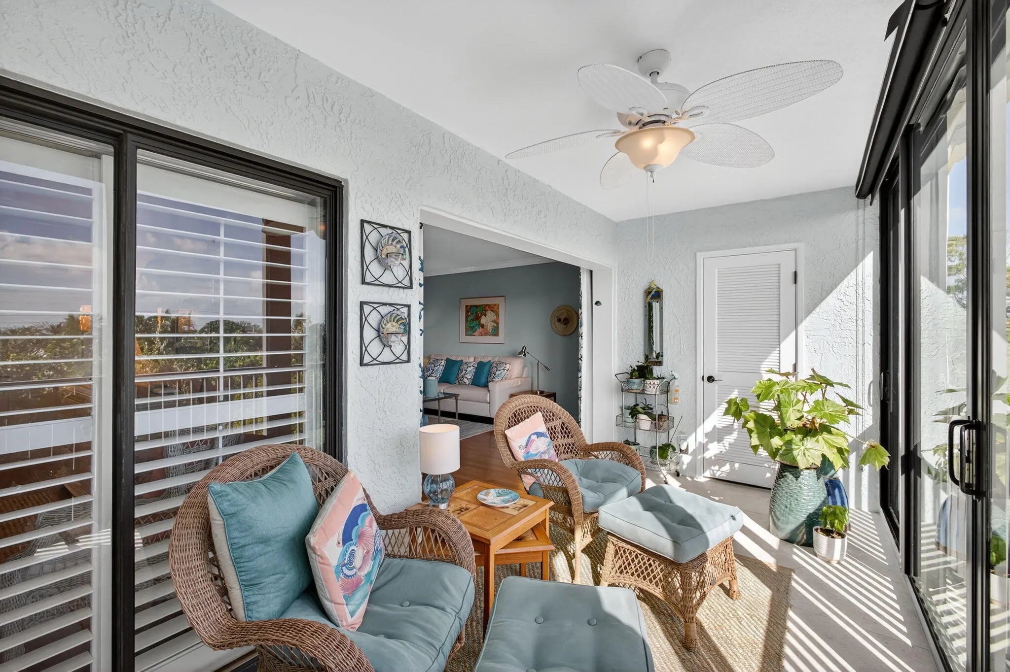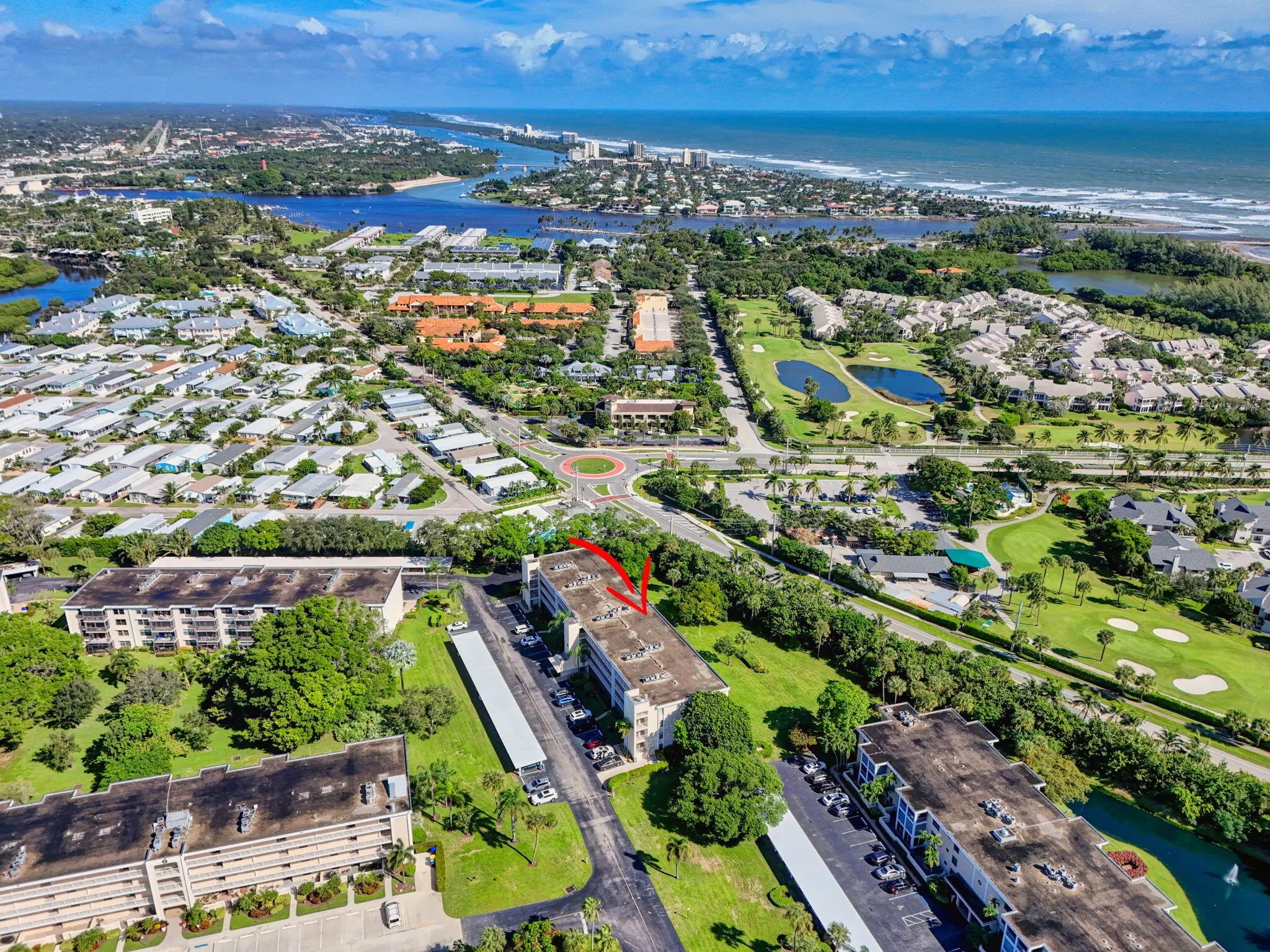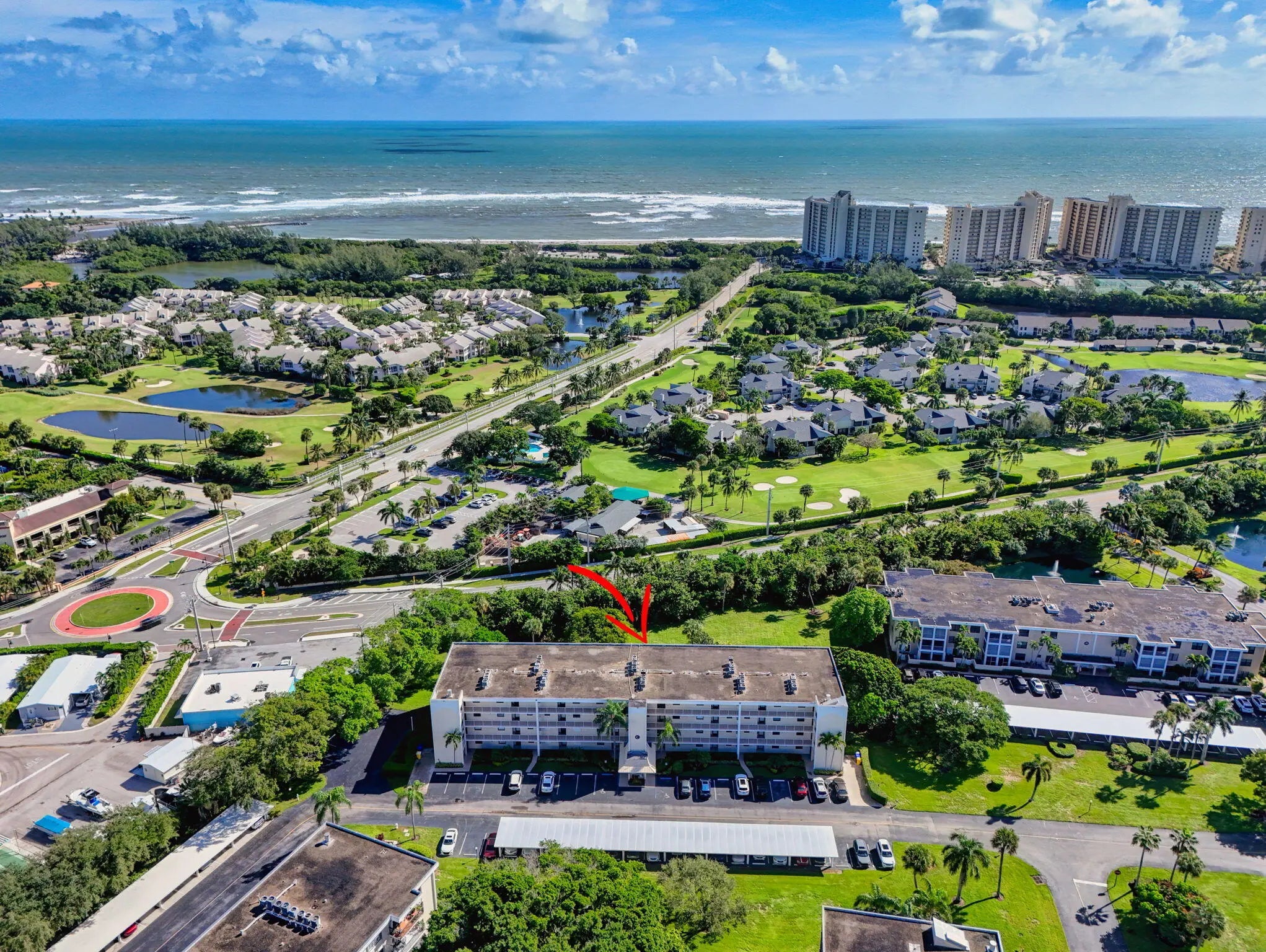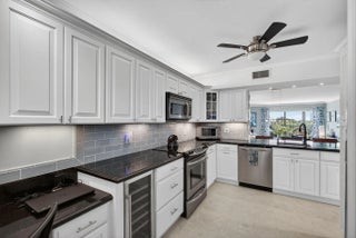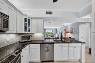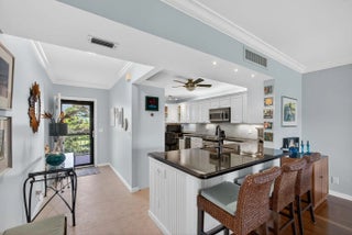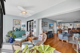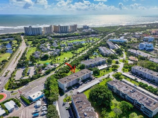MOVE IN READY-NEW A/C-ALL IMPACT GLASS! Walk to the turquoise waters of Jupiter Beach from the beautifully updated penthouse condo in the seaside community of Ocean Parks. Relax on the screened & impact glass enclosed lanai & enjoy the constant ocean breezes. Lovely redesigned kitchen offers an open floor plan with built-in office area, SS appliances & custom backsplash. Both baths updated w/ walk-in showers, tiled floors, new vanities, lights, fixtures & mirrors. Custom walk-in closet in primary; closet organizer in guest; all wood & tile flooring; impact glass complete; plantation shutters; crown molding; custom shades & storage closet in sunroom; ceiling fans; Carport ''BB''; NEW A/C 2025 & water heater 2024; full sized W/D. Walk to golf, parks & waterfront restaurants & shops.