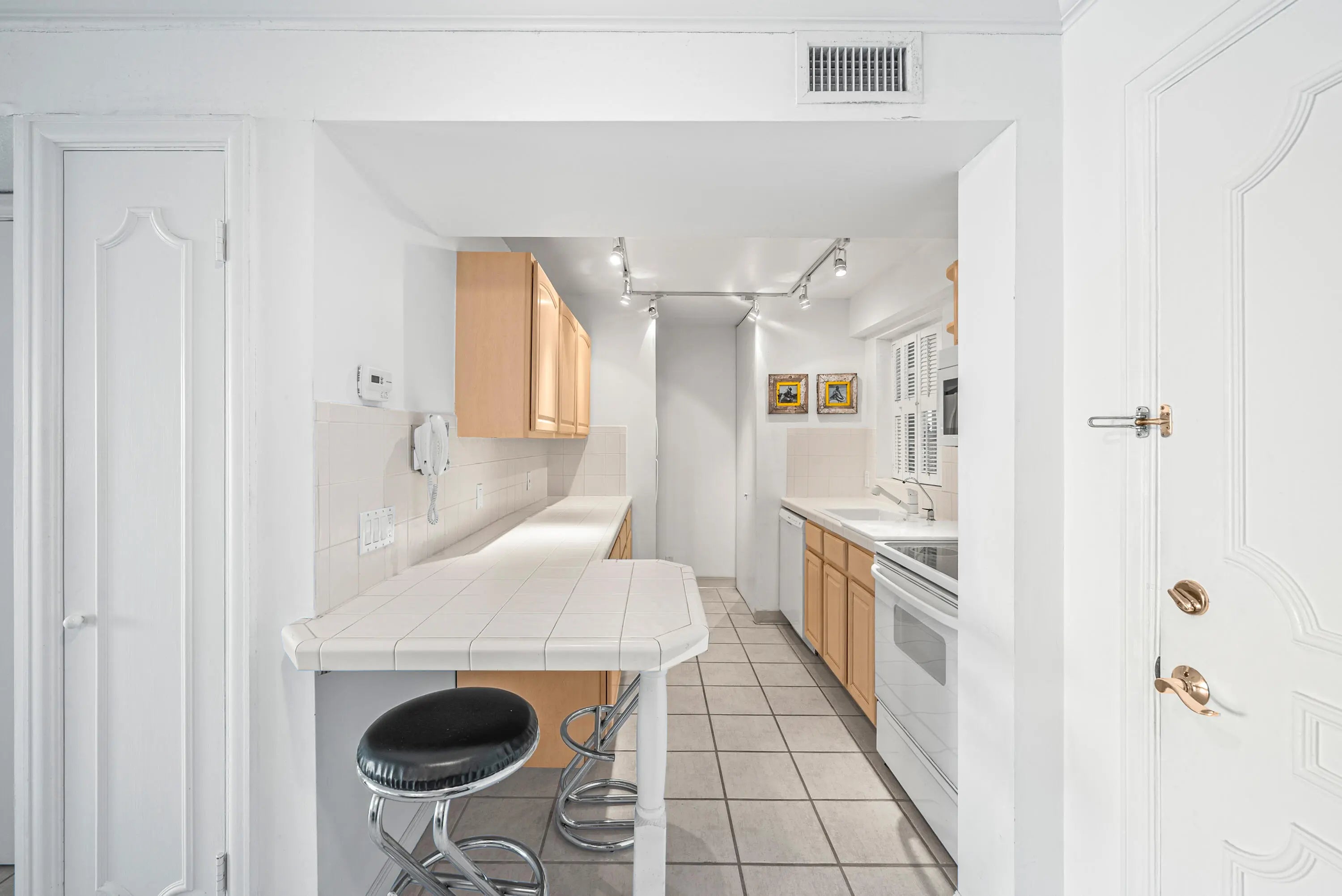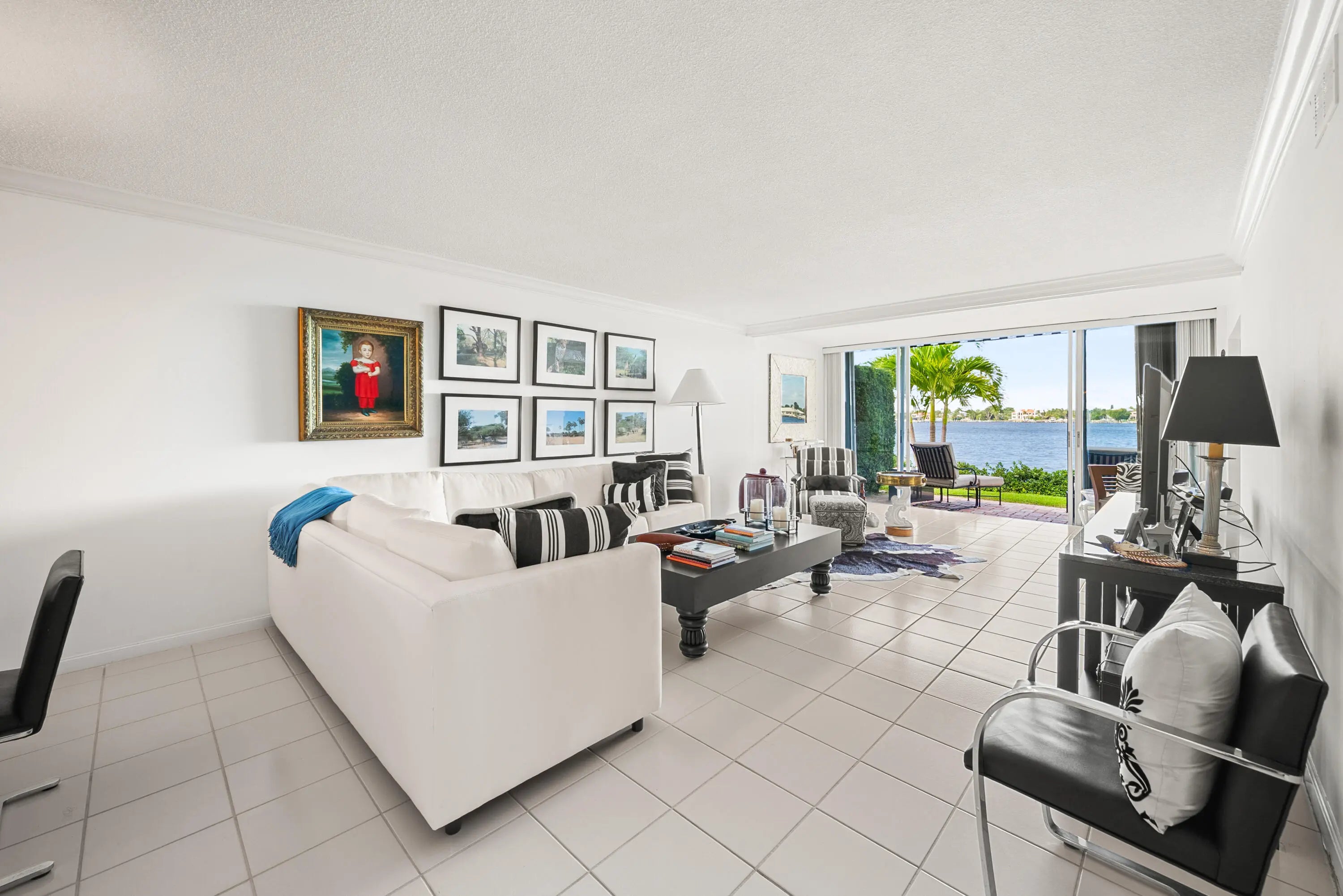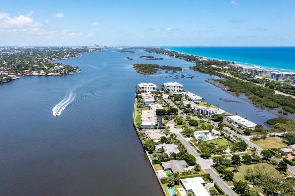 Spectacular direct Intracoastal views from every room! Floor-to-ceiling sliders open to a spacious lanai with retractable awning, perfect for relaxing, watching boats, and enjoying glorious sunsets. This serene and private residence lives like a home, offering over 1,000 sq. ft. of interior space with tile floors and a modern feel. The updated kitchen includes a washer/dryer, and the spacious one-bedroom layout showcases the same stunning views as nearby multimillion-dollar estates. Villa Tambour is an intimate 6-unit building with newly decorated pools and green space, across from Phipps Ocean Park and Palm Beach Tennis Center. Walk to the PB Par 3 golf course or take a short drive to Worth Avenue, five-star hotels, fine dining, and cultural centers. Pet-friendly!