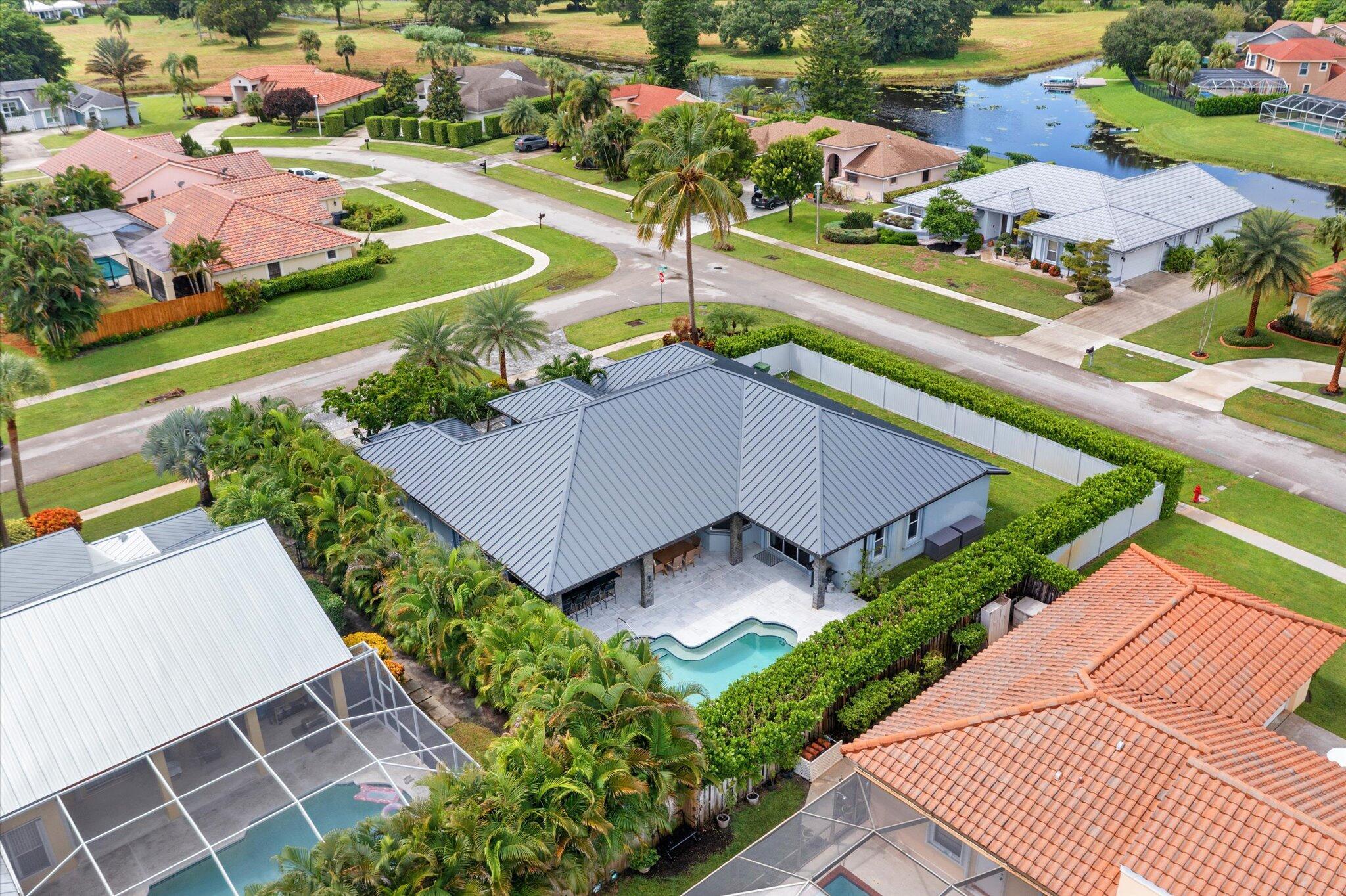 Claim your piece of paradise with this Wellington Charmer. No HOA. New Luxury Metal Roof in 2022. Renovated with 4 main bedrooms and 3.5 bathrooms + a bonus room/den with side entry door. The fully fenced-in backyard is a private oasis with mature clusia hedges, renovated stone pavered deck, crisp aqua blue pool, fully equipped custom patio bar. Large covered lanai with LED lights to brighten up your evening entertaining. 2 car garage with rubber flooring, and custom storage. Extended circular driveway the maximize guest parking spots. Open split floor plan. Offering an open kitchen to the family room and a formal living room connected to a formal dining room. Accordion storm shutters. Private corner lot with spacious back & side yard.Dozens of thousands of dollars in upgraded landscaping and lighting. This home and layout are an entertainers and family's dream set up. Great school zone and location. Fantastic rentability for seasonal and annual occupants. Conveniently located just a short distance from the prestigious Winter Equestrian Festival (WEF) and all the seasonal equestrian events.
