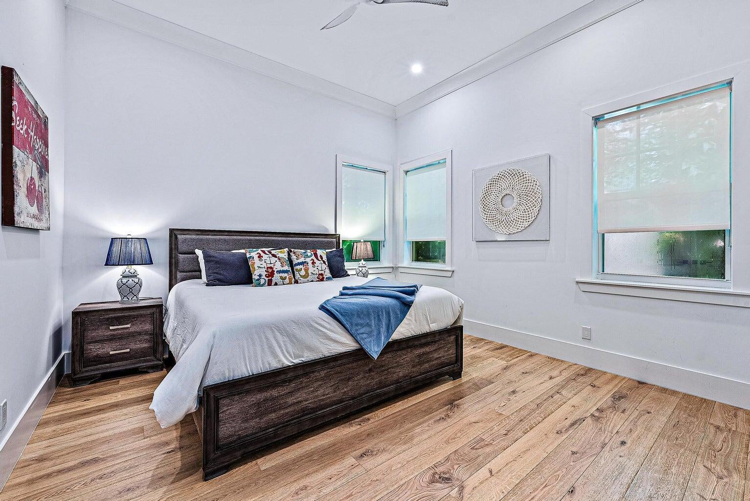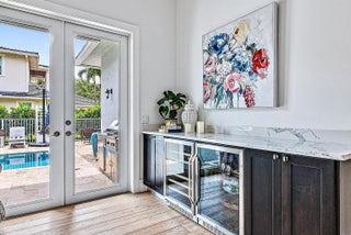 Better than new! This 2020 custom-built modern home tells a story of elegance, ease, and impeccable detail. Tucked inside an exclusive 12-home gated enclave in the golf-cart-friendly Village of North Palm Beach - one of Florida's safest and most desirable communities - every moment here feels like a retreat. The open floorplan offers 4 bedrooms 3.5 baths on the main level + an upstairs suite w/ bedroom and office / playroom, or ideal au pair space, complete with full bath and balcony. Enjoy soaring 12-15' ceilings, white oak floors, and a chef's Thermodor kitchen. Outside, relax by the salt-system pool, travertine terrace, putting green, and summer kitchen. Tesla charger, volume-ceiling garage, and minutes to Benjamin School, beaches, shopping, dining, Palm Beach Island and PBI AirportPalm Beach Island, and PBI Airport.