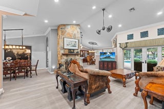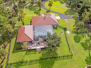 Are you prepared to chase your equestrian aspirations? Here lies a gated equestrian estate with fully equipped guest cottage situated on 5 full acres in the desired community of Deer Run, offering all the amenities of the equestrian lifestyle complete with a luxurious swimming pool. The pool is protected by commercial-grade screening which allows you to relish summer evenings shielded from the elements. The pool features landings beneath a stunning waterfall, reminiscent of resort-style living. A newly resurfaced asphalt driveway provides a smooth approach to your home. Additionally, both houses boast a newly installed Barcelona barrel tile roof. Upon entering through the new high-end hurricane impact double doors, you are greeted by vaulted ceilings and a Riverstone fireplace, perfectfor warming up during those rare chilly Florida nights. Crown molding adorns every room. The kitchen is equipped with new countertops and stainless-steel appliances, ideal for crafting exquisite meals and hosting gatherings. This residence includes a full farm generator with an oversized 1500-gallon propane tank buried for convenient access. Do not underestimate the necessity of power and water in the event of an outage! The dryer and three fire pits are powered by the home propane. There is ample space to add and connect an outdoor kitchen! The main house features a split floor plan, ensuring privacy for both you and your guests. A new HVAC system installed in 2025. The property also includes a double reverse osmosis water system with a liquid peroxidation The guest house measures 1100 square feet, suitable for guests or generating additional income year-round or seasonally. Or multi-generational living. It is fully self-sufficient, equipped with impact windows. The 2022 barn features a new Bora Steel Tile barrel roof rated for 225 mph winds and includes five stalls, each 12 x 12, with matted flooring and water dispensers in every stall. Additionally, there is a tack room furnished with a washer and dryer, refrigerator, mop sink, tankless hot water heater, and feed room. The barn has four bays, one of which has hot water. Two stalls are equipped with run-out paddocks, and there is covered storage for hay. A spacious Grass Arena offers ample opportunity for the addition of a covered arena. The property features five fully grassed paddocks. It is situated in a high and dry area, free from flooding. Additionally, there is a workshop shed equipped with electricity for storage purposes. The property is fitted with impact windows and storm shutters, complete with runners for both the houses and the barn. The location is complemented by excellent dining options and shopping facilities nearby. The school system is rated highly! The Homeowners Association (HOA) provides coverage for WiFi, road maintenance, and the clearing of canals, allowing for extensive trail riding with access available at the rear of the property! This property offers agricultural exemption. Welcome to your new home! Please Note: Total area under air (3269 sq ft), (4) bedrooms and (3) bathrooms INCLUDES Guest House/Cottage. (Main House 3/2 plus Den is 2203 Under air) (Guest Cottage 1/1 is 1066 under air) Internet included in HOA Fees plus price reduction on your cable, extensions & hard wire phone.