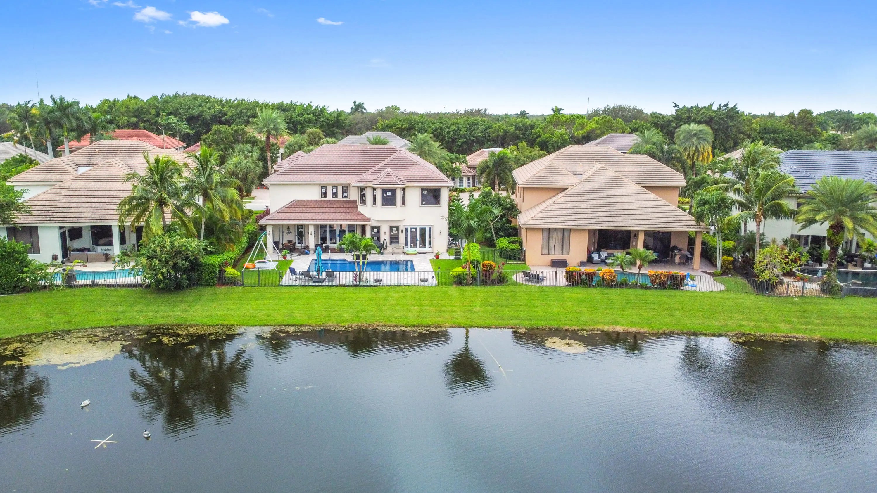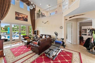 Prepare to be enchanted by this truly magnificent waterfront estate, perfectly nestled in a desirable, lake-front community in Wellington. The home immediately impresses with its grand, European-inspired architecture, featuring a new roof, new impact windows & doors, an elegant stone and stucco facade, permanent whole house generator and a sweeping paver driveway leading to the attached garage. The meticulously manicured tropical landscaping and towering palm trees frame the residence, setting a tone of upscale elegance before you even step inside.