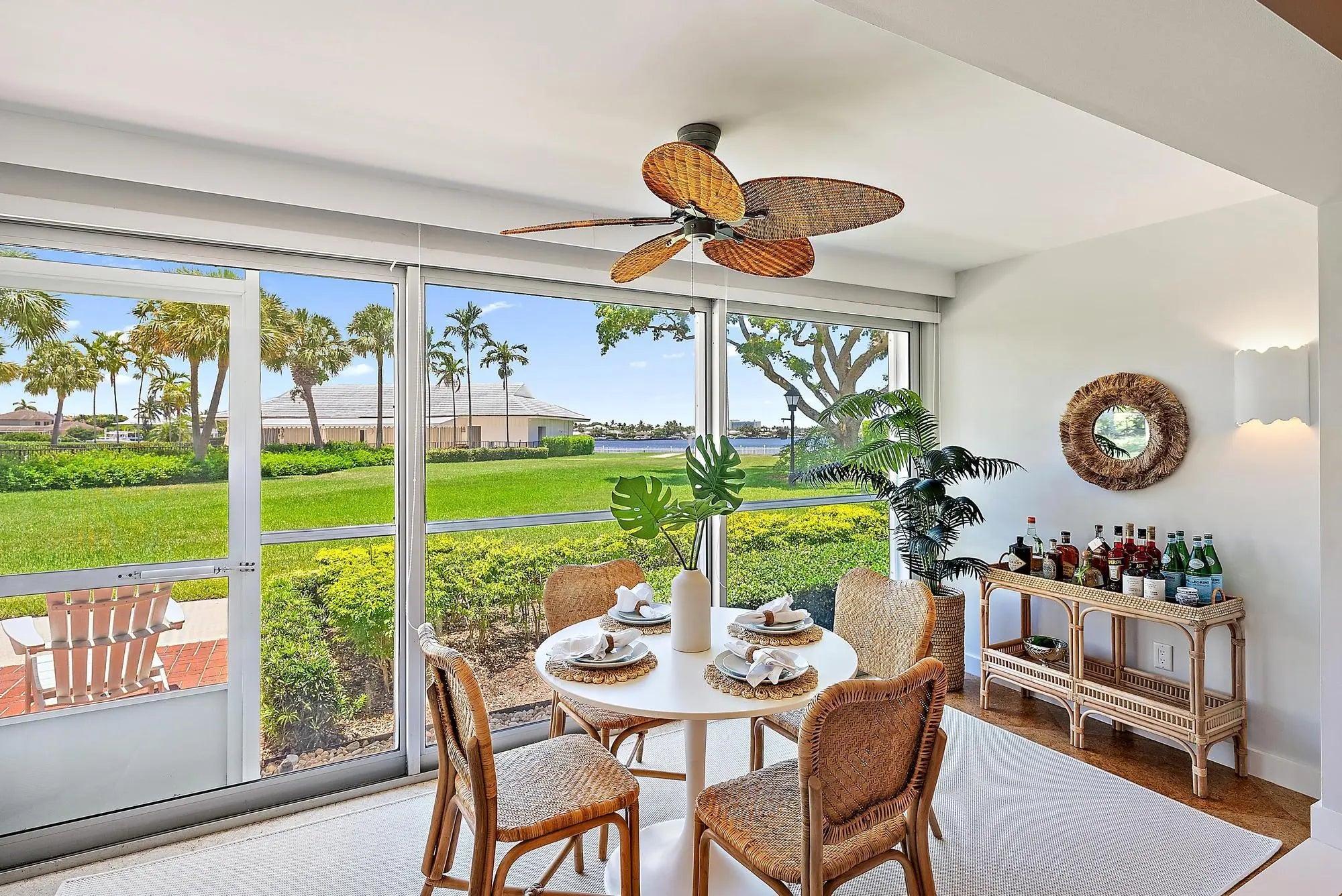 Charming Waterfront Retreat in Lost Tree Village Located in one of the most sought-after waterfront enclaves, this beautifully styled residence offers effortless living with a bright, coastal ambiance and direct views of Little Lake Worth and manicured grounds. The open living and dining areas are framed by floor-to-ceiling glass, inviting in natural light and showcasing tropical landscaping and sparkling water beyond. The updated kitchen features stainless steel appliances, light wood cabinetry with glass inlays, and a breakfast bar that seamlessly flows into the living space--perfect for entertaining or enjoying a quiet morning at home. Tasteful finishes and thoughtful design details bring a modern coastal flair while maintaining a warm, welcoming tone throughout.