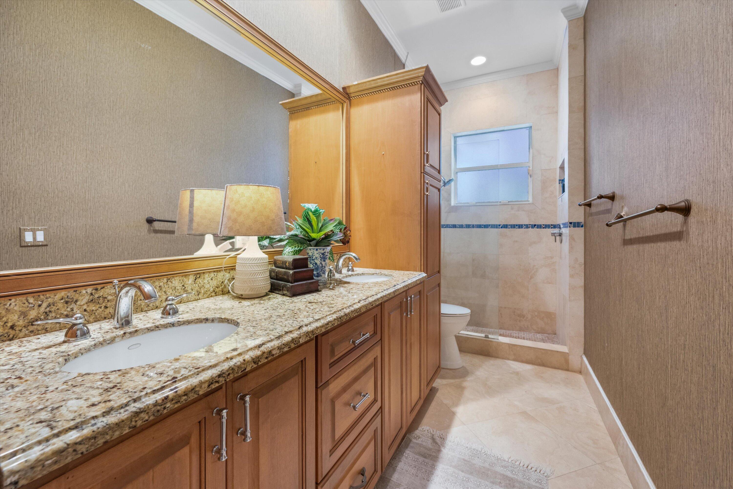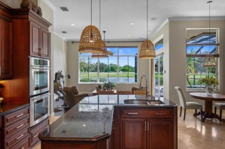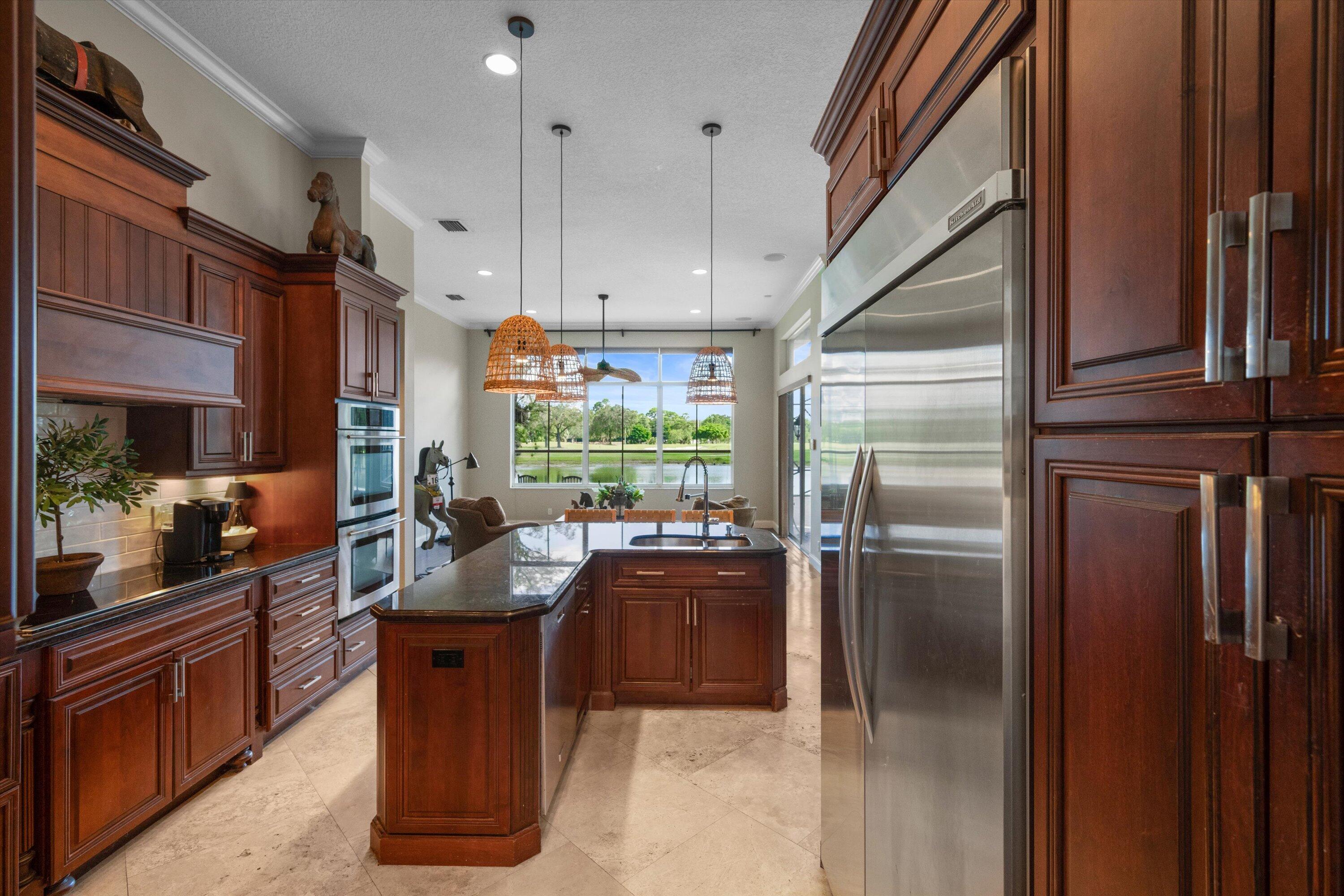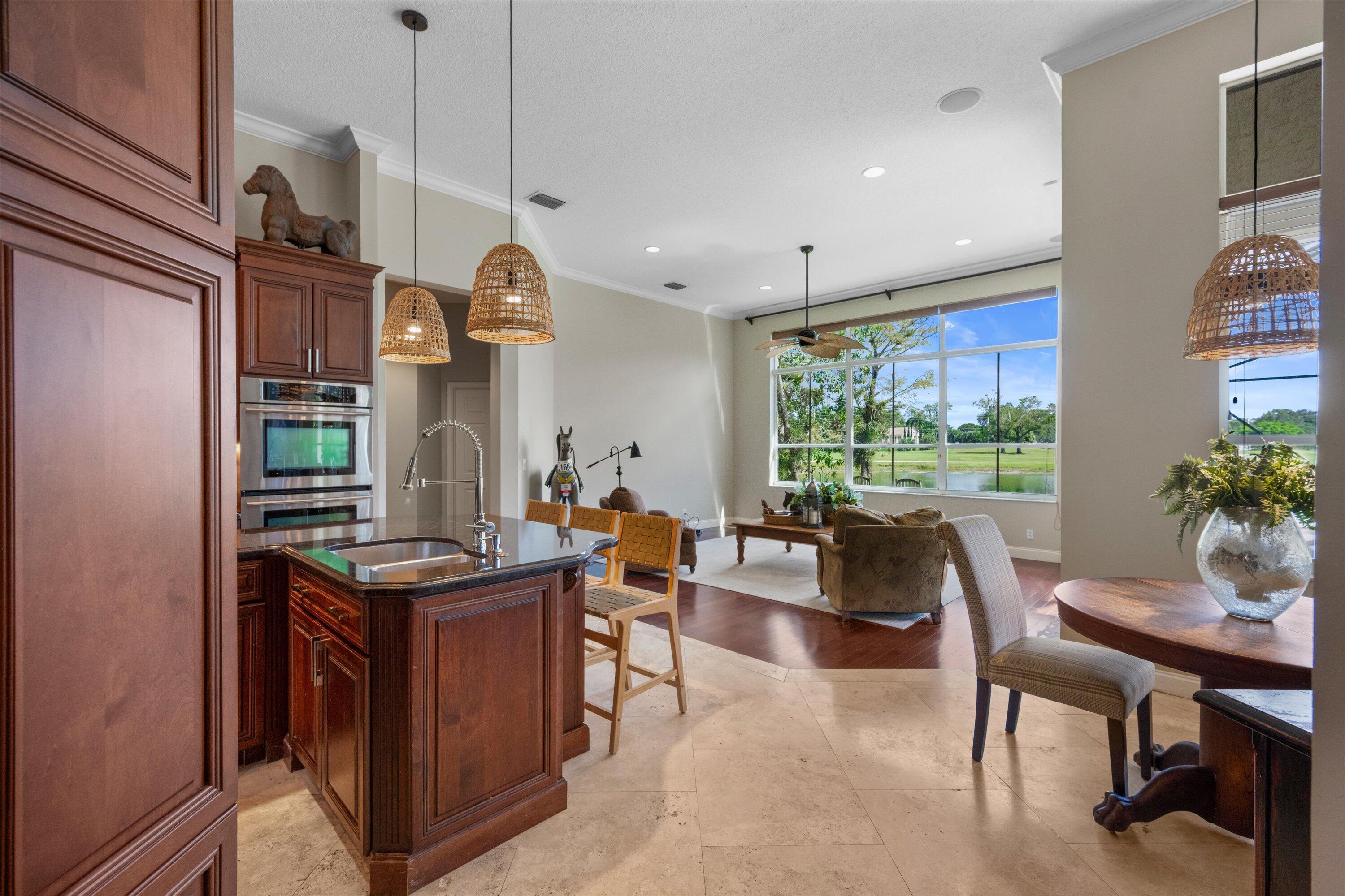 Premium waterfront lot in coveted Binks Estates. Situated on a superb half acre cul de sac lot , the privacy and views of the lake and golf course are unparalleled in this community. Offering 3234 sq ft under air, this well constructed home built by Toll Brothers offers 5 large bedrooms as well as a 3 car garage. Fantastic open footprint affords water views from the moment you walk in the doors. At the heart of the home is the Chef's kitchen with high-end cabinetry and appliances overlooking the large family room with huge picture window and sliders out to an oversized screened lanai and free form heated pool. Close to equestrian venues, restaurants, shopping, hospitals and airport. Easy walk or bike to award-winning Binks schools and just a golf cart ride away fromWellington National Golf Club and the WEF showgrounds. Experience Binks Estates lifestyle at a price below market value.