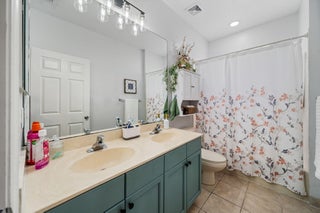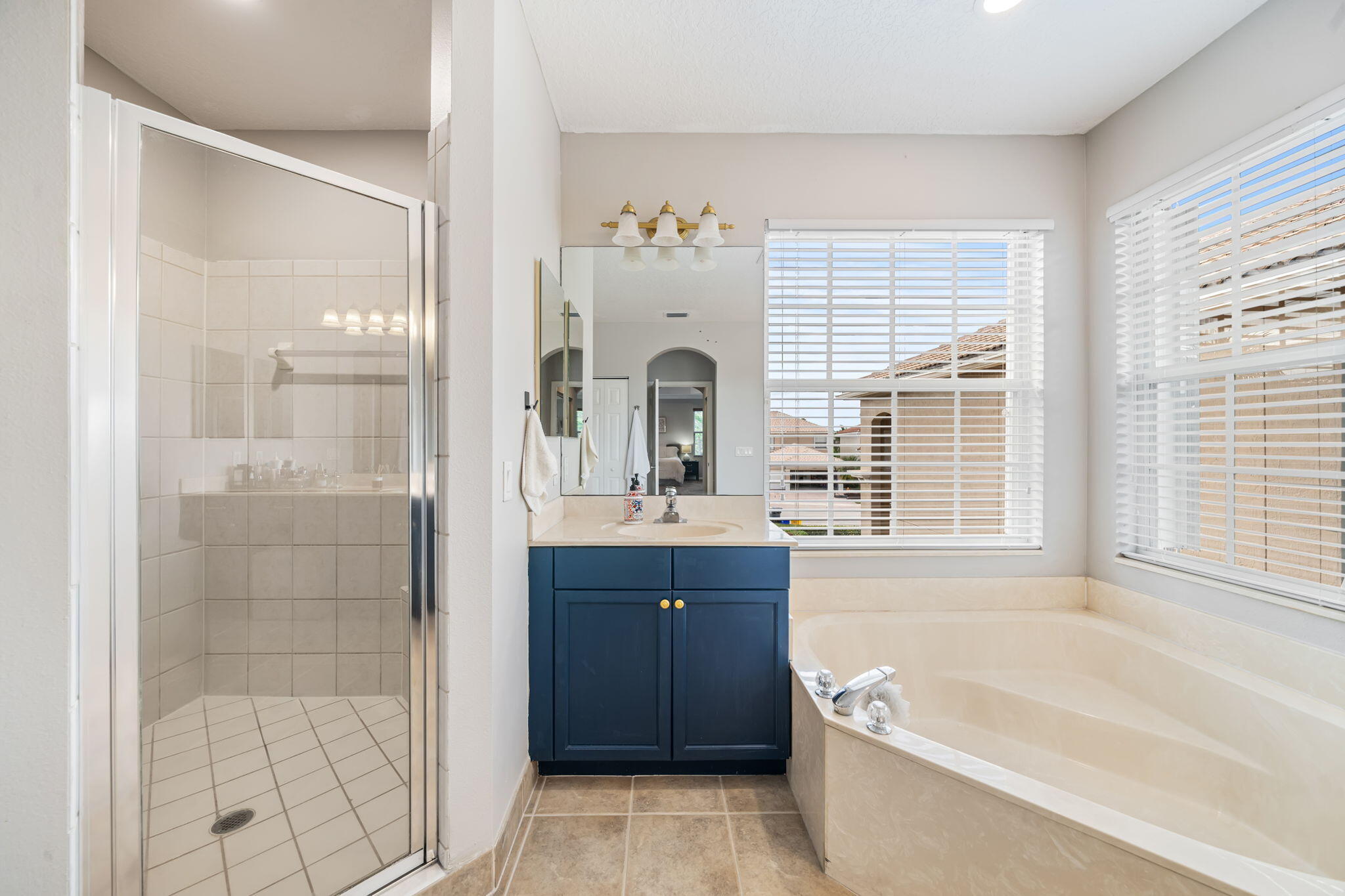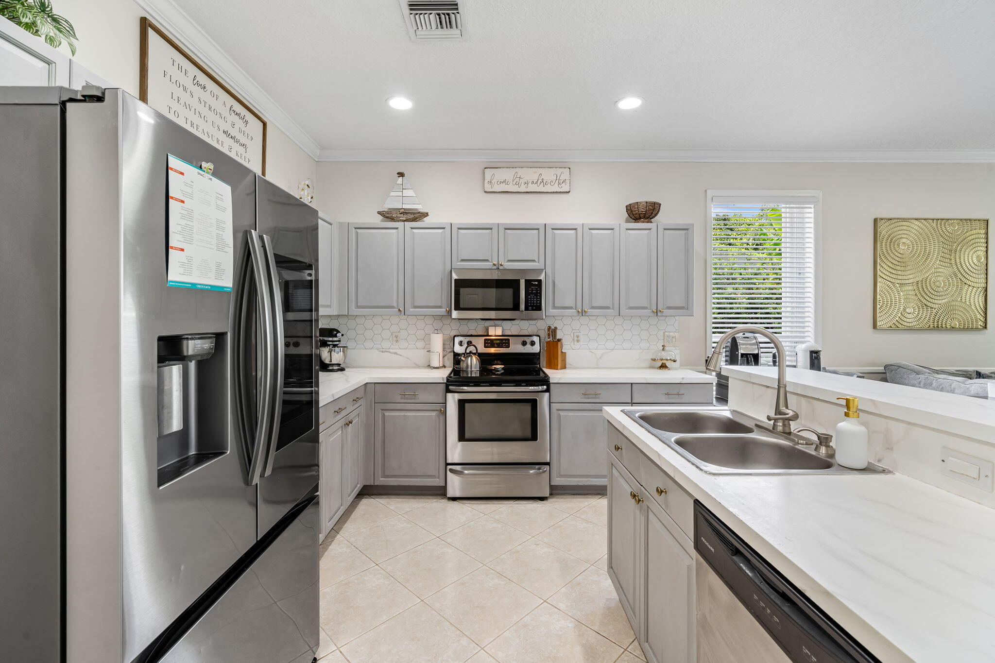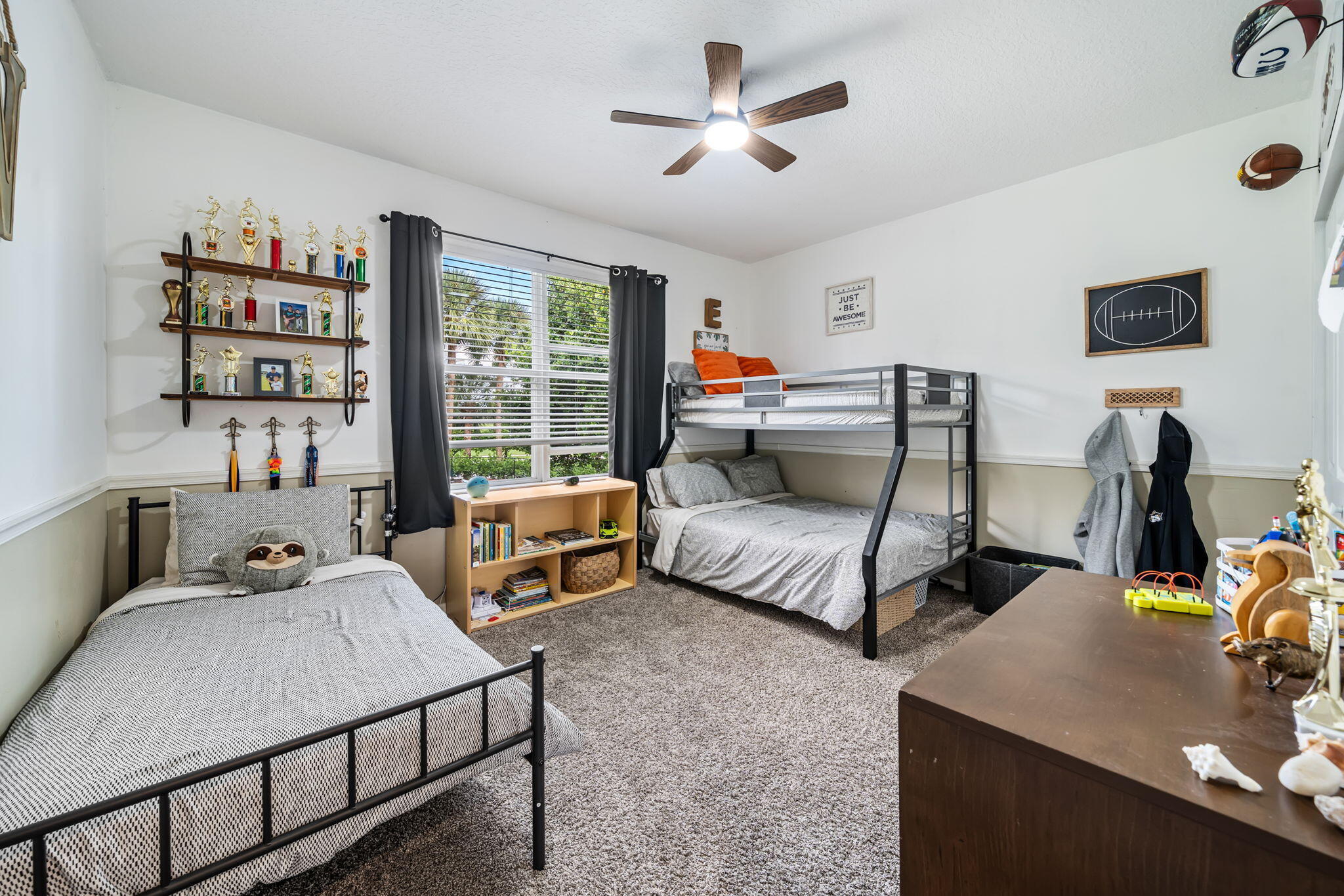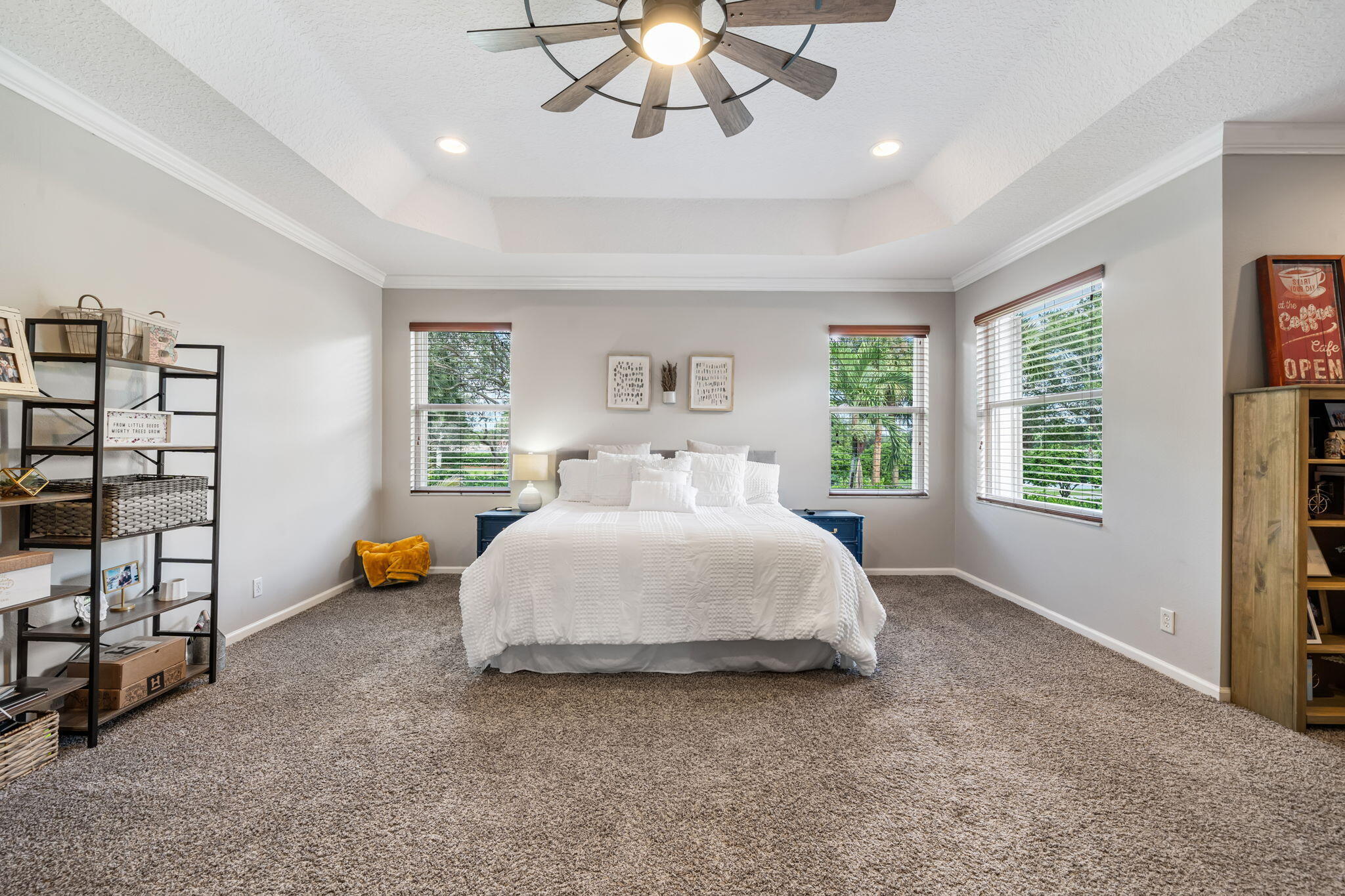 Welcome to this beautifully maintained 5-bedroom, 3-bath home tucked away on a quiet cul-de-sac in the desirable gated community of Wellington Shores. This spacious residence offers a thoughtfully designed floor plan featuring a seamless outdoor indoor flow and a large eat-in kitchen overlooking the family room, perfect for everyday living and entertaining. Offering one full bedroom and a full bathroom on the first floor, there is convenience and flexibility for guests or multigenerational living.Upstairs, you will find an additional 3 spacious bedrooms as well as the primary suite which serves as a peaceful retreat with a private sitting area--ideal for a home office or cozy reading nook.Notable features include, freshly painted interior, new hot water heater, fully fenced yard, accordion shutters and more! This move in ready home combines comfort, style, and functionality. Residents of Wellington Shores enjoy resort-style amenities, including a clubhouse with fitness and social rooms, a heated pool with sundeck, tennis and pickleball courts, and scenic walking and jogging trails. This family friendly community also features a virtual guard gate and is surrounded by picturesque lakes all within minutes of Wellington's top-rated schools, equestrian venues, dining, and shopping. Come experience the lifestyle that makes Wellington Shores one of the most sought-after communities in the area!