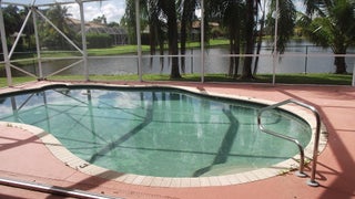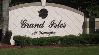 Grand Isles of Wellington with low HOA and stunning wide lakeview. In the heart of world-class equestrian. Near mall. 5 bedrooms, 3 full baths. Private pool and hot tub, screened on beautiful wide water lot. Storm protection shutters. Community clubhouse includes pool, spa, playground, tennis, pickleball, and basketball. Double-door entry, wide open hallway, split bedroom plan. Newer roof and AC. Propane generator. 3-car garage with newer epoxy flooring, split AC in garage, and ceiling fan. Paver driveway. Utility room with washer, dryer, and utility sink. Kitchen has double sink, granite countertops, breakfast bar, and stainless steel appliances. Large master has tray ceiling with sliding doors leading to patio. Master bath has Roman tub and separate shower. Large master walk-in closet